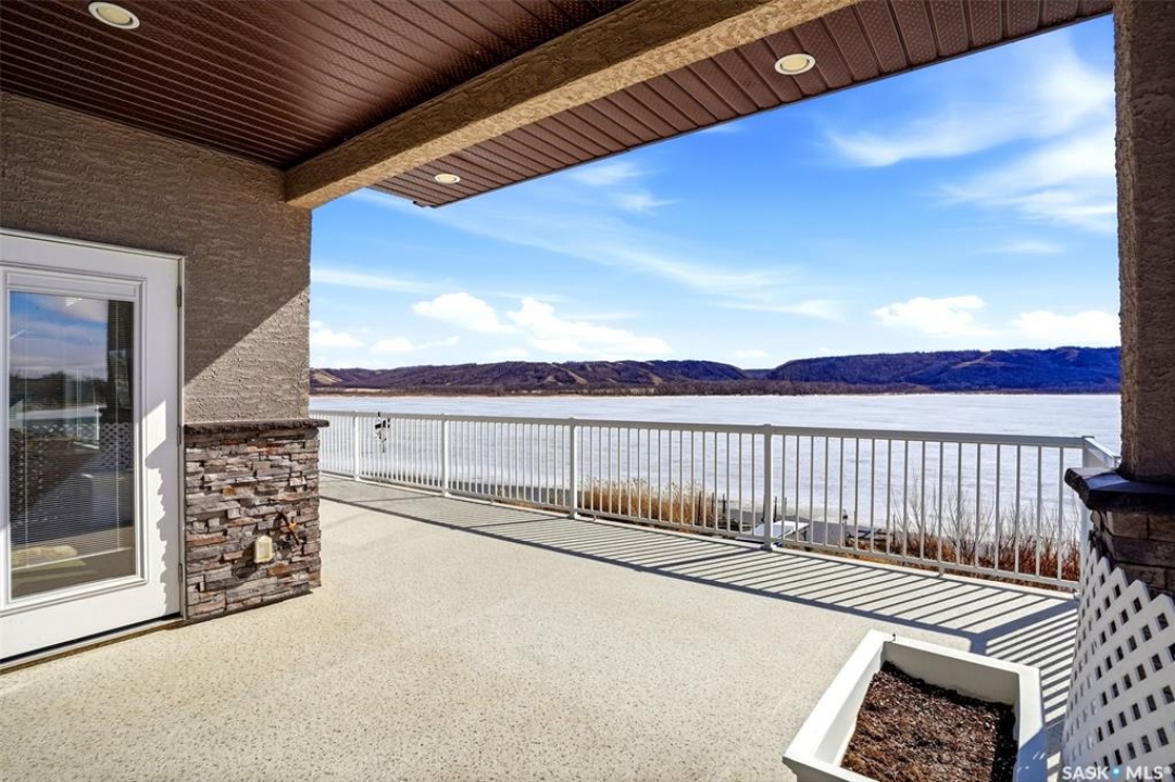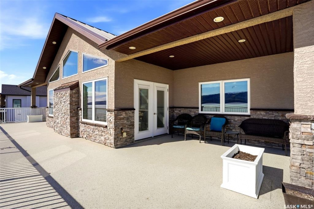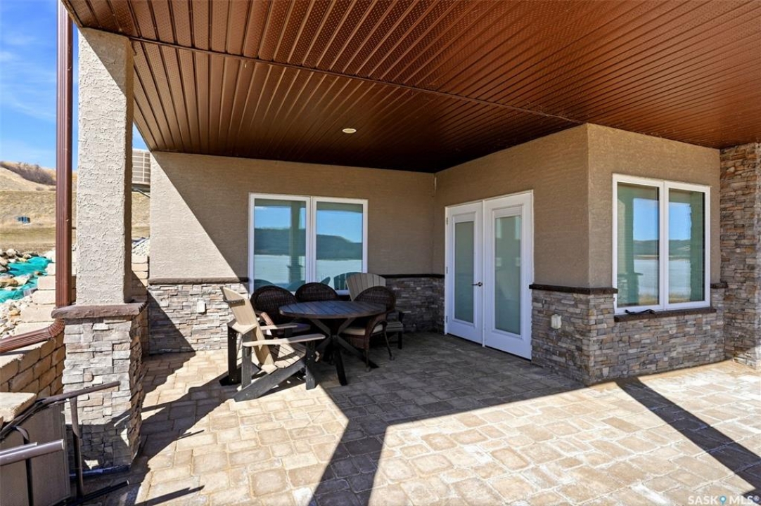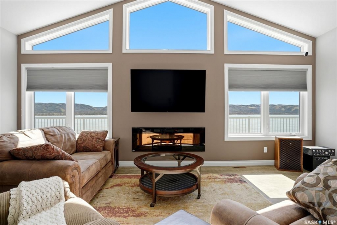 Lakefront living on beautiful Pasqua Lake with panoramic water views from nearly every living space! This thoughtfully designed walkout bungalow offers 1,566 sq. ft. above grade on a 0.22-acre waterfront lot with direct lake access, a double attached garage, & exceptional energy-conscious features including solar panels, backup generator, & 200-amp electrical. Exterior is finished in stucco with a durable metal roof, while the insulated double attached garage includes metal cladding, floor drain, & plumbing in place for future in-floor heat. A mudroom connects the garage to the home & is also finished with metal cladding for durability. Inside, the custom-built kitchen is designed for both function & entertaining, featuring a large island, granite countertops, soft-close cabinetry, pantry, stainless steel appliances, built-in dishwasher, gas stove, microwave, fridge, & freezer included. The main floor offers 3 bedrooms, including a spacious primary retreat with abundant natural light, walk-in closet, and generous 3-pc ensuite. A dedicated main floor laundry room & an additional 4-pc bathroom complete the level. The living room is framed by expansive windows that fully capture the lakefront setting, anchored by an electric fireplace & offering 2 separate accesses to the upper deck overlooking the water. The walkout lower level continues the lake views with a large family room featuring a natural gas fireplace, wet bar, in-floor heat, & 2 separate sets of French doors leading directly to the lower lakeside patio. This level also includes 2 additional bedrooms, a den ideal for a home office or exercise room with lake views, storage room, utility room, & extensive mechanical systems including pumps, water filtration, on-demand hot water, & natural gas forced-air heating. Gravel driveway, storage shed, excellent storage throughout, & a layout designed to fully embrace lake life make this an outstanding year-round property!