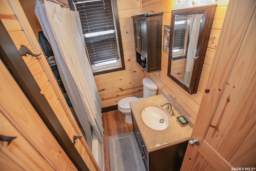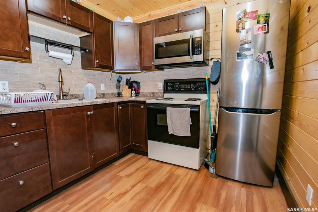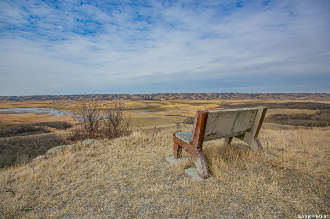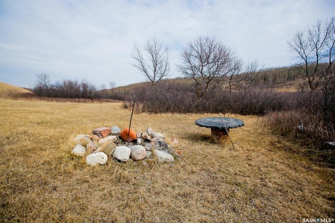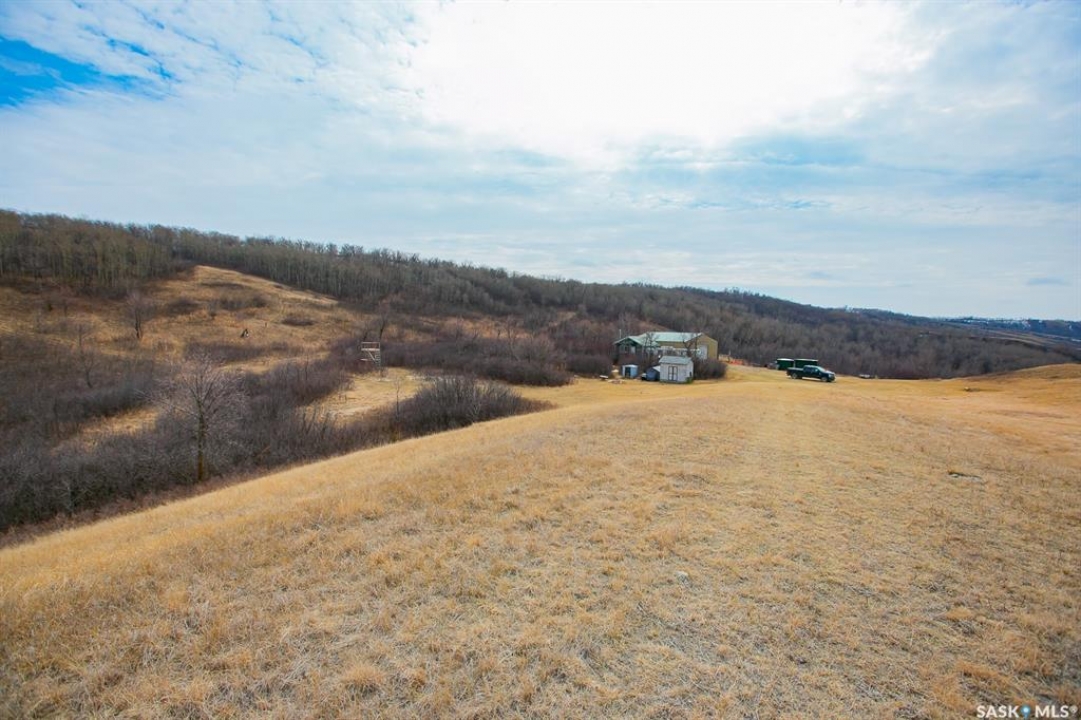 Unique property located approximately 33kms from North Regina. This opportunity includes 39'x39' quonset with concrete floor. 14'x10' door with 12' walls. 200 amp electrical service. Home is setup with wood stove and electric baseboard heaters. Main level includes functional kitchen, dining area with adjacent living-room. Four piece bathroom. Bedroom (is framed into a portion of the quonset) allows direct access into quonset. Yard site blends the sunset views into the valley plus the natural hillside with atv/walking trailers and plenty of natural bush.