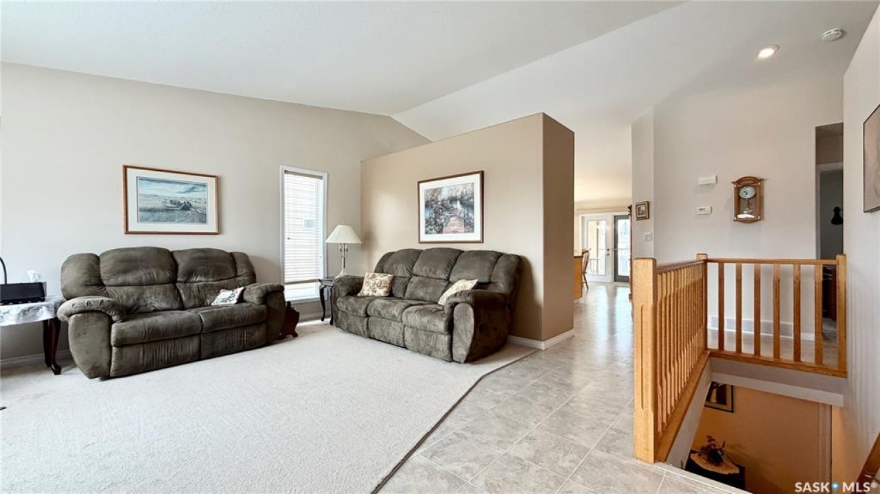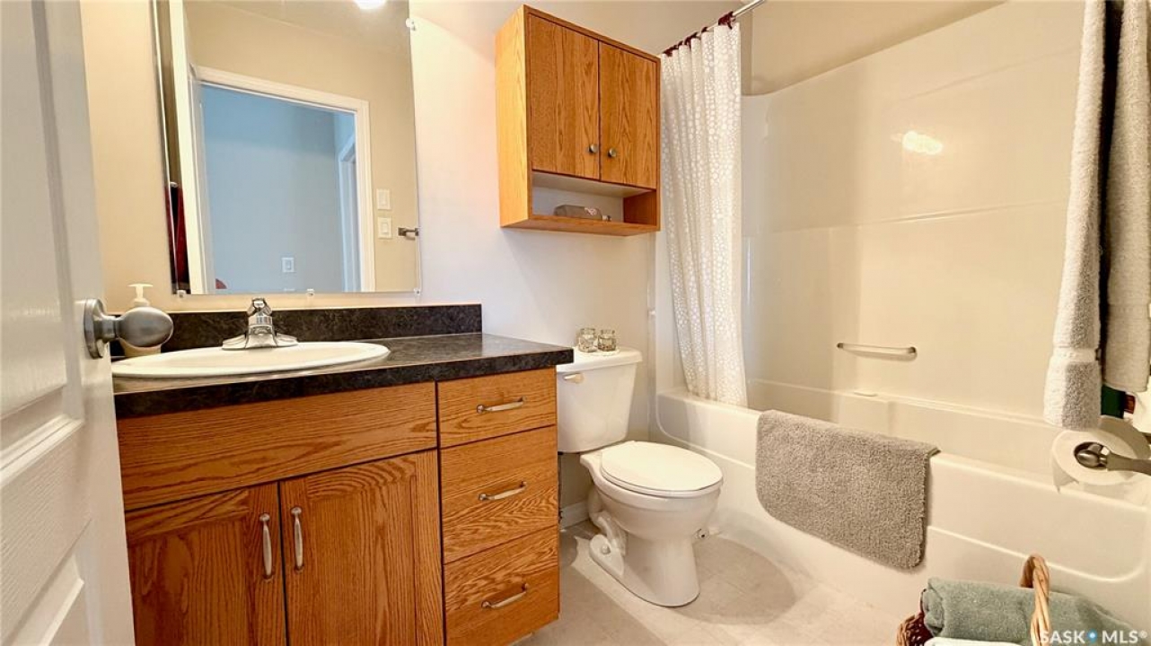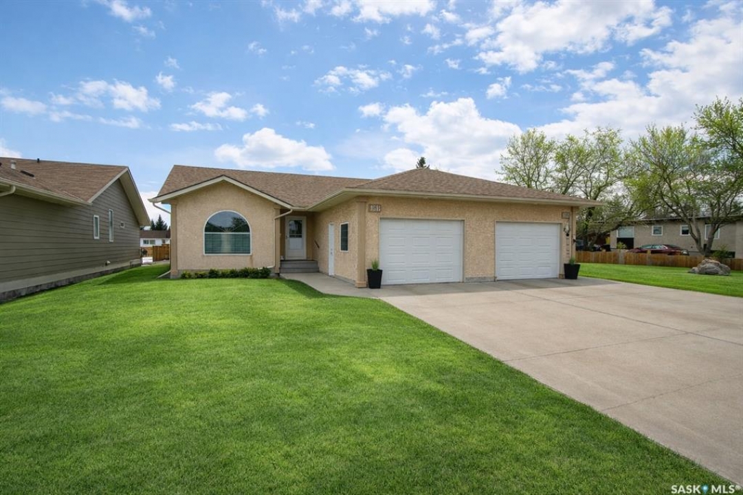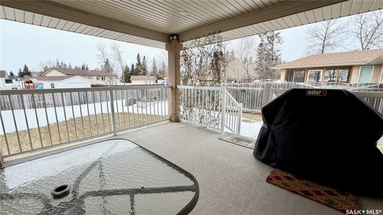 In a market with extremely limited supply, this semi-detached bungalow townhouse condo in Lanigan offers both comfort and opportunity. Located in the heart of Saskatchewan's potash country, surrounded by three major mines and a newly announced power station, the area is poised for major growth with increasing demand for housing. With very few homes available in this price range within a 100 km radius, this is a rare chance to get into a rising market. (ZERO CONDO FEES - Owners dissolving condo into semi-detached single family). The home features a single attached garage, double driveway, and additional rear parking, all set on a massive fully fenced 40 x 180 lot. Enjoy the covered deck with natural gas BBQ hookup, perfect for relaxing or entertaining. Inside, a spacious foyer and mudroom off the garage include laundry and storage. The main floor offers a bright living room, timeless oak kitchen with a large island and pot drawers, walk-in pantry, and a generous dining area with deck access. Upstairs includes two large bedrooms and two full bathrooms, including a spacious primary with its own ensuite. The three-quarter finished basement adds a huge family room, two additional bedrooms, a three-piece bath (shower not installed but on site and roughed in), and 200 sq ft of undeveloped space. Lanigan offers a hospital, rec centre, pool, and full amenities, plus easy access to lake country. This is more than a home—it's an investment in a growing community.