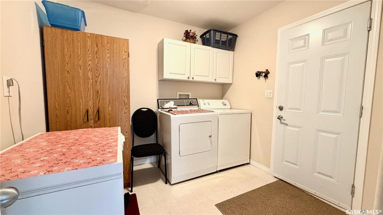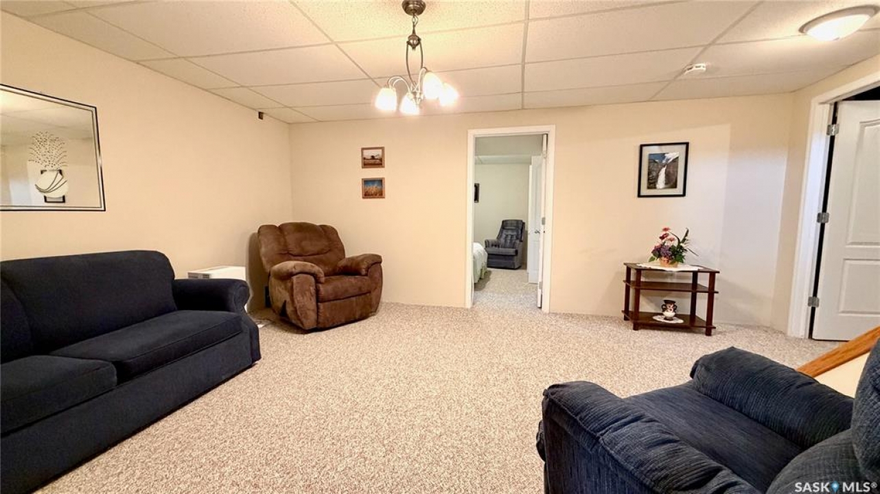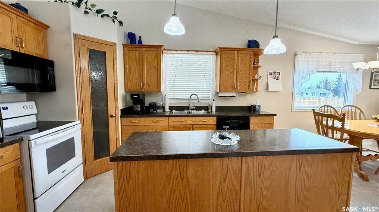 In a market with extremely limited supply, this semi-detached bungalow townhouse condo in Lanigan offers both comfort and opportunity. Located in the heart of Saskatchewan's potash country, surrounded by three major mines and a newly announced power station, the area is poised for major growth with increasing demand for housing. With very few homes available in this price range within a 100 km radius, this is a rare chance to get into a rising market. (ZERO CONDO FEES - Owners dissolving condo into semi-detached single family). The home features a single attached garage, double driveway, and additional rear parking, all set on a massive fully fenced 40 x 180 lot. Enjoy the covered deck with natural gas BBQ hookup, perfect for relaxing or entertaining. Inside, a spacious foyer and mudroom off the garage include laundry and storage. The main floor offers a bright living room, timeless oak kitchen with a large island and pot drawers, walk-in pantry, and a generous dining area with deck access. Upstairs includes two large bedrooms and two full bathrooms, including a spacious primary with its own ensuite. The three-quarter finished basement adds a huge family room, two additional bedrooms, a three-piece bath (shower not installed but on site and roughed in), and 200 sq ft of undeveloped space. Lanigan offers a hospital, rec centre, pool, and full amenities, plus easy access to lake country. This is more than a home—it's an investment in a growing community.