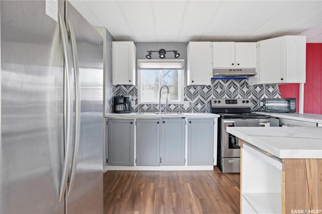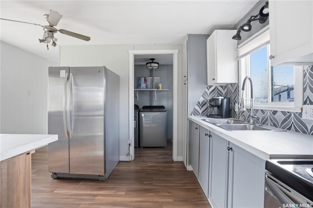 Are you looking for easy living? This mobile home is sitting on one of the largest corner yards in Caronport. As you pull up you will notice your single car detached garage (14'x24') with power and a garage door opener. Heading inside you are greeted by a large mudroom with lots of storage. We then find a spacious, updated U-shaped kitchen with lots of counter space and a stainless steel appliance package. Towards the front of this home we find a a spacious living room with lots of natural light. Off the kitchen there is a large laundry room with space for a pantry. Down the hall we find a huge bedroom with a large closet as well as the primary bedroom with direct access to the 4 piece bathroom with an updated shower. Outside, you have a large fully fenced yard, a shed and an off street parking spot. Quick possession is available. Reach out today to book your viewing!