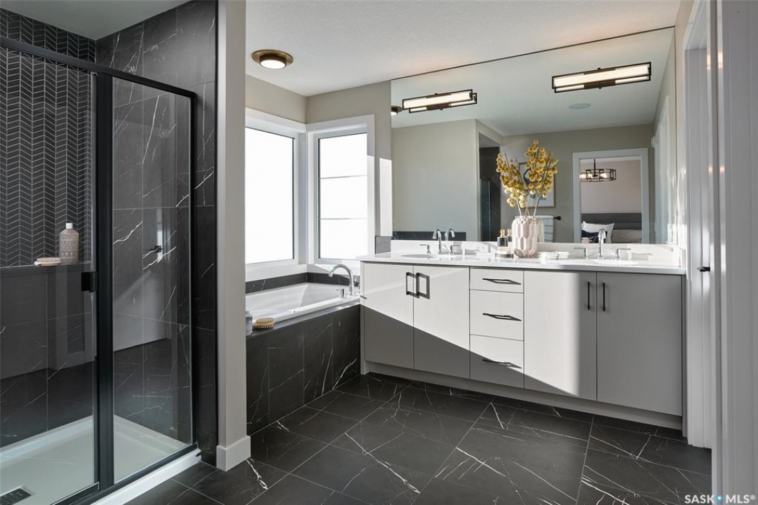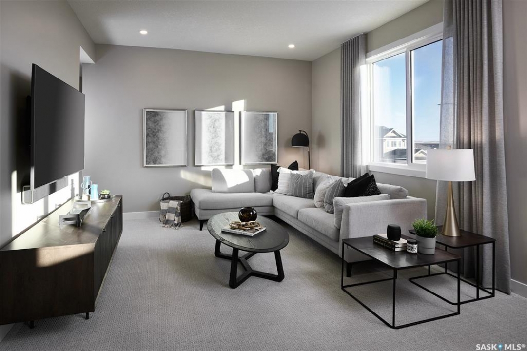Note: This home is currently under construction and the photos provided are for REFERENCE only, some are virtual renderings and some colors may vary. Welcome to the Arnica. This stunning 2-storey home, offering 2,218 sq. ft., is a brand-new build by Laurel Homes located in the up and coming Royal Park subdivision of White City. This home showcases a modern dark-palette design paired with elevated interior selections throughout. The main floor features an open-concept layout with a stylish kitchen complete with flat-slab cabinetry, marble-quartz countertops, a walk-in pantry, matte-black fixtures, and included appliances: fridge, stove, microwave hood fan, and built-in dishwasher. The great room is anchored by a sleek, contemporary fireplace, while the dining area provides direct access to the rear deck complied of composite decking. A 2-pc bathroom and a versatile den—complete the main level. Upstairs, a spacious bonus room separates the secondary bedrooms from the serene primary suite, which includes a walk-in closet and a beautifully appointed 5-pc ensuite with quartz counters, a stand up shower, and matte-black fixtures. A convenient upper-floor laundry room and an additional 4-pc bathroom complete the 2nd level. The basement is unfinished, equipped with a sump pump and roughed-in bathroom plumbing—ready for future development. Optional basement development by the builder is available at an additional cost. More great features include laminate/LVT flooring in most spaces, black hardware throughout, Grey interior paint, and a fully insulated and drywalled double attached garage and fully installed central air conditioning! Thoughtfully designed and highly elevated, this home blends modern style with everyday functionality. Possession estimated: July 1, 2026. Asking price includes GST and PST. PST is remitted to the builder. GST rebate, if applicable, goes to the builder. First-Time Home Buyer GST rebate goes to the purchaser as a reduction of the purchase price.