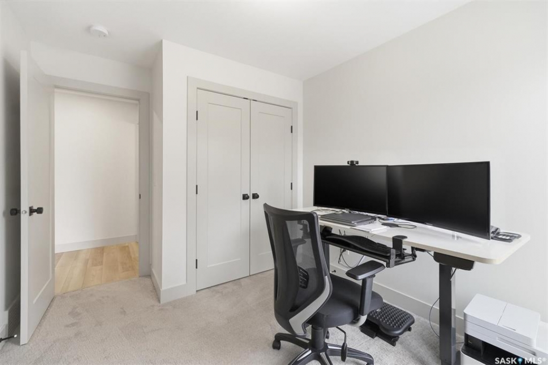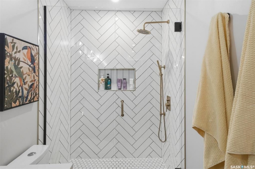 This stunning Decora Homes build offers a rare combination of high-end craftsmanship and significant recent upgrades, perfectly positioned on Empress Avenue just steps from the Saskatchewan River and Meewasin Trails. Over the last three years, this 1702sqft home has been meticulously refined, now featuring a durable and modern steel roof, an automated blind package for effortless light control, and professionally completed sidewalks and a rear patio. The main floor remains a showstopper with its functional living room centered on a stylish fireplace wall, a spacious dining area, and a gourmet kitchen equipped with a large quartz island and full stainless steel appliance package. Upstairs, the primary retreat continues to impress with its elegant 4-piece ensuite including double sinks and tiled shower, heated floors, and a vast walk-in closet, complemented by two additional bedrooms and a secondary 4-piece bath. The laundry is also located on the upper level as well as another two storage closets. The most notable addition is the nearly-developed basement, which has seen the completion of all exterior walls and the addition of a fully finished 3-piece bathroom, family room, open gym/play area and spare bedroom space, significantly increasing the home's functional square footage. Outside, the property is a low-maintenance oasis with black granite crushed rock, a rear deck, and a spacious double detached garage. Located on one of Saskatoon's most trendsetting streets with easy river access, this property is truly move-in ready with all the finishing touches already in place.