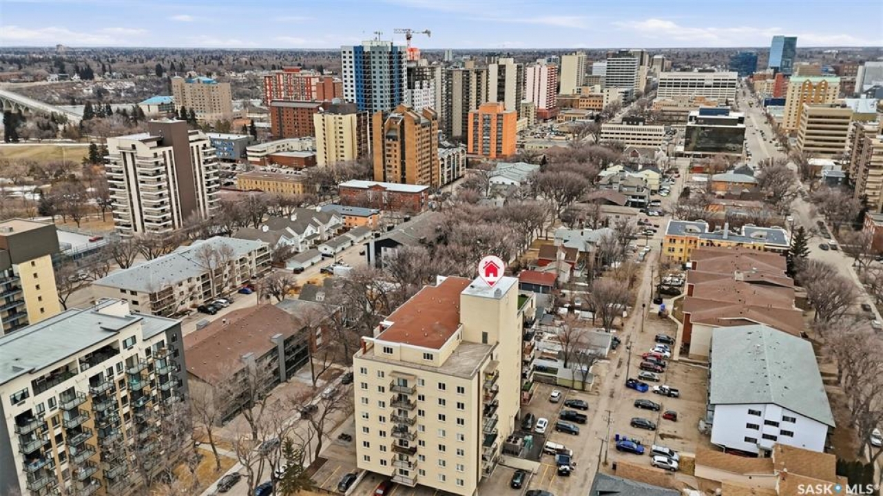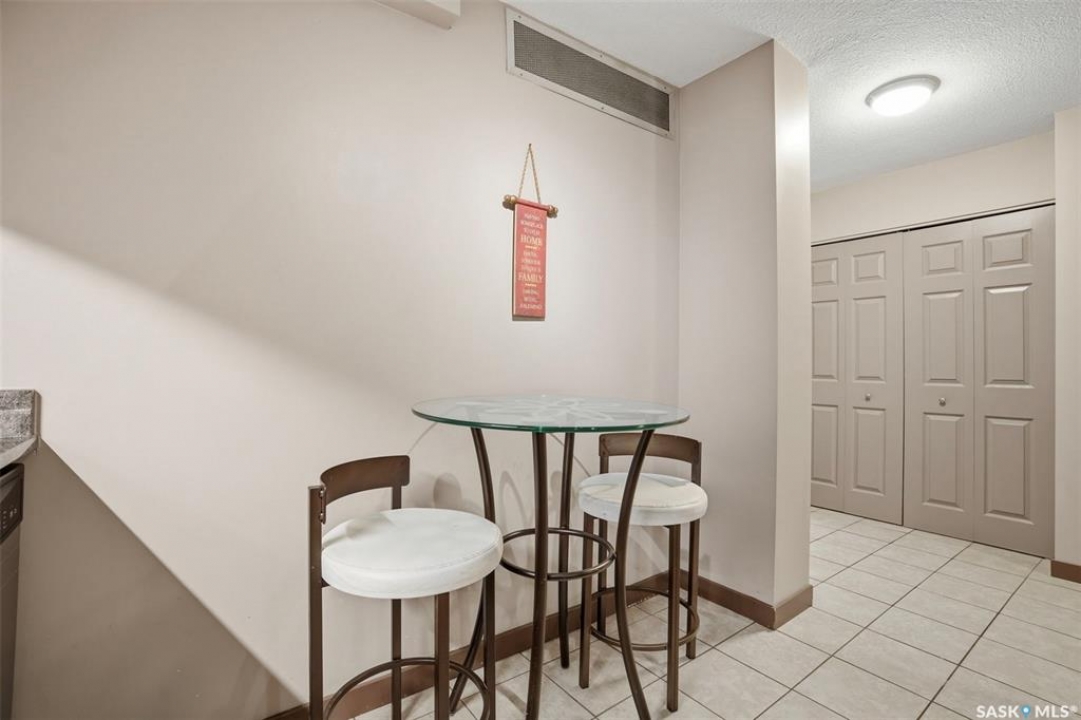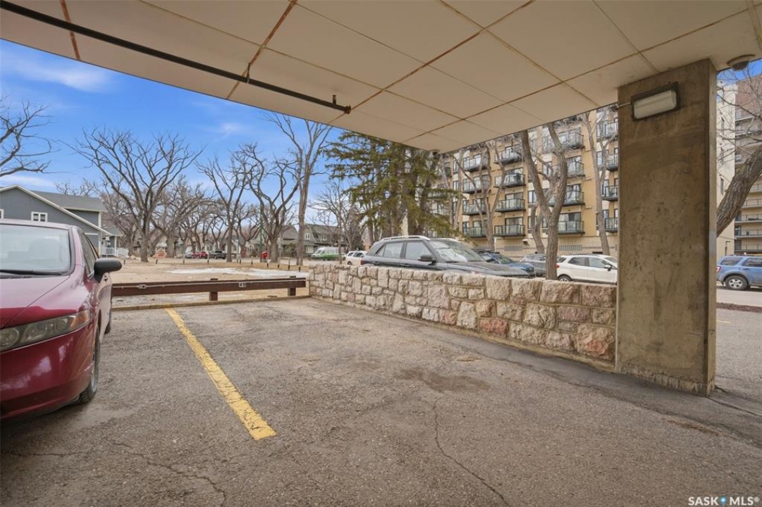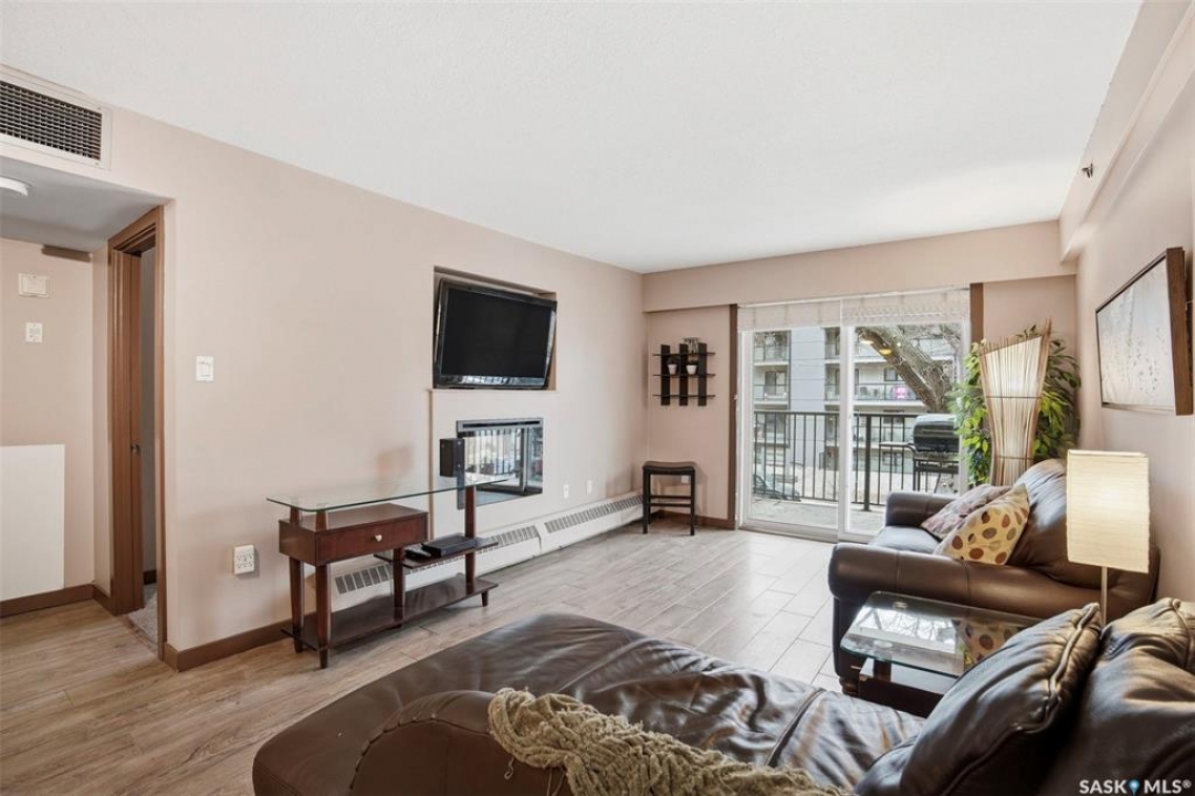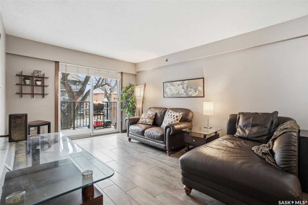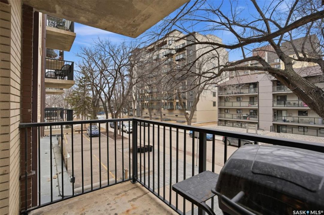 All you need is clothes for the closet and food for the fridge, and you are set! This City Park condo is a former showsuite.. and it comes FULLY furnished. Sparrow Coffee and Earl's/Bacchus Lounge are pretty much right out your back door, and the South Saskatchewan River and Meewasin Trails are a 5-minute walk from your front door. This is the perfect location to start your home-ownership journey. Plus, any of you UofS Students looking for off-campus accommodations - it is a 10-minute bike ride to the university. The best part: because the 1st floor is elevated off ground level, the building's boiler lines run right under your suite, so you get free in-floor heat in the winter time! In-suite laundry, your own balcony set amongst the tree line, and close to downtown, this is affordable and hard to pass up!
