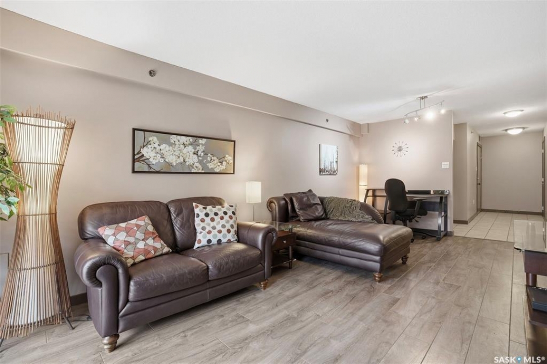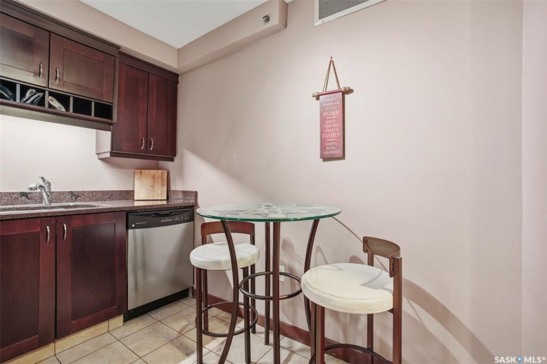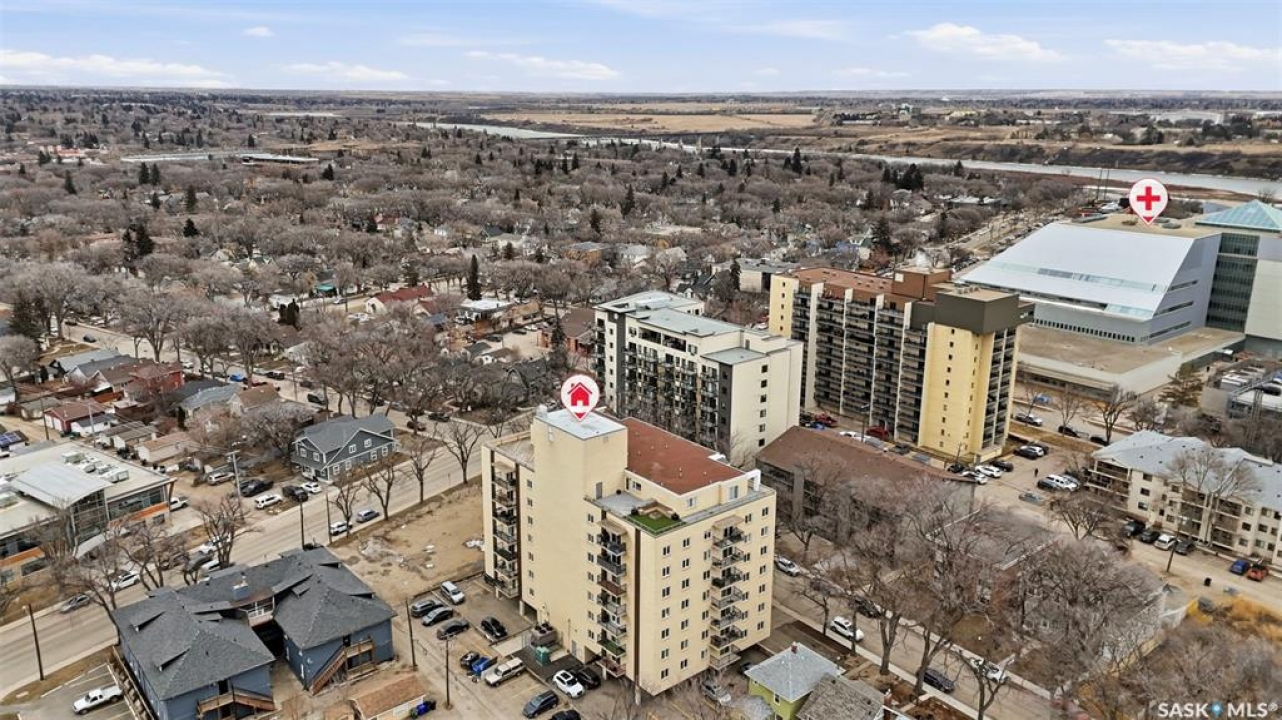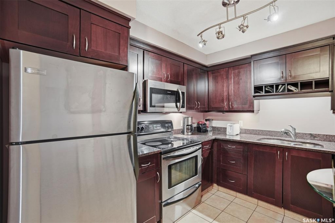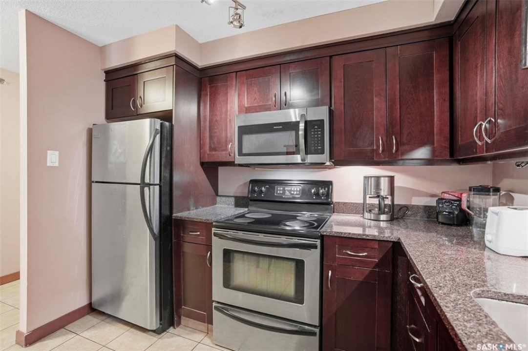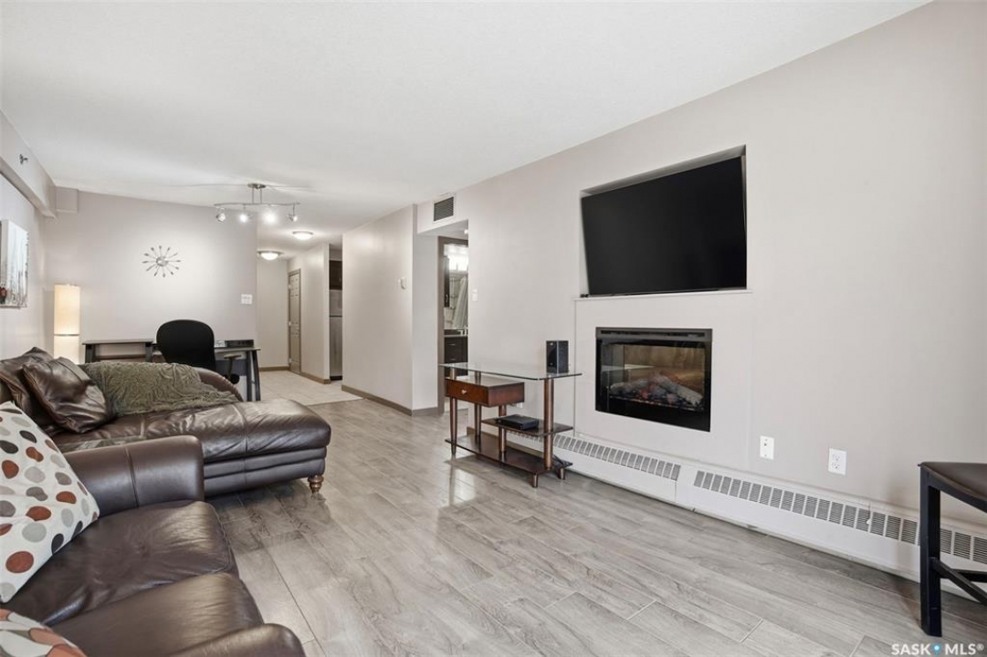All you need is clothes for the closet and food for the fridge, and you are set! This City Park condo is a former showsuite.. and it comes FULLY furnished. Sparrow Coffee and Earl's/Bacchus Lounge are pretty much right out your back door, and the South Saskatchewan River and Meewasin Trails are a 5-minute walk from your front door. This is the perfect location to start your home-ownership journey. Plus, any of you UofS Students looking for off-campus accommodations - it is a 10-minute bike ride to the university. The best part: because the 1st floor is elevated off ground level, the building's boiler lines run right under your suite, so you get free in-floor heat in the winter time! In-suite laundry, your own balcony set amongst the tree line, and close to downtown, this is affordable and hard to pass up!