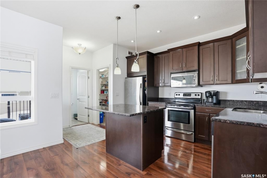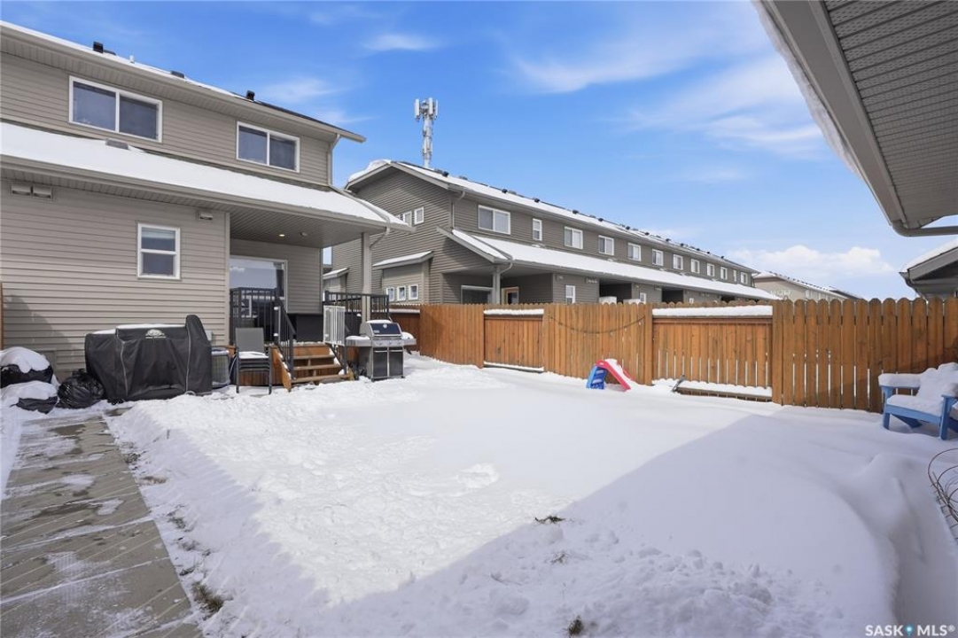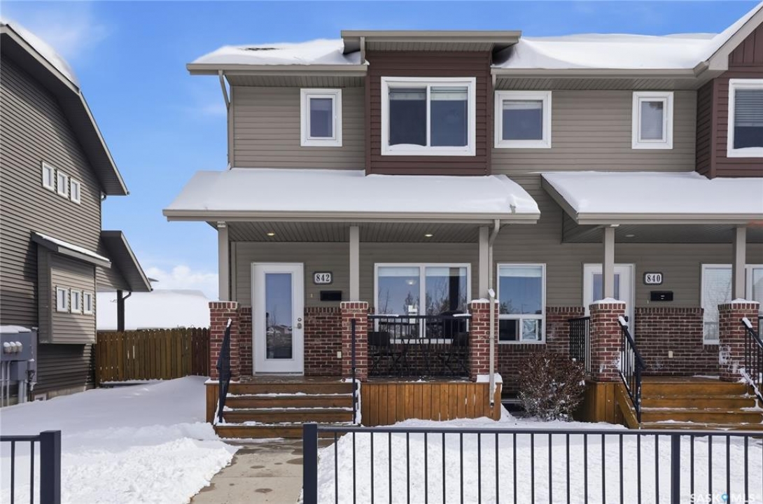 Welcome to 842 Stensrud Road in Saskatoon—an exceptional end unit townhome in the desirable community of Willowgrove. Offering 1,335 sq. ft. of beautifully designed living space across two levels, this meticulously cared for home features 4 bedrooms, 4 bathrooms, and a fully developed basement, perfectly blending comfort and functionality. Bathed in natural light from its south west facing windows, the main floor showcases a stunning kitchen complete with granite countertops, stainless steel appliances, tons of cabinet space, and a spacious walk-in pantry ideal for both everyday living and entertaining. Off of the kitchen you have a generous sized dining area and deck access. Upstairs, you'll find a spacious primary bedroom with large windows and a 4 piece ensuite. Two additional bedrooms, with an additional 4 piece washroom finish off the second floor. Laundry is also located on the second floor. The fully finished basement expands your living options with a cozy family room, fourth bedroom, 3-piece bathroom, and ample storage space—perfect for guests or a growing family. Step outside to enjoy one of the largest yards in the complex. The fully fenced backyard mature landscaping, vibrant greenery, a covered deck, ideal for relaxing or hosting. This home also comes with an insulated double detached garage. Additional highlights include newer paint throughout the entire unit, newly developed basement and central air conditioning! With charming curb appeal—complete with stone accents and a welcoming front veranda, and across from schools and within walking distance to University Heights amenities, this move-in-ready home truly has it all. Don't miss your chance to make it yours!