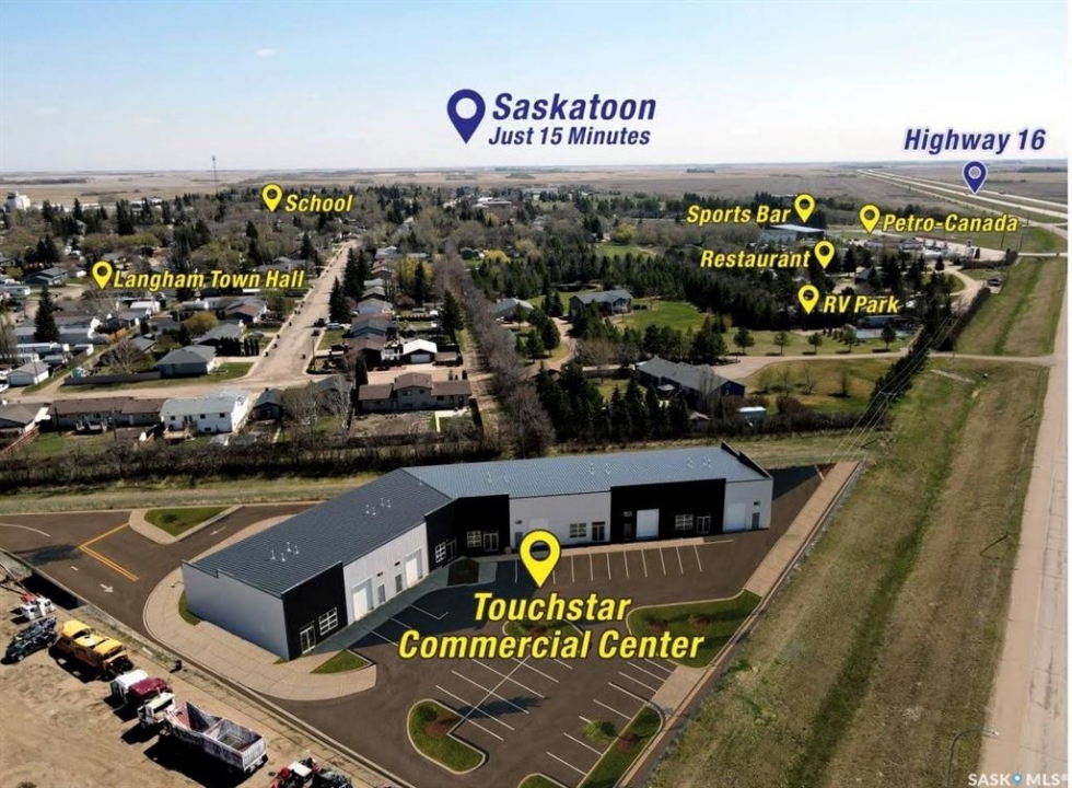 Excellent highway commercial opportunity just 20 minutes from Saskatoon! This high-exposure property is ideally located along Highway 16 with direct frontage, offering outstanding visibility and accessibility. Zoned C2 – Highway Commercial, it supports a wide range of permitted uses. Multiple unit sizes available: 1,500 sq.ft. and 3,000 sq.ft. Each bay measures 25' x 60' with 22' ceiling height, a 10' x 14' overhead door, 100A 3-phase power, and two dedicated parking stalls. Bays 2 through 8 are fully occupied by a strong mix of established businesses, including a furniture retailer, indoor playground, and golf lounge, creating a vibrant and active commercial environment. Ideal for retail, showroom, light industrial, or service-oriented users seeking strong exposure and convenient access along a major highway corridor.