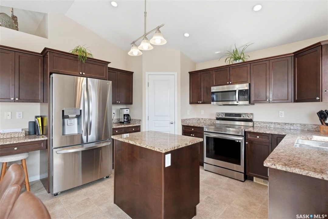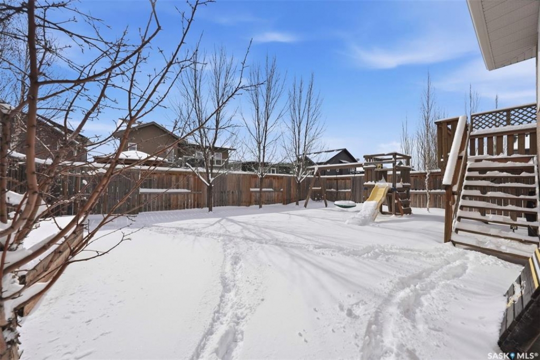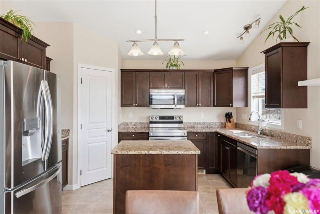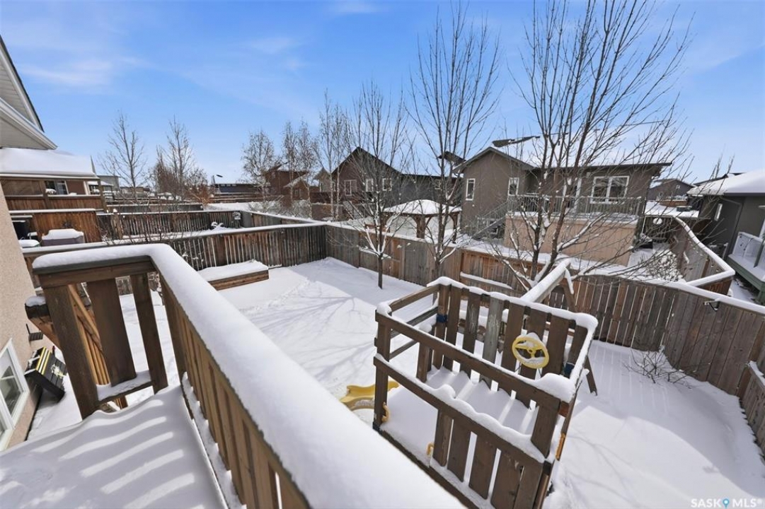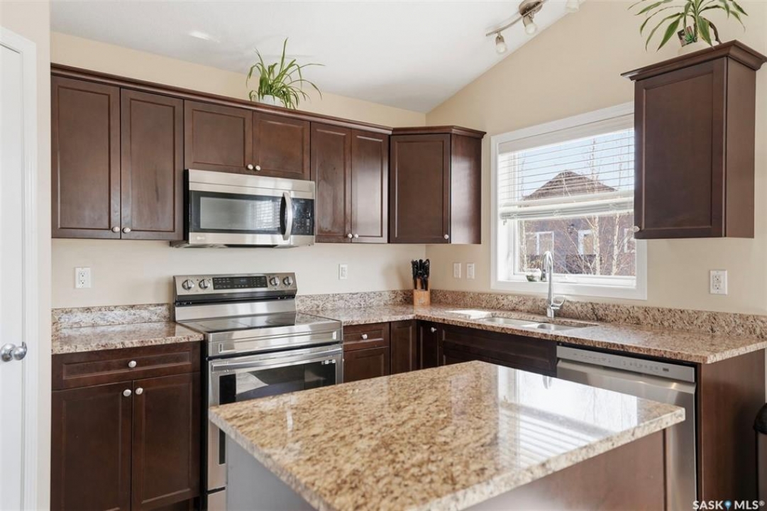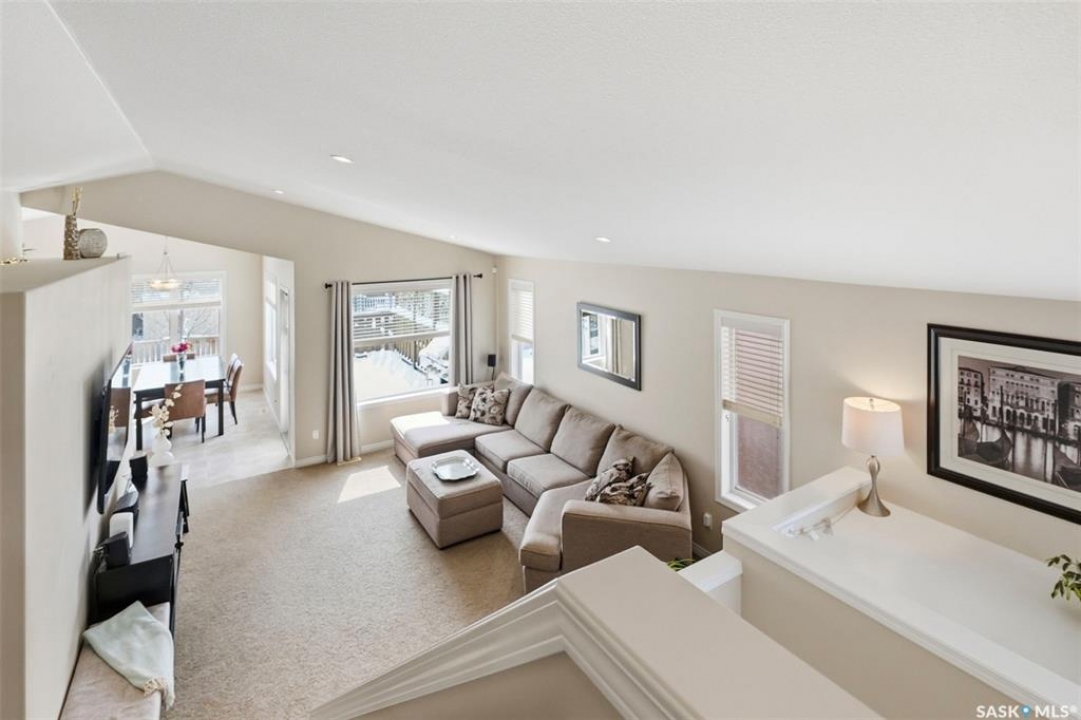 Welcome to this very well maintained 1375 sqft modified bi-level, perfectly situated in the heart of Stonebridge—one of Saskatoon's most sought-after neighborhoods. The main floor immediately impresses with vaulted ceilings and an open-concept kitchen featuring a central island. Kitchen appliances are all new within the last 3 years. The modified bilevel layout offers two spacious bedrooms on the main level, while the private primary bedroom is tucked above the garage, boasting a large ensuite bathroom and a walk-in closet. With two additional bedrooms in the fully finished basement, this five-bedroom, three-bathroom home is ideal for a growing family. The lower level also features a cozy family room with built-in speakers, a large laundry room, and plenty of storage. Outside, the beautifully landscaped, mature backyard provides a private oasis rarely found in newer areas. Sellers have had the furnace and water heater serviced just 3 weeks ago. Located just steps from two elementary schools and all the premium amenities Stonebridge has to offer, this move-in-ready home combines comfort, style, and an unbeatable location. Call you REALTOR �? to view today!