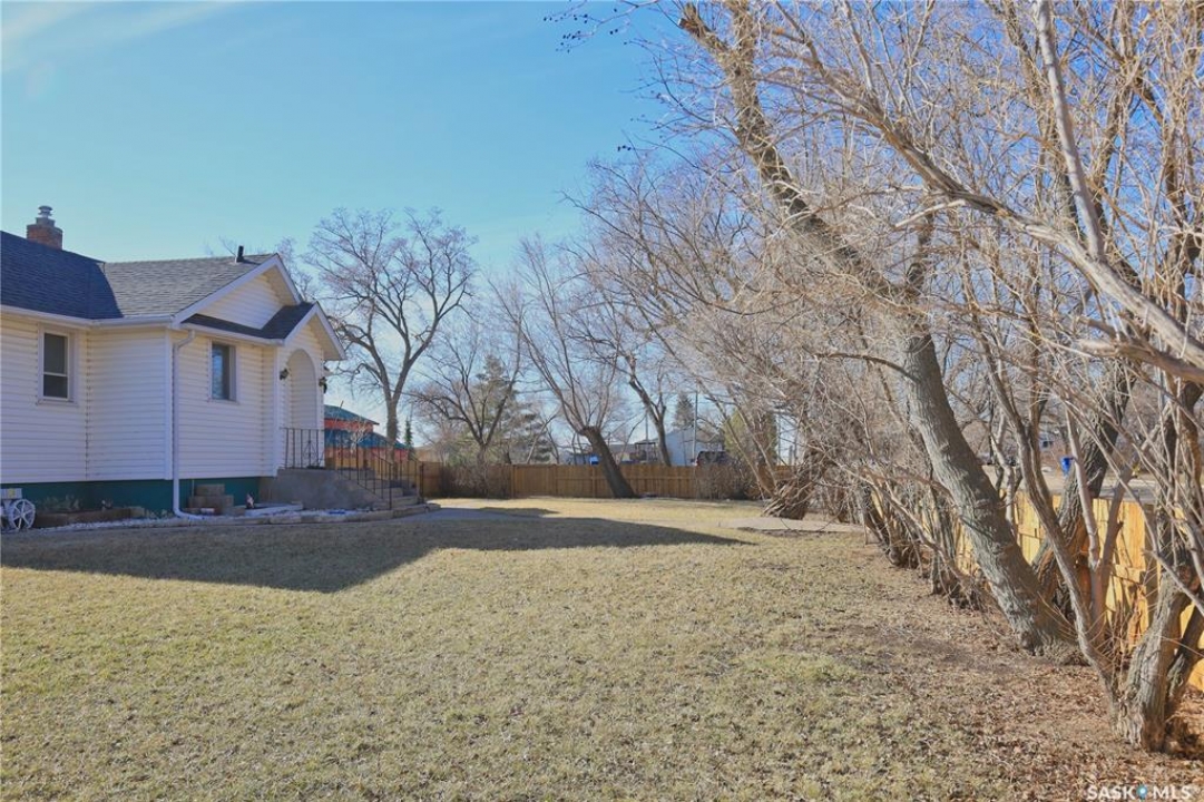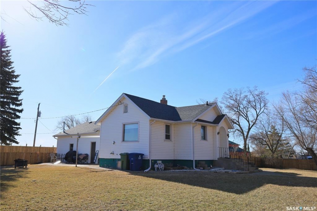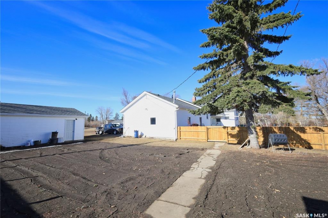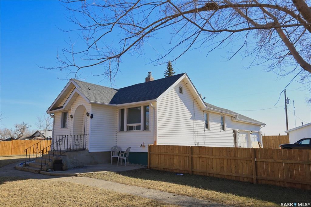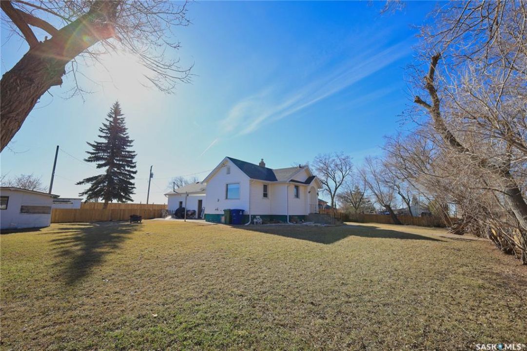 Perfect starter home in Dundurn with no immediate neighbors! This home sits on a massive 150 x 150 lot with surrounding properties owned my the local museum on both sides and backs the town campground. It has a recent treated fence closing in a large portion of yard for kids or pets. The back of the property has a 8 ft fence providing privacy from the campground. The home is a 1948 bungalow with 2 bedrooms and 2 bathrooms. The main floor has had recent upgrades including flooring through out, paint and a remodeled bath with a new acrylic tub and tile accents. There is a nice bright kitchen with oak cabinets and stainless appliances that is open to a large dining area with a built in breakfast nook. The basement is mostly unfinished and does have lower ceiling but there is opportunity for a large family room to be developed. There is a completed bathroom in the basement with a jet tub. This home is perfect for the car enthusiast, toy storage or any workshop requirement with 2 double garages! The first is a heated 24 x 24 attached (no direct entry) and the second is a 20 x 30 detached that has natural gas to it and previously had in floor heat provided by a water heater that is not currently working. There is a large garden area separate from the fenced yard space and tons of room for additional parking for RVs, boats etc. The home and garages were re-shingled approximately four years ago and the central air conditioner is working. Rare property in this price range!!
