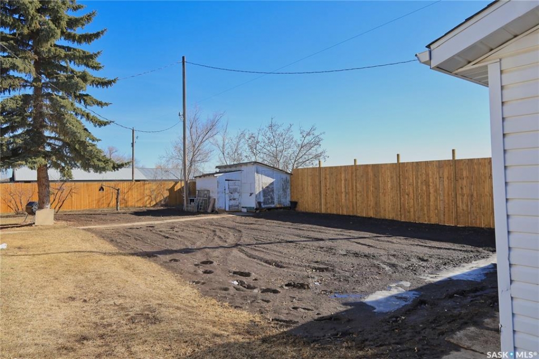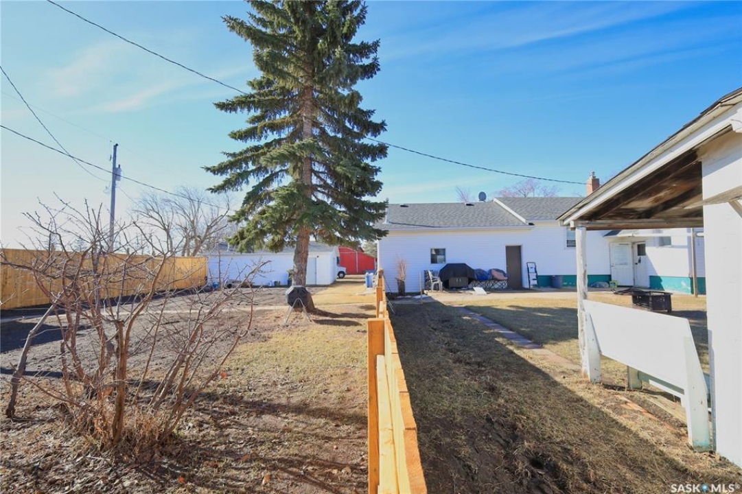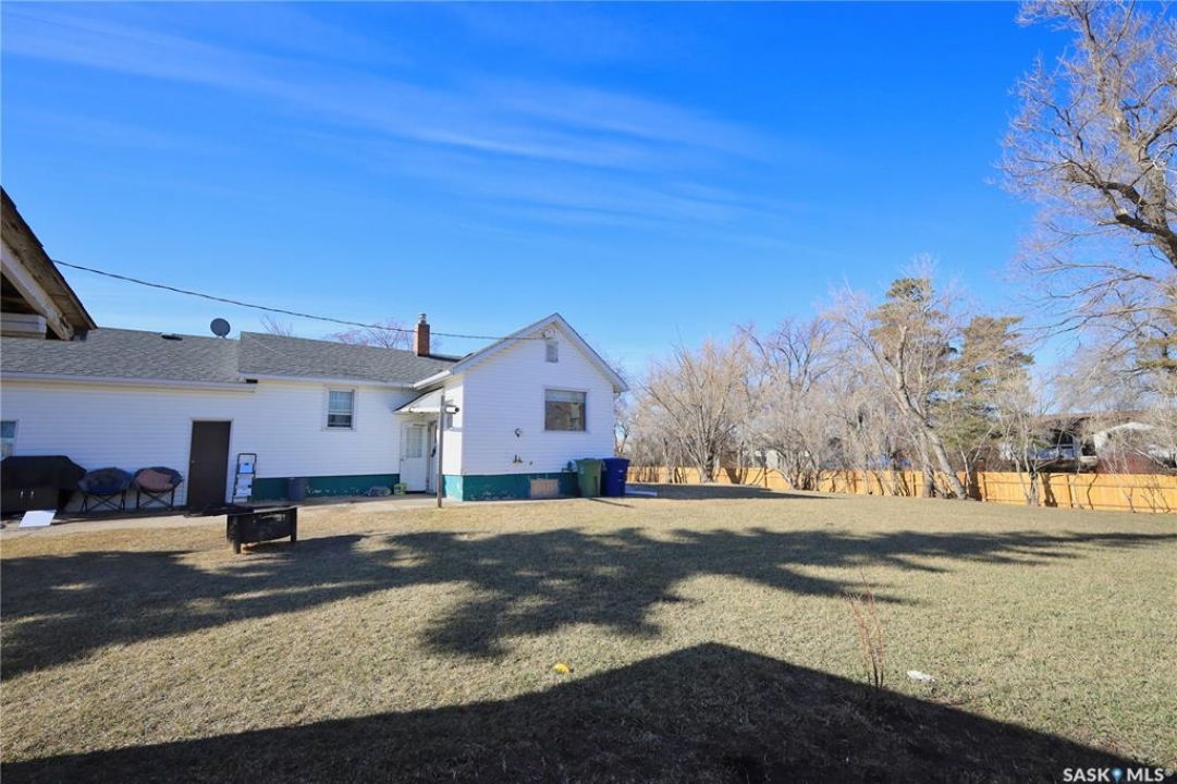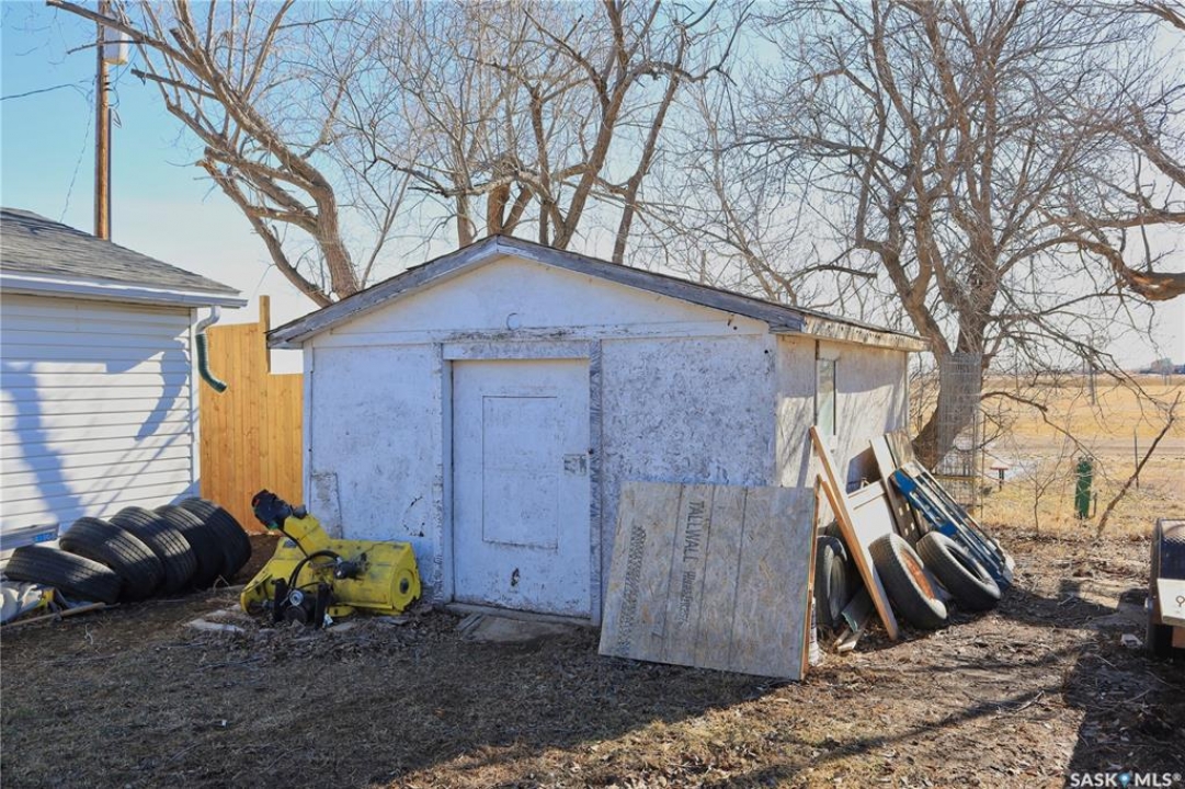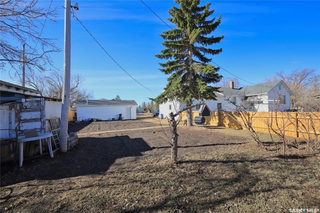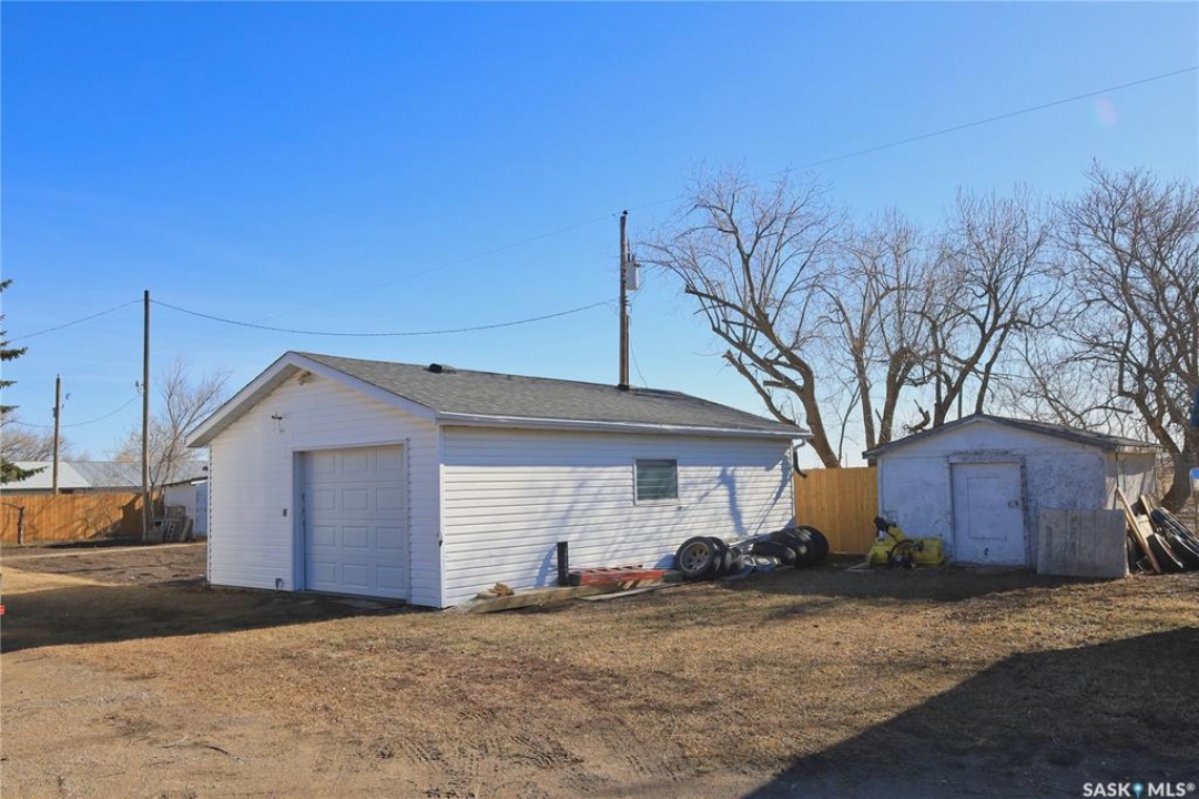 Perfect starter home in Dundurn with no immediate neighbors! This home sits on a massive 150 x 150 lot with surrounding properties owned my the local museum on both sides and backs the town campground. It has a recent treated fence closing in a large portion of yard for kids or pets. The back of the property has a 8 ft fence providing privacy from the campground. The home is a 1948 bungalow with 2 bedrooms and 2 bathrooms. The main floor has had recent upgrades including flooring through out, paint and a remodeled bath with a new acrylic tub and tile accents. There is a nice bright kitchen with oak cabinets and stainless appliances that is open to a large dining area with a built in breakfast nook. The basement is mostly unfinished and does have lower ceiling but there is opportunity for a large family room to be developed. There is a completed bathroom in the basement with a jet tub. This home is perfect for the car enthusiast, toy storage or any workshop requirement with 2 double garages! The first is a heated 24 x 24 attached (no direct entry) and the second is a 20 x 30 detached that has natural gas to it and previously had in floor heat provided by a water heater that is not currently working. There is a large garden area separate from the fenced yard space and tons of room for additional parking for RVs, boats etc. The home and garages were re-shingled approximately four years ago and the central air conditioner is working. Rare property in this price range!!