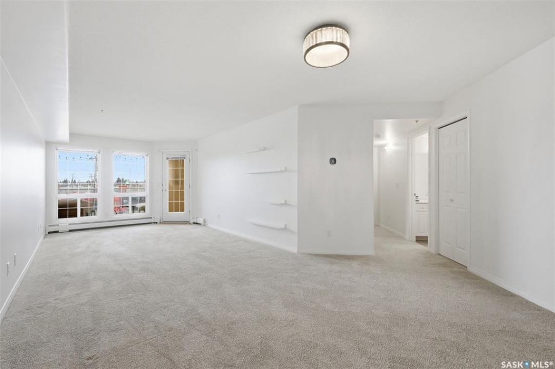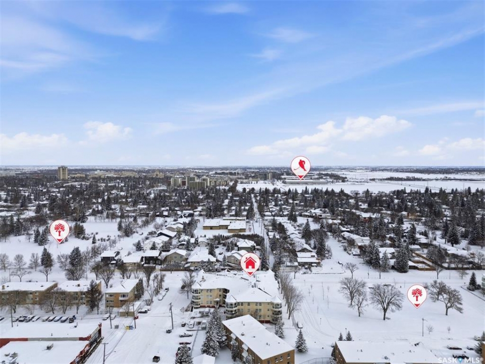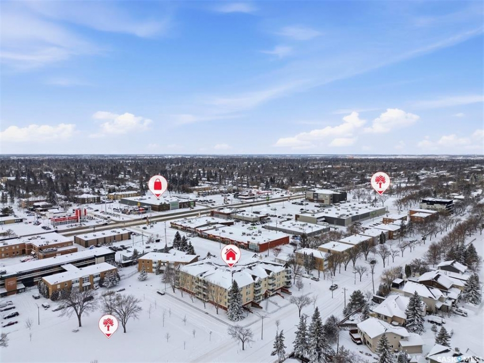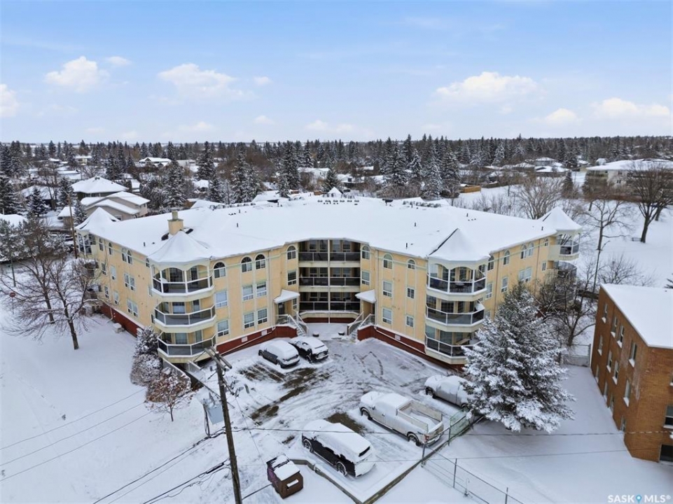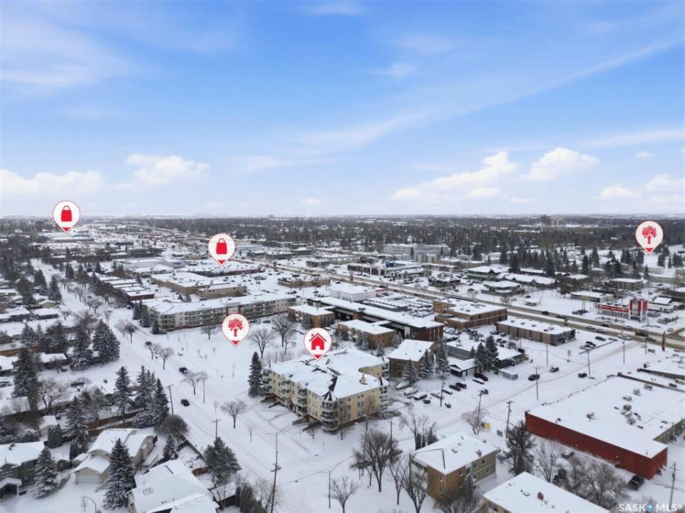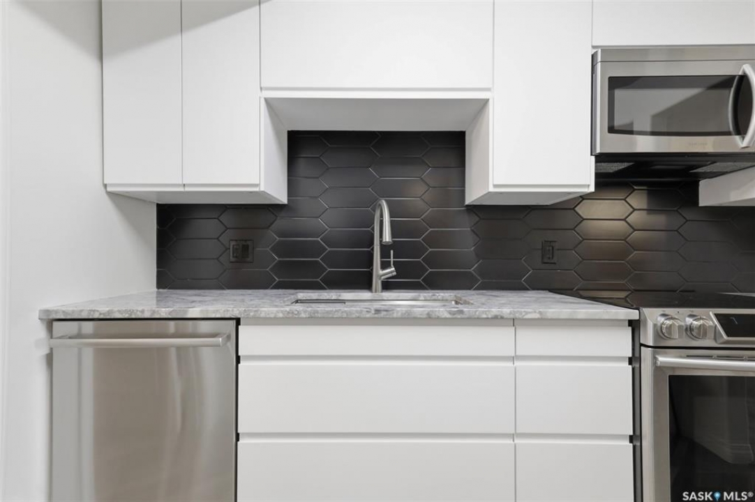 Welcome to this beautifully renovated 1,100 sq. ft. condo in the highly sought-after, family-friendly neighborhood of Grosvenor Park. Perfectly located near the university, major bus routes, and all the amenities along 8th Street, this home offers both convenience and comfort. Step inside to discover a bright, open-concept layout seamlessly connecting the living, dining, and kitchen areas—ideal for both everyday living and entertaining. The stunning new kitchen features quartzite countertops, a trendy tile backsplash, sleek new appliances, and modern finishes throughout. Durable and stylish vinyl plank flooring flows effortlessly across the entry and kitchen. This condo offers a unique and very functional layout with both bedrooms, including a primary bedroom complete with a private 3-piece ensuite, and walk in closet are tucked to the one side of the unit. An additional updated 4-piece bathroom provides convenience for guests or family members. Additional highlights include one underground parking stall, a large storage locker, and a well-maintained self managed building in a prime location, saving on condo fees. Whether you're a first-time buyer, downsizer, or investor, this move-in-ready home checks all the boxes. Contact your favorite agent for your private showing today!