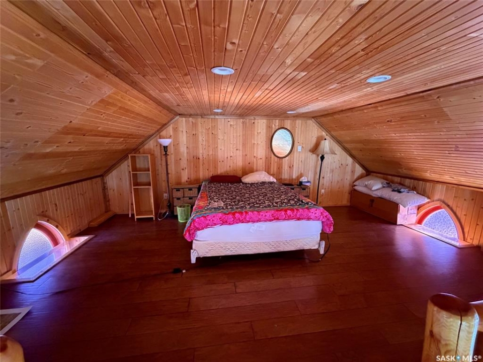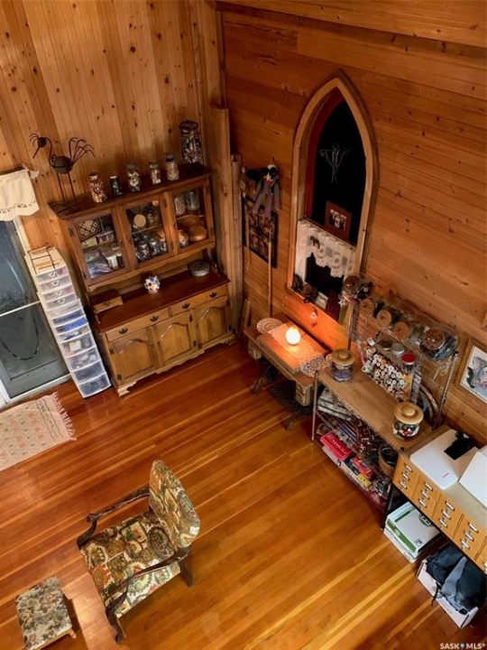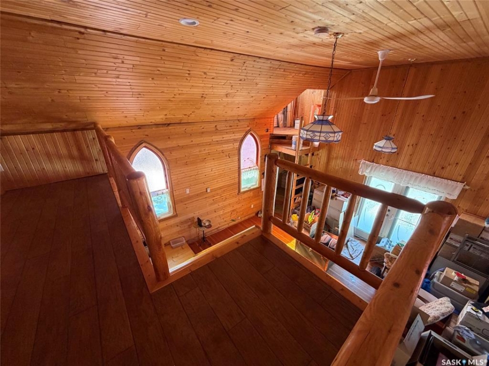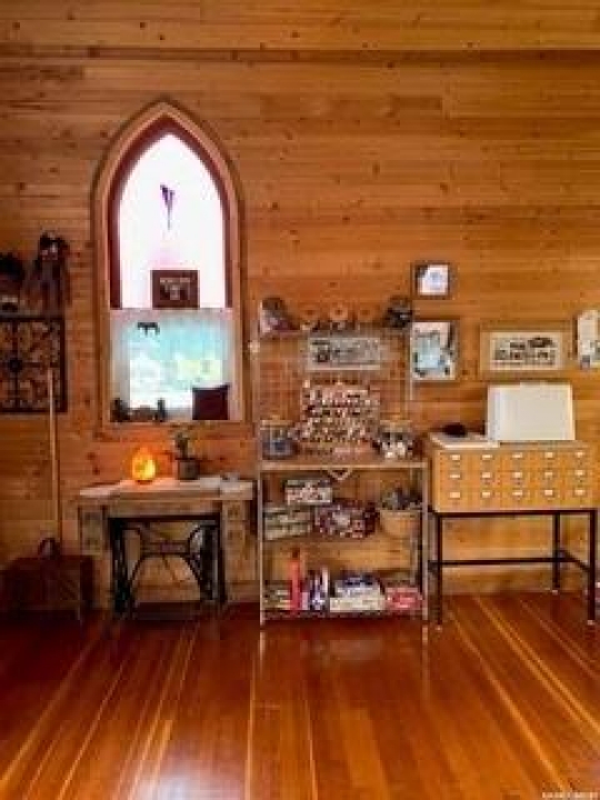 Charm. Serenity. Glowing light in your private oasis. This 1935 renovated church can give you all the peace and quiet of living on a private double lot in the village of Glaslyn. With the original fir wood flooring on the main level, the open layout reflects a golden glow from the clerestory windows, while an elevated stained-glass window above the entry provides a biblical conversation piece and an exquisite focal point. Frosted garden doors lead out onto the raised deck overlooking your lawn with fruit trees and shrubs. The spacious loft up the solid and attractive exposed staircase provides a simple and private space that fits with the classic spirit of the home. On the lower level, you will find more quality craftsmanship in the acid washed concrete floor throughout the open family space. In-floor heat keeps the home comfortable and inviting. Surrounded by shrubs and trees, the property is close enough to all amenities that you can walk uptown but is on a quiet street and almost hidden in its privacy. Own the most interesting home in town - book a showing today
