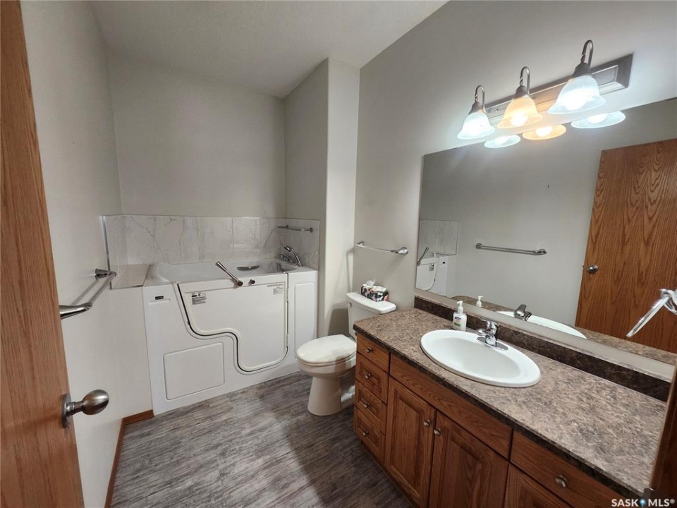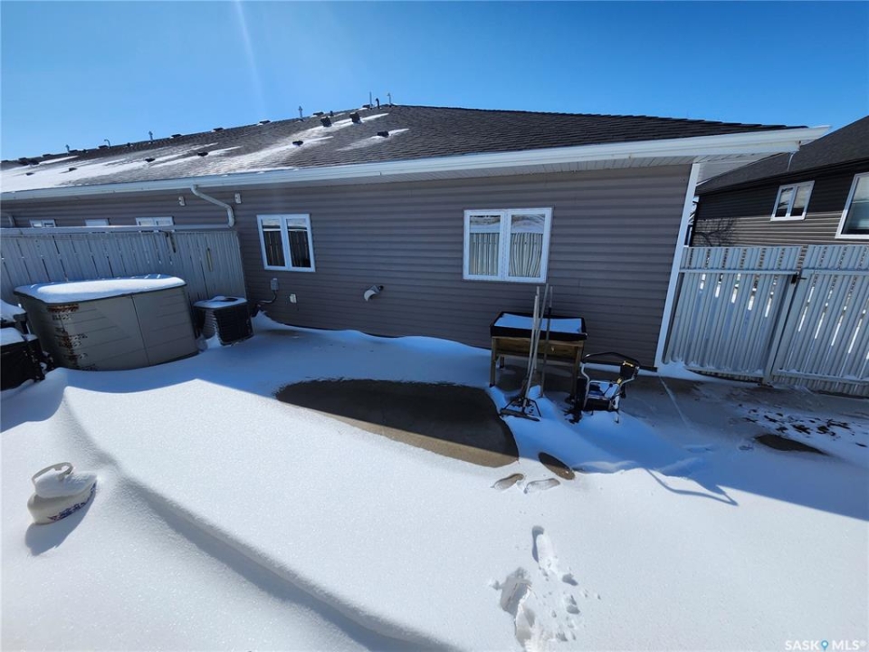 Welcome home to this beautifully maintained 1,212 Sq. Ft. corner condo unit, offering the perfect blend of comfort, functionality, and easy living—all conveniently laid out on one level. Step inside to a bright open-concept design featuring rich hardwood floors, a spacious living area, and a well-appointed kitchen complete with a built-in dishwasher and a welcoming breakfast island—perfect for casual dining or entertaining guests. This thoughtfully designed home offers two bedrooms, the large master bedroom featuring his and her closets, secondary bedroom with its own two-piece ensuite and built-in wardrobe, adding convenience and privacy for guests or family. The main bathroom is a standout, featuring a walk-in jetted bathtub—ideal for relaxation and accessibility. Outside, this edge corner unit truly shines. The property is nicely landscaped and features a private backyard with maintenance-free fencing and yard, perfect for enjoying quiet mornings or summer evenings. A large shed adds extra storage, while RV parking provides flexibility for your lifestyle. The 12' x 28' heated, insulated garage offers ample space for vehicles, hobbies, or a workshop—making it as practical as it is appealing. Low-maintenance living without sacrificing space or features—ideal for those looking to downsize, invest, or enjoy a more relaxed pace of life. Property features large heated crawl space for storage, R O System, central air, and permanent Christmas lights. Condo fees are $425.00 monthly and include: water utility, maintenance & replacement to exterior, taxes, snow removal, landscaping/upkeep.