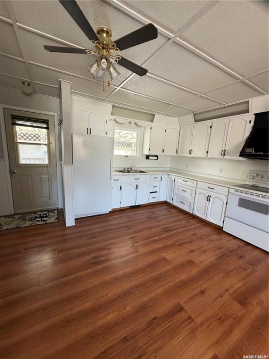 4-Bedroom Family Home with Heated Garage & Loaded Extras! Move right in with quick possession available! This freshly painted 4-bedroom, 2-bath home offers an inviting open-concept layout and plenty of natural light from the large windows throughout. The updated bathroom adds a modern touch, while the covered, enclosed entry deck provides a practical and welcoming space year-round. Step outside and enjoy a fully fenced yard complete with a garden area, raised beds, and mature cherry and raspberry trees—perfect for those who love to grow and enjoy their own produce. The detached heated 2-car garage is a standout feature, fully equipped with a workbench, Led lighting, stereo and speakers,storage shelving, meat hoist, sled lift, and welder—ideal for hobbyists, mechanics, or anyone needing a functional workspace. Additional features include a shed for extra storage and appliances included: fridge, stove, washer, and dryer.This property offers space, functionality, and serious value—perfect for families or anyone looking for a well-equipped home. Not for rent. Call now to set up your viewing!