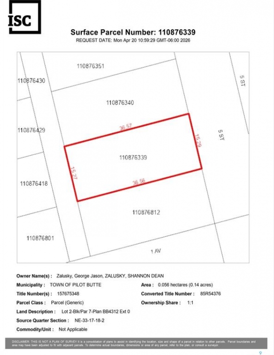 Build Your Dream Home in Pilot Butte! Prime opportunity to own a 50' x 120' vacant lot located in the well established and desirable community of Pilot Butte. This generous residential lot provides the perfect setting to design and build your custom home in a quiet, family-friendly neighbourhood. No services currently connected. Purchaser responsible for all utility connections (power, gas, water, and sewer) and associated costs. Pilot Butte offers a strong sense of community and a variety of local features and amenities including a K-8 school, daycare, parks, walking paths, recreation facilities, community centre, shops, restaurants and nearby golf courses. Enjoy small-town living just minutes from Regina with easy access for commuting, shopping, and amenities. Whether you're ready to build now or planning for the future, this is an excellent opportunity to secure a well-located lot in a growing community. Don't miss out, start planning your dream home today!