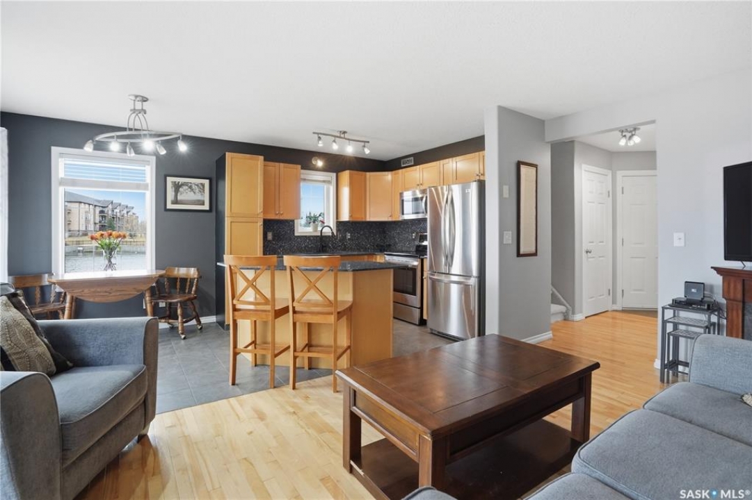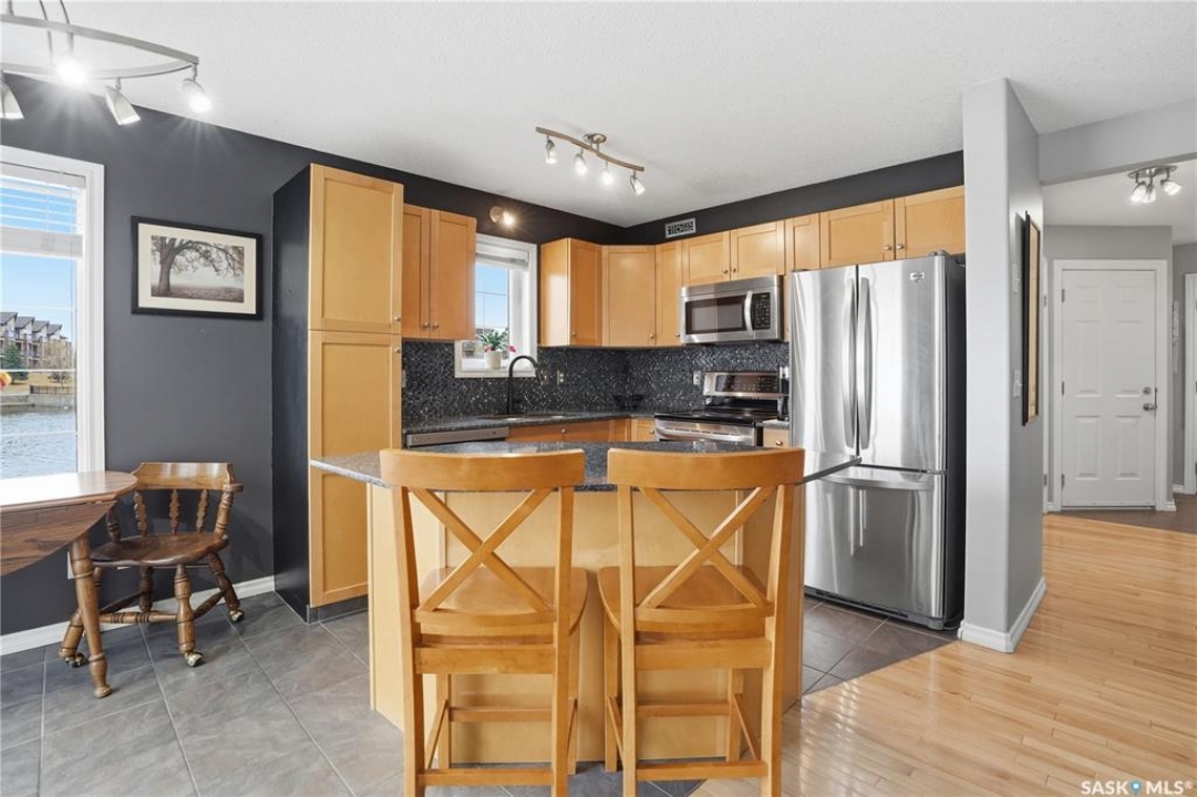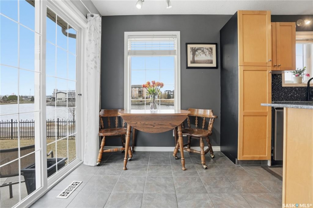 Location. Location. Location. Views. Views. Views. Rarely does a property check every box, but this one does. Welcome to Unit 3 at 2400 Tell Place, perfectly positioned in Regina's desirable east side Riverbend subdivision. As a premium end unit, this townhouse condo enjoys an unparalleled setting directly beside a picturesque man-made lake. Wake up every morning to tranquil water views and enjoy them from your own private patio and expansive lawn. This is lakeside living without the lakeside price tag. Step outside and you are moments from everything the east end has to offer: top-rated schools, shopping, the public library, and an extensive network of bike and walking paths. The kind of lifestyle convenience that simply cannot be overstated. Inside, this thoughtfully upgraded 3-bedroom, 2.5 bathroom home built in 2004 and fully developed top to bottom delivers both style and function. The main floor opens with a generous entryway leading into a bright, open concept kitchen, dining, and living area dressed in rich maple cabinetry, mosaic backsplash, hardwood and ceramic tile flooring, and upgraded stainless steel appliances. Patio doors off the dining room open directly to your private outdoor retreat, a spacious patio and large lawn framed by serene lake views. Upstairs, three generously sized bedrooms provide comfortable living, with the primary bedroom featuring a thoughtfully designed door entry to the shared bathroom. The professionally fully developed basement adds exceptional living space, including a spacious recreation room, a well appointed 3-piece bathroom and laundry room, and additional storage. Completing the package is an insulated and drywalled single attached garage with direct interior entry, and affordable condo fees of $367 per month covering water, snow removal, lawn care, building maintenance, and reserve fund contributions. End unit privacy. Lakeside views. Unbeatable location. This is the one.