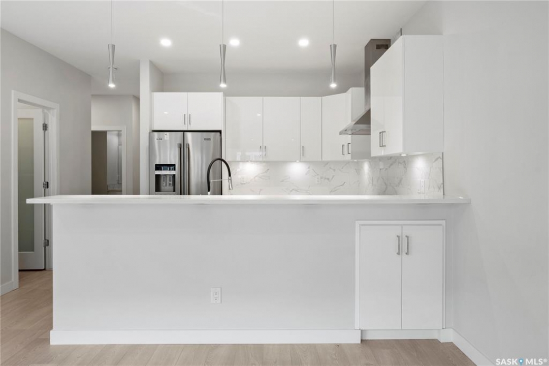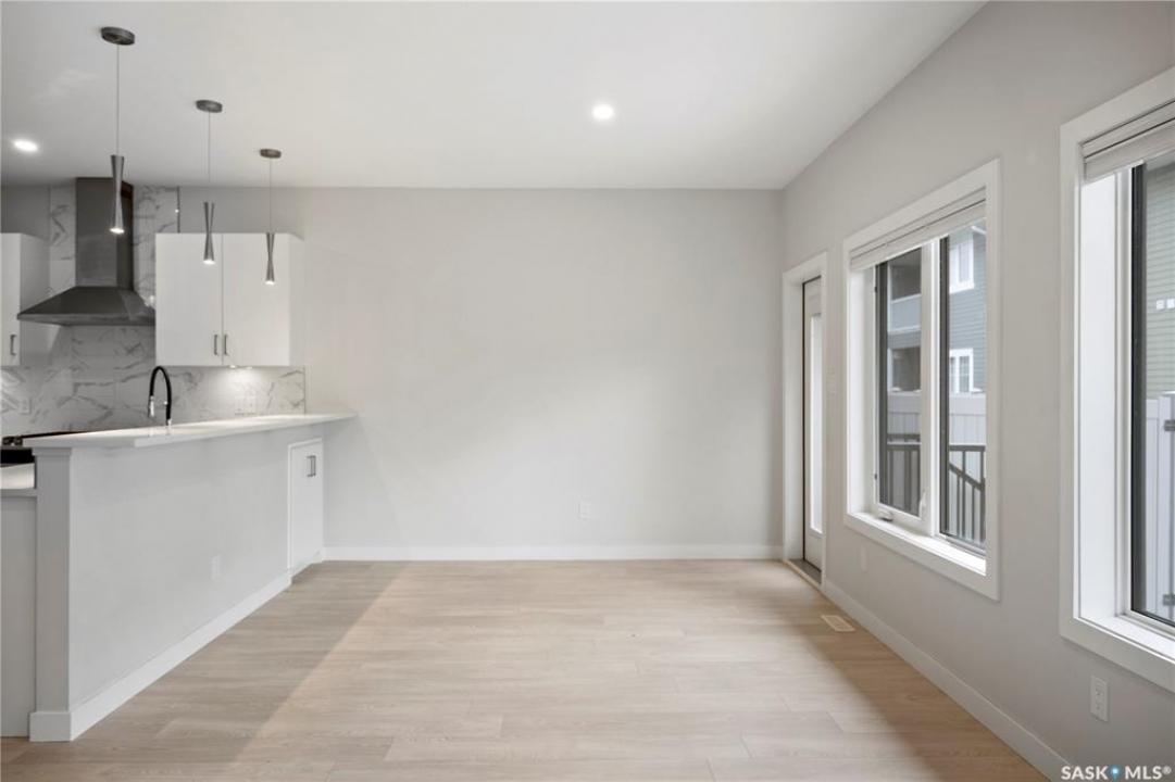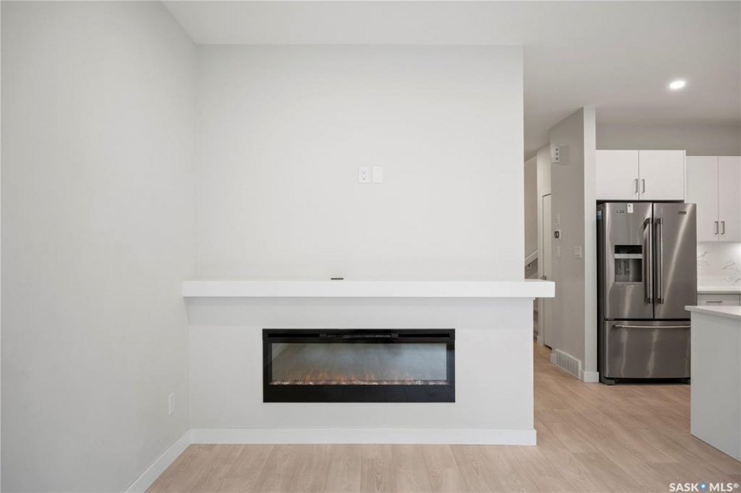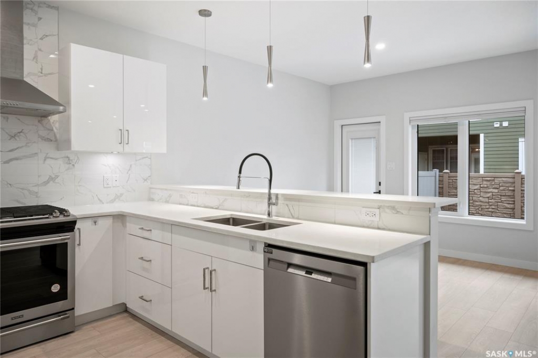 Welcome to this stunning two storey condo in the desirable neighborhood of The Towns, offering modern living at its finest. Step inside to a bright, open-concept main floor enhanced by 9ft ceilings and stylish vinyl plank flooring that flows throughout. The spacious living area, perfect for relaxing or entertaining, is centered around a cozy electric fireplace. The gourmet kitchen is a showstopper, boasting sleek high-gloss cabinetry, quartz countertops, a full-height marble-patterned backsplash, under-cabinet lighting, and a premium stainless steel appliance package with a gas range and chimney-style hood fan. A large peninsula with a breakfast bar provides a perfect spot for casual dining, and a convenient powder room completes the main level. Upstairs, discover a private retreat where the spacious primary bedroom features a generous walk-in closet with custom organizers and a modern en suite with a walk-in shower. Two additional bright bedrooms, a full main bathroom, and a convenient second-floor laundry room complete the upper level. Enjoy low-maintenance outdoor living in your private, fenced patio area. This exceptional property also includes a double attached and heated garage. The unfinished basement offers excellent potential for future personalization. With central air, a heat recovery unit, and low condo fees covering exterior maintenance, this home is truly move-in ready.