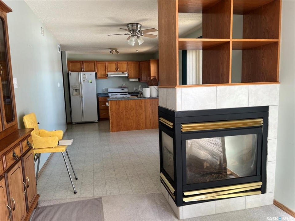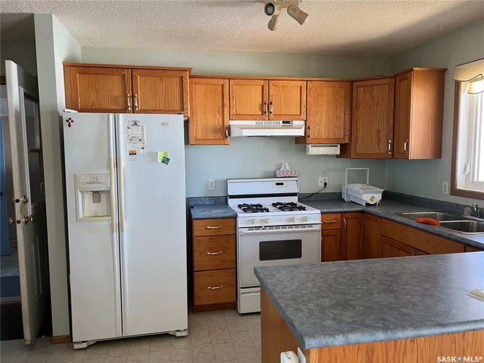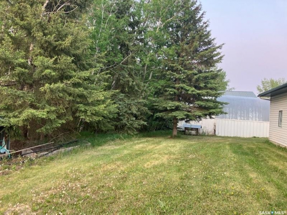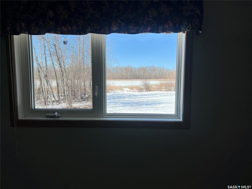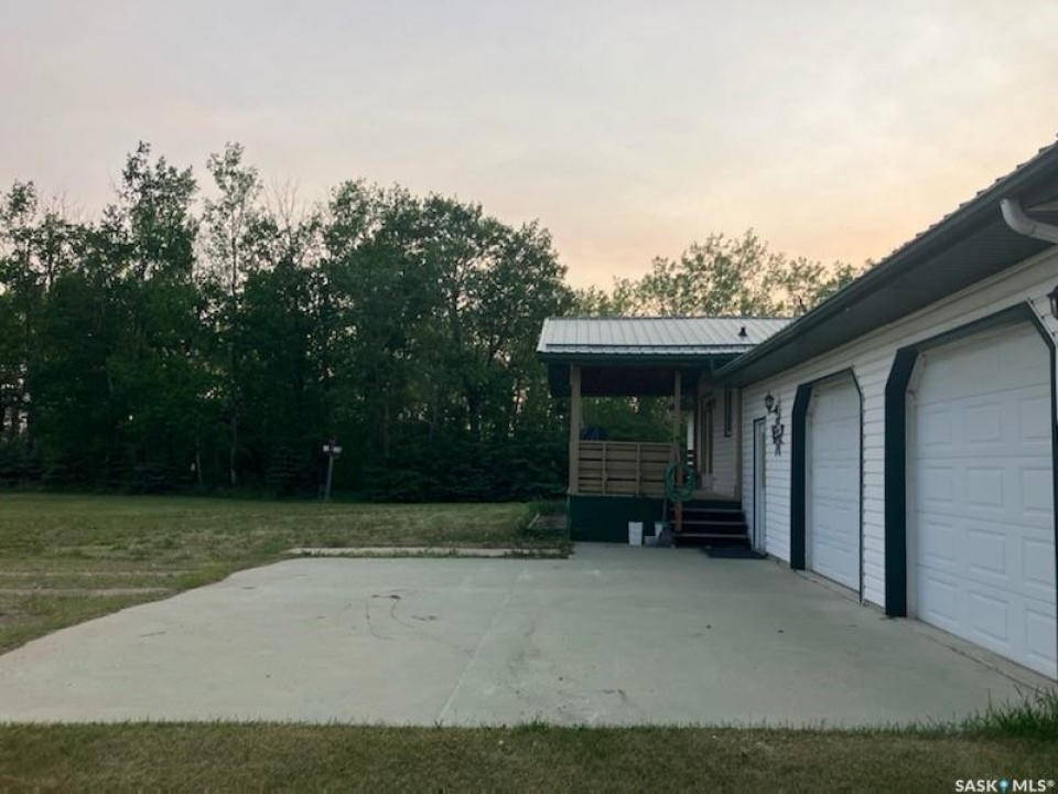 Look! Look! Built in 2000, this 1092 sq. ft. 3 bedroom, 1 full bath bungalow with breezeway and attached double garage is situated on 10 beautifully landscaped acres. Yard has great appeal from the grid road. Garden is close to the road by the driveway. Deck offers shade and a great view of the surrounding area while barbequing on the NG BBQ. Private lake in back provides your own piece of paradise! Garage has NG overhead heater, lots of windows for plenty of natural light. It is fully lined, insulated and wired with automatic openers. Concrete floor in excellent condition. Work area on back wall. Yard has underground power; large dugout for water; septic tank and pumpout for sewage disposal. Mature spruce shelterbelt surrounds the yard. Outbuildings include: Arch rib shop with addition, Metal clad pole shed with 3 sided lean to; 3 older wooden bins were used as a workshop. Bungalow has large covered deck on front with garden doors to the dining room. Walk-in door to the breezeway/ mudroom allow access to the double garage or up 3 steps to the home. Breezeway/ mudroom has storage for coats and boots plus storage room for preserves. Upon entering the home, the door to the basement / crawl space is directly ahead. The kitchen is to the left and the hallway is to the right. Kitchen has custom oak cabinets with built in dishwasher, NG stove, fridge. Island separates kitchen from dining room. Double sided NG fireplace separates dining room from living room. Huge living room, great for entertaining! Living room opens into hallway. Primary bedroom has panoramic view of small lake back of the home. All 3 bedrooms have a great view of the lake! 4pc main bath. An area has been cleared for firepit and barbeques where guests can listen to the frogs sing or watch the geese fly in to land! Great place to commune with nature! A small shed near the firepit area, house a pressure system from the lake which is used to water the garden.