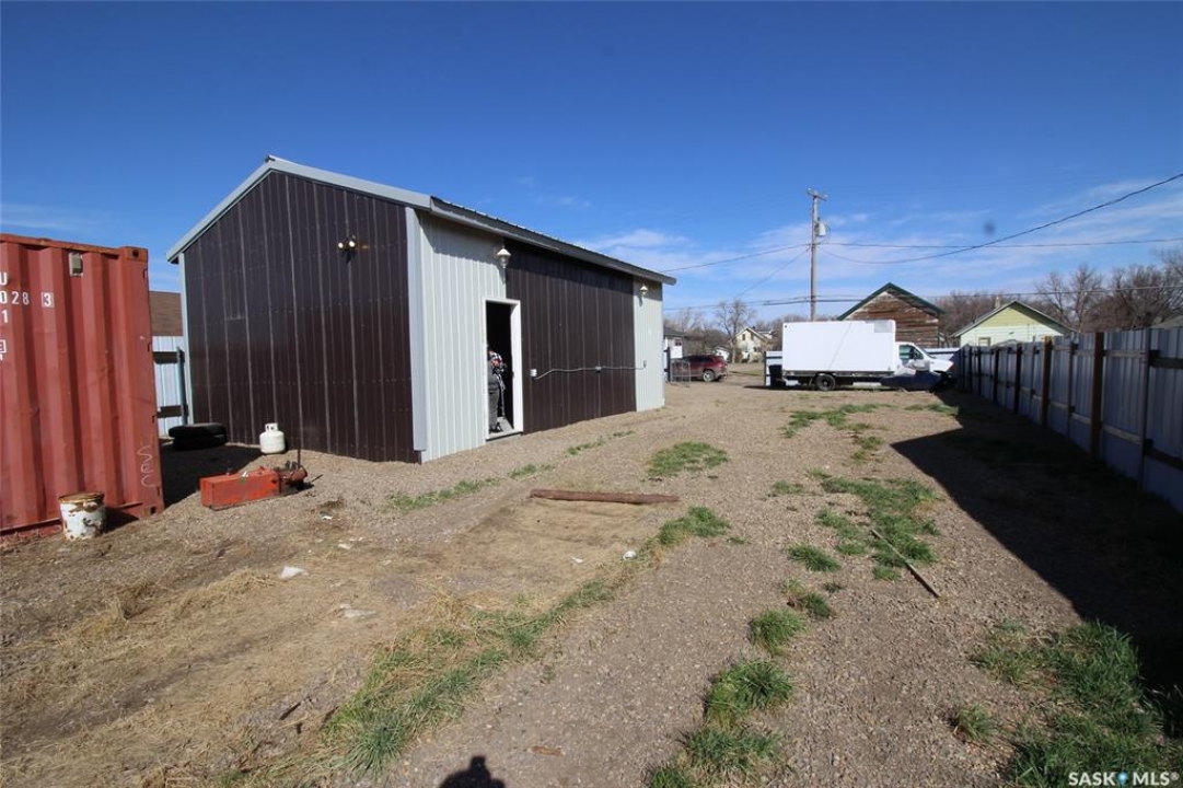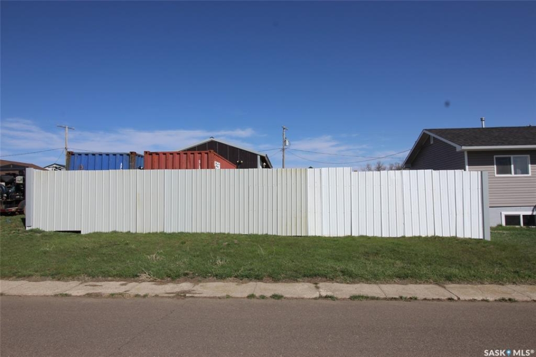 For sale, a large fenced compound with a newly constructed garage. The site is a 50'x120' lot that has been fully fenced with metal fencing and a chain link gate from the back lane. The garage on site is 26'x18' with a concrete pad. The garage is fully insulated and finished on the inside with fireproof drywall and tape and has been primed and painted. The garage is fully electrified with 120/240 Volt service and the building has various 30amp and 50amp outlets. Set up for an overhead door opener (included) for the door that is 9' x8'. Shop has a gas overhead heater. The shop has a completely metal exterior with yard lighting on the building and solar lighting through the yard. The entire lot has been leveled with crushed rock. The two 20' Sea Cans are not included in the purchase, and any other belongings on the property will be moved prior to possession