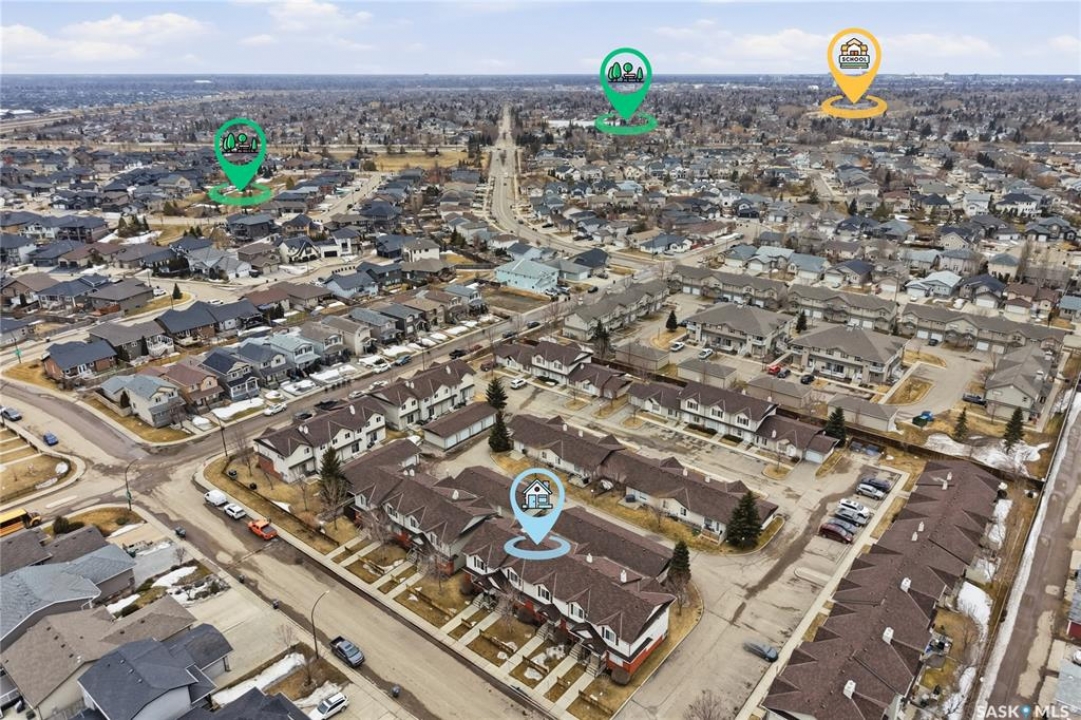 Welcome to this two-storey townhouse located in the desirable Willowgrove neighbourhood of Saskatoon. This spacious 4-bedroom, 3-bathroom home offers a functional layout perfect for families, first-time buyers, or anyone looking to get into the Saskatoon market. The main floor features a bright and inviting living room that flows seamlessly into the open-concept kitchen and dining area, ideal for both everyday living and entertaining. The kitchen is well-appointed with ample counter space, a pantry, and convenient access to the back patio, making it easy to enjoy summer sunshine or fire up the BBQ. A 2-piece bathroom completes the main level for added convenience. Upstairs, you'll find two comfortable secondary bedrooms along with a 4-piece bathroom. The primary bedroom offers a generous layout with a spacious double closet. The fully developed basement adds even more living space, featuring a cozy family room, a 3-piece bathroom, and an additional bedroom, perfect for guests or a home office. The utility room is neatly tucked away, and the separate laundry area offers plenty of space to stay organized. Outside, enjoy the added benefit of a single detached garage, perfect for keeping your vehicle protected during the winter months. As the warmer weather approaches, you'll appreciate the comfort of central air conditioning. Don't miss your opportunity to own this versatile and move-in ready home in a fantastic location. Call today to book your private showing!