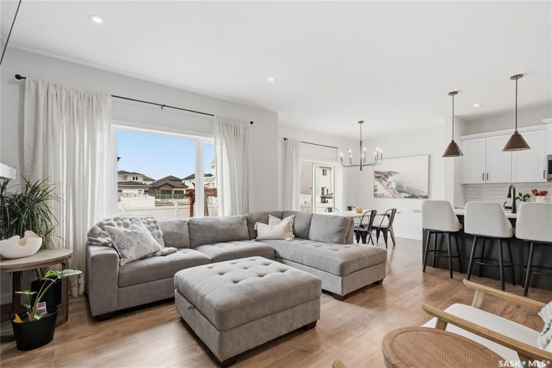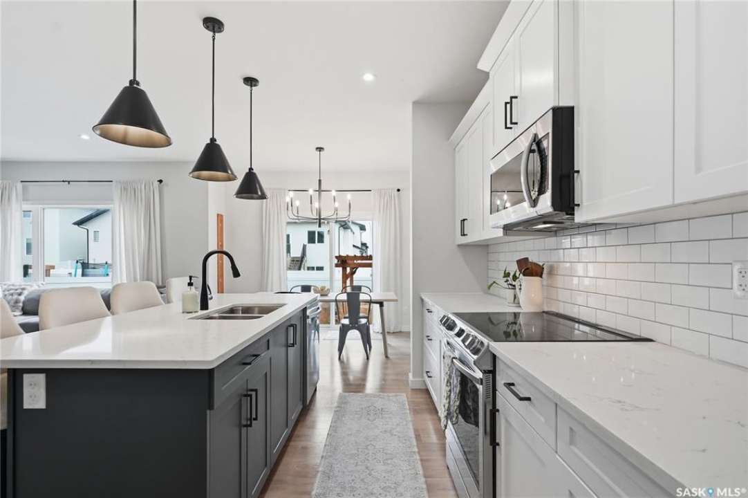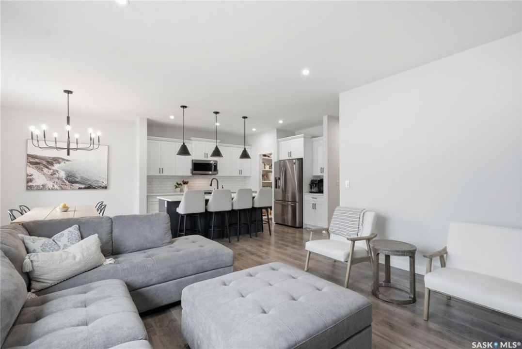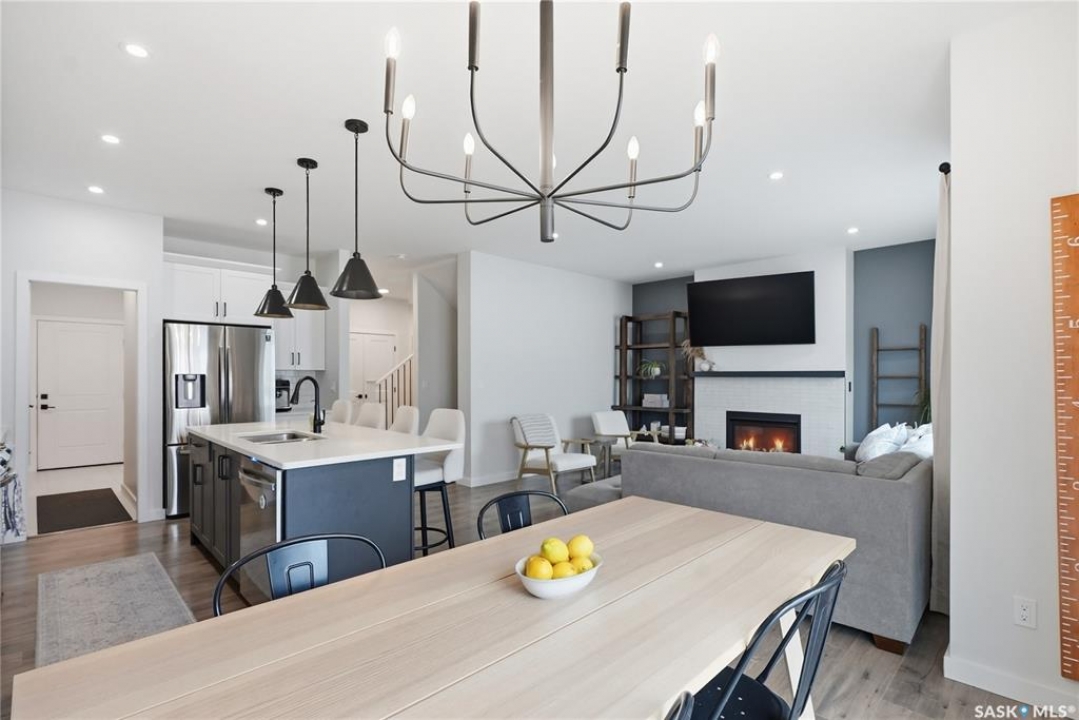 Welcome to 160 Thakur Street in the desirable community of Aspen Ridge. This like-new home by Edison Built Homes offers a perfect blend of modern design and everyday functionality. The exterior features attractive curb appeal with a stylish mix of vinyl siding, stone, and board-and-batten detailing. Inside, you're welcomed by a spacious foyer with a large double-door closet. Direct entry from the attached garage leads to a thoughtfully designed mudroom with built-in cabinetry, bench, and shelving. The heart of the home is the beautifully appointed kitchen, complete with rich cabinetry, quartz countertops, an appliance package, and ample storage. The adjacent living room is filled with natural light from large south-facing windows overlooking the backyard, while a feature wall with a gas fireplace creates a warm, inviting atmosphere—perfect for relaxing or entertaining. A convenient two-piece bathroom completes the main floor. Upstairs, you'll find a stunning bonus room with vaulted ceilings, ideal as a second living space. The bright and spacious primary bedroom features a large window and a luxurious five-piece ensuite with double vanity, soaker tub, tiled walk-in shower, and walk-in closet. Two additional bedrooms, both with walk-in closets, a full four-piece bathroom, and a dedicated laundry room complete the upper level. The basement is open for future development with space for an additional bedroom, bathroom, and family room. The backyard is beautifully designed with white vinyl fencing, a ground-level patio, and a well-planned sitting area. With south-facing exposure, it's perfect for enjoying summer days. Don't miss your chance to own this beautiful home.