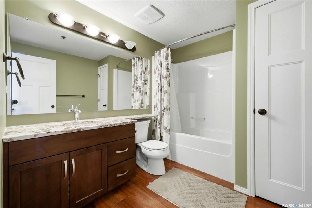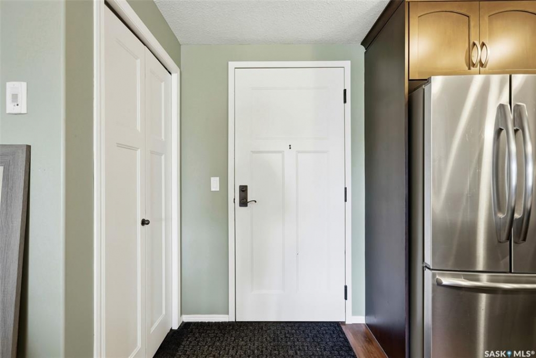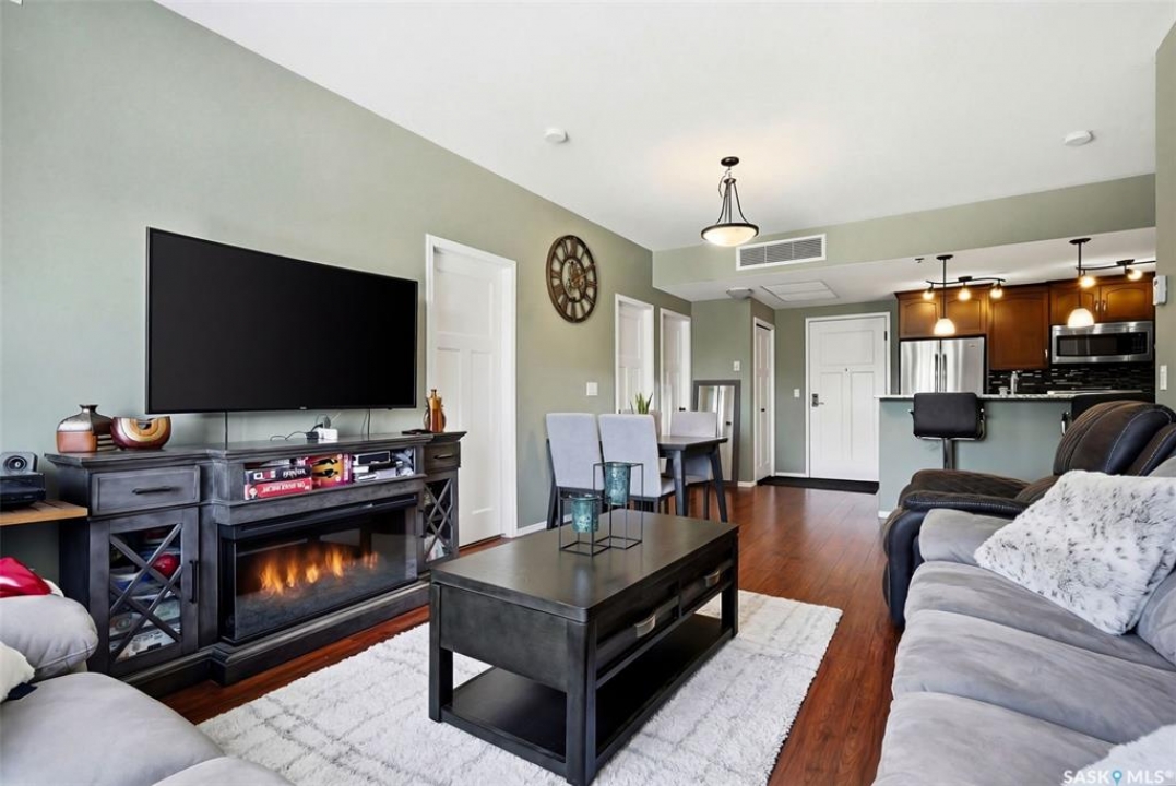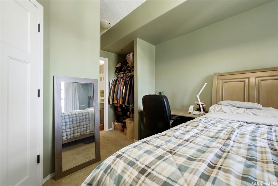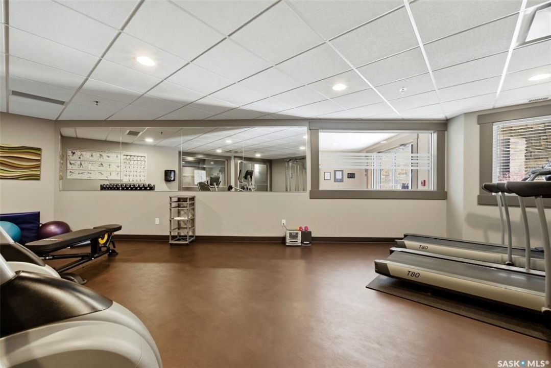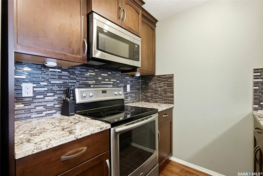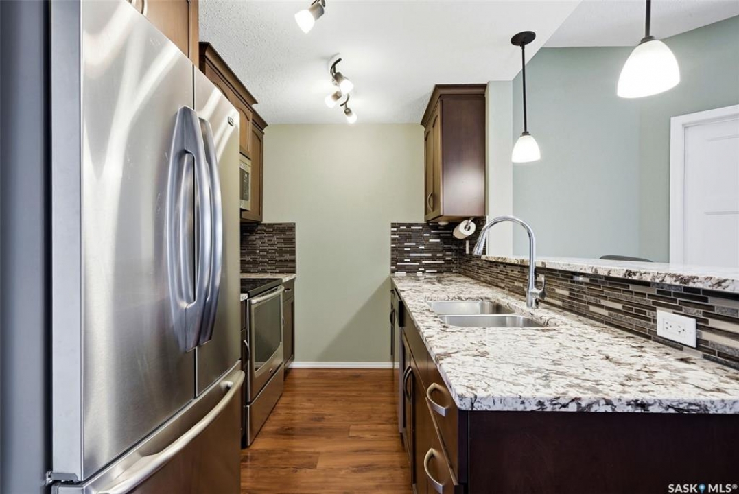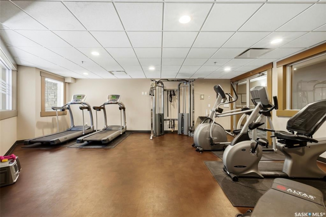 Welcome to this well-maintained 835 sq ft condo in the desirable Hillsdale neighborhood—just minutes from the University of Regina, Wascana Park, and downtown Regina. This bright 3rd-floor unit offers 2 bedrooms and 2 bathrooms, featuring 9' ceilings, granite countertops, and in-unit laundry for everyday convenience. The flexible second bedroom includes a Murphy bed—perfect for guests or a home office setup. Enjoy relaxing on the west-facing balcony with great natural light. The building includes an amenities room, exercise room, visitor parking, and the rare bonus of two underground parking stalls. A fantastic opportunity for students, professionals, or investors seeking a move-in ready property in a prime location.