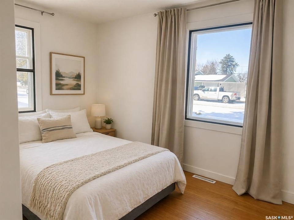 Welcome to this cozy and inviting 864 sq ft home nestled in the quiet community of Blaine Lake. Perfectly suited as a starter home or revenue property, this charming residence offers comfort, character, and great value. The main floor features a bright and airy layout with an abundance of natural light streaming through large windows. The living room and both bedrooms showcase original hardwood flooring, adding warmth and timeless appeal to the space. With two bedrooms and a full bathroom, the home offers a functional and comfortable floor plan for everyday living. The lower level includes laundry and provides ample storage space, adding to the home's practicality. Situated on a mature lot, the property offers a peaceful outdoor setting complete with a storage shed—ideal for tools and seasonal items. An excellent opportunity to step into home ownership or expand your investment portfolio in a welcoming small-town setting.