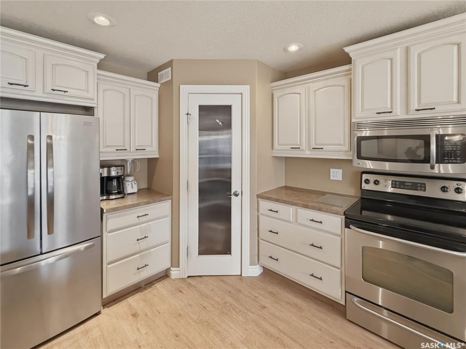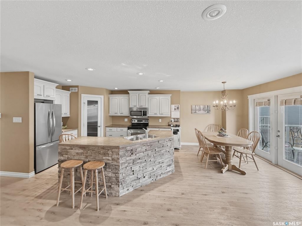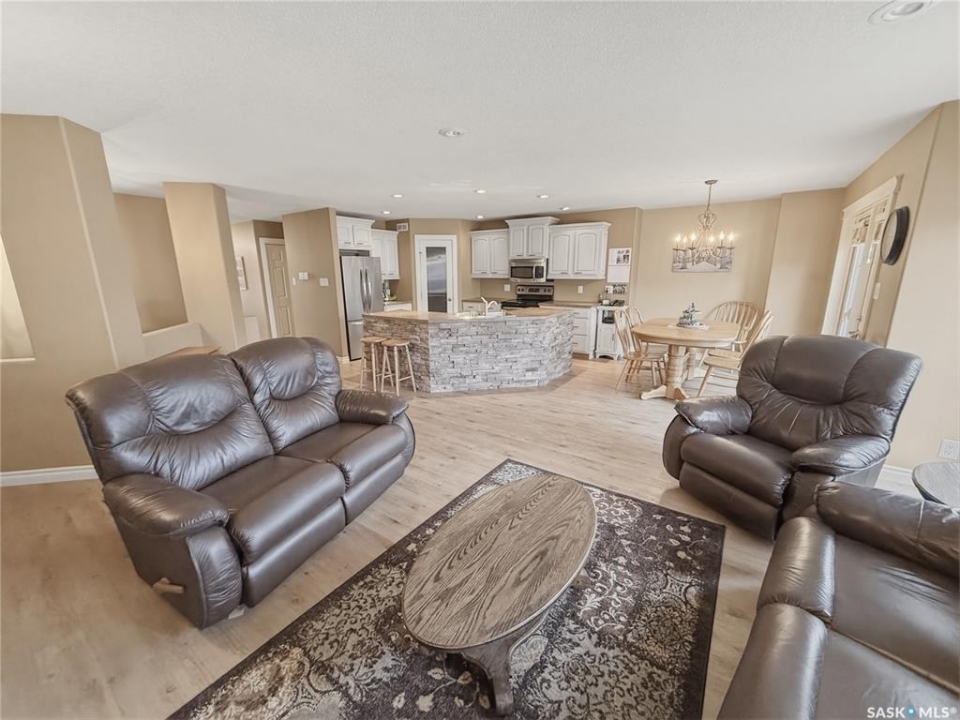 Looking for easy, stylish living in one of Swift Current's most sought-after neighbourhoods? This beautifully maintained bungalow-style condo in Meadow View Village Estates in Highland is one you won't want to miss. Offering 1,271 sq/ft of thoughtfully designed space, this north-facing unit is filled w natural light & warmth throughout. The welcoming front foyer features updated vinyl plank flooring, a charming den wnan arched doorway to the left, & direct access to the 21 x 22 attached garage on the right. Just down the hall, you'll find convenient main floor laundry tucked into one of three closets, along w a 2-piece powder room. The heart of the home is the open concept kitchen, dining, & living area, where large south-facing windows & a garden door create a bright & inviting atmosphere. Step out onto the composite deck, complete w natural gas BBQ hookup, perfect for relaxing or entertaining. The kitchen showcases creamy cabinetry, stainless steel appliances, a corner pantry, & a functional island w sink & attractive stone accents overlooking the living space. Recessed lighting adds to the modern feel. The spacious primary suite offers a large south window, a walk-in closet w built-ins, & a well-appointed 4-piece ensuite featuring a corner shower & tub. Shingles were new in 2025, offering added peace of mind. Downstairs, the fully developed lower level provides even more living space with a cozy family room, highlighted by a wet bar w stone accents on one end & a feature stone accented wall on the other. Two additional bedrooms (one w a large closet), a stunning 3-piece bath w a custom tiled double shower and bench, plus a storage/utility room complete the lower level. The electric fireplace in the living room is included, adding both comfort and ambiance. Condos like this don't often hit the market, making this a rare opportunity to enjoy low-maintenance condo living in a highly desirable location. Reach out today to book your personal tour.