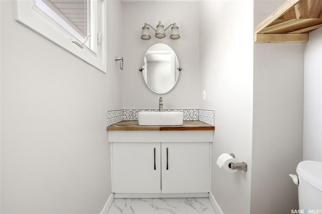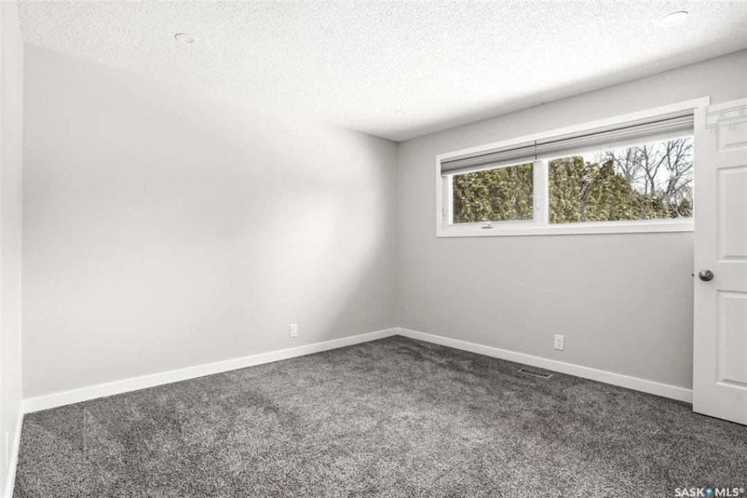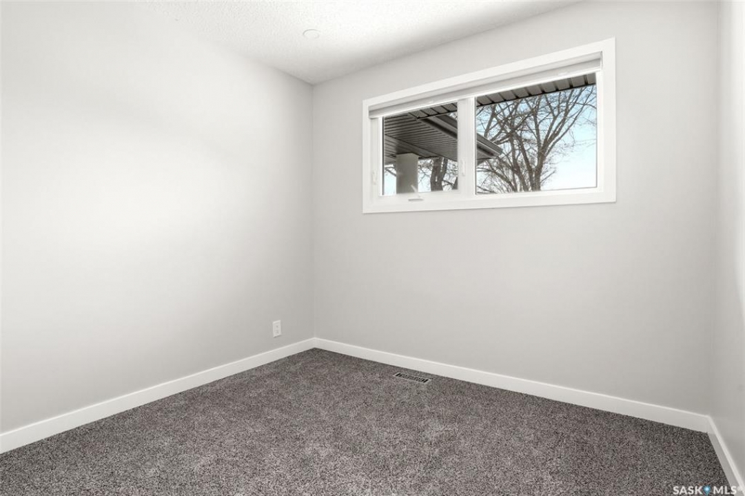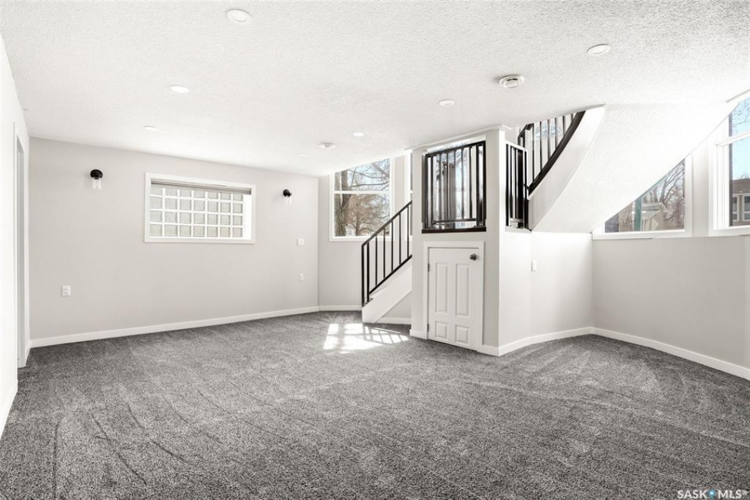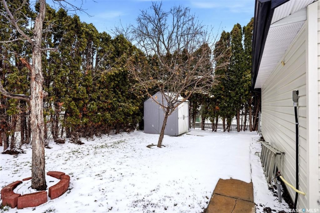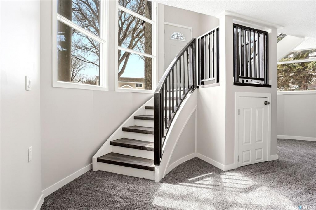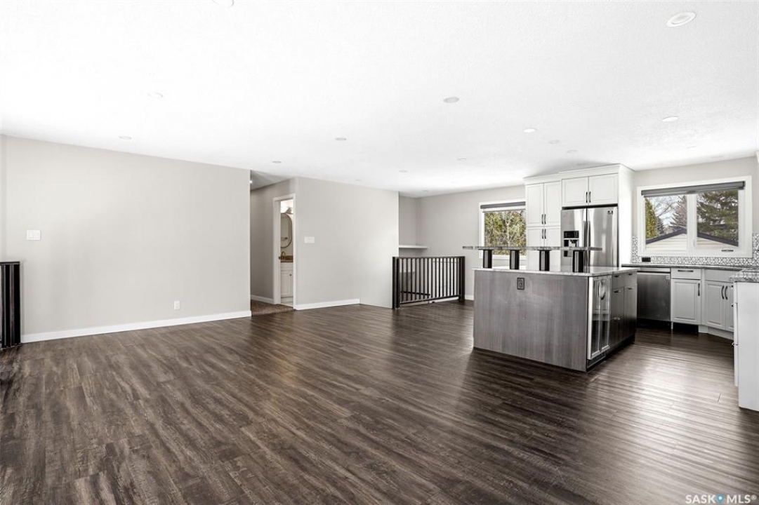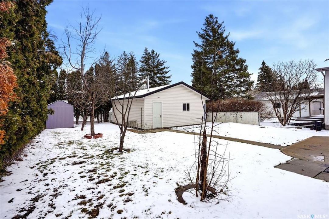 Amazing property located on a quiet bay in the mature neighbourhood of Walsh Acres. This beautifully updated home has been transformed into a modern, open-concept layout filled with natural light. The impressive foyer features dramatic two-storey windows and a striking curved staircase with custom metal railing. The main level has been opened up to create a spacious great room, complete with durable vinyl plank flooring throughout. The kitchen is both stylish and functional, offering white cabinetry, granite countertops, stainless steel appliances, tile backsplash, and a large 4' x 6' island with additional storage and pull-outs. A beverage fridge in the island is also included. Upstairs, you'll find three bedrooms. The primary bedroom includes a convenient two-piece ensuite with a newer countertop. The main bathroom has been refreshed with a granite-topped vanity and vinyl tile flooring. The fully renovated basement offers a bright and inviting space thanks to its large windows. The rec room features a stunning stacked stone feature wall, newer carpeting, and updated lighting. Two additional bedrooms with large windows and a beautifully finished bathroom—complete with a custom tiled shower and glass block accents—make this level ideal for family or guests. A newly added laundry room provides ample counter space, cabinetry, and extra storage. Additional updates include custom blinds (2022), new rubber shingles on the house (2023), new asphalt shingles on the garage (2023), and updated soffits and eaves. The double detached garage is fully insulated and equipped with a newer gas heater and electrical panel. Outside, the mature backyard offers a garden area, fruit trees, a walnut tree, and access to the garage via a paved lane. A newer double concrete driveway adds convenience at the front of the home. Close to schools and North end amenities. This move-in ready home truly has the WOW factor—don't miss your opportunity. Book your showing today!