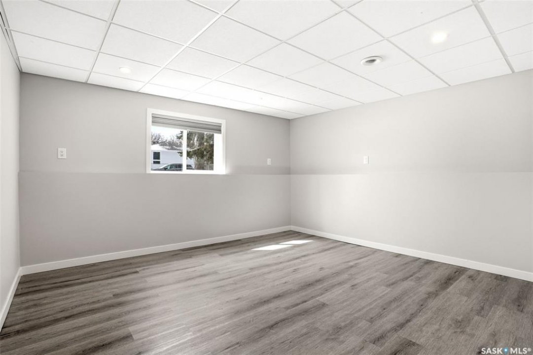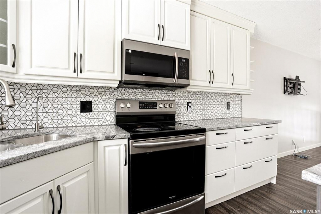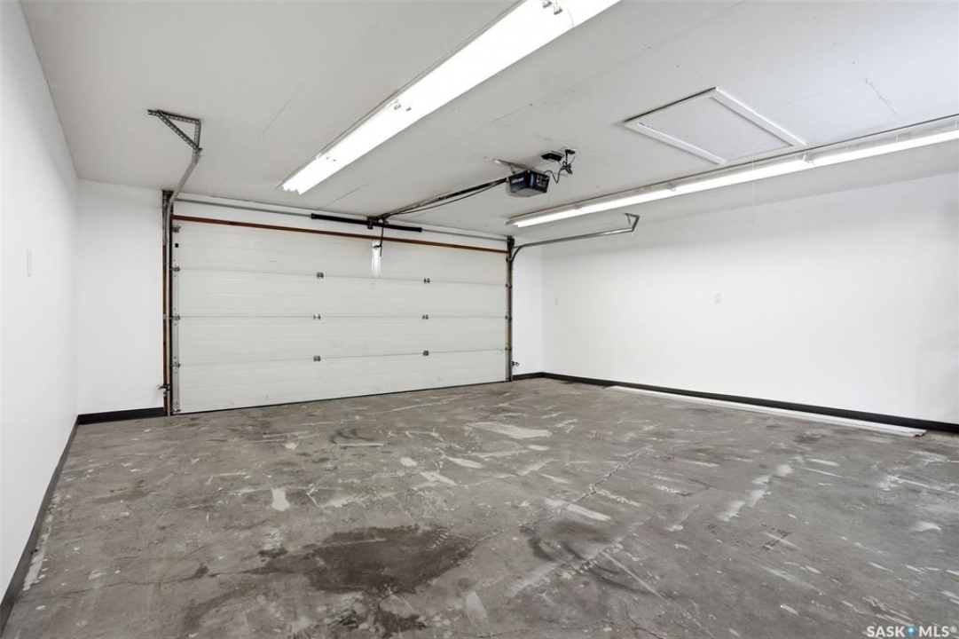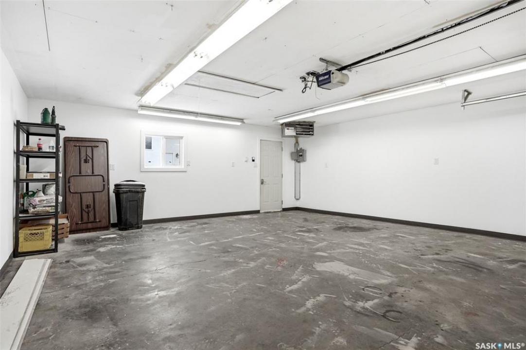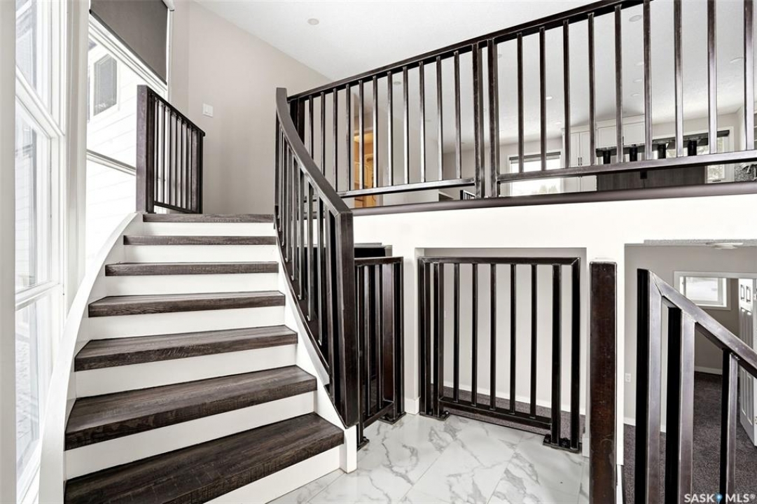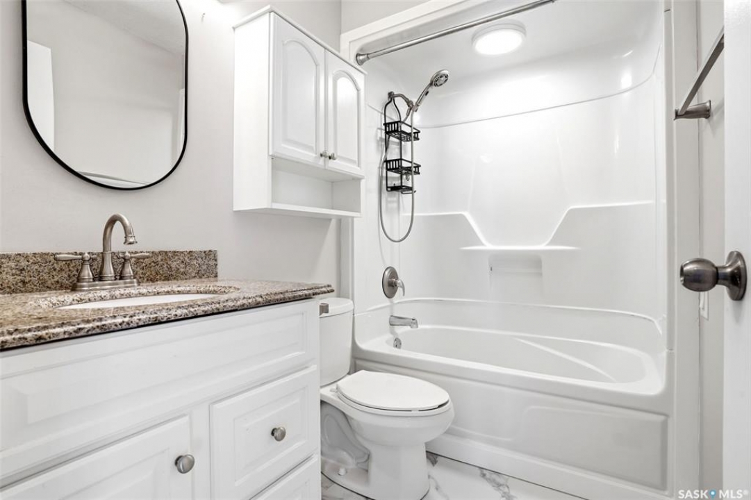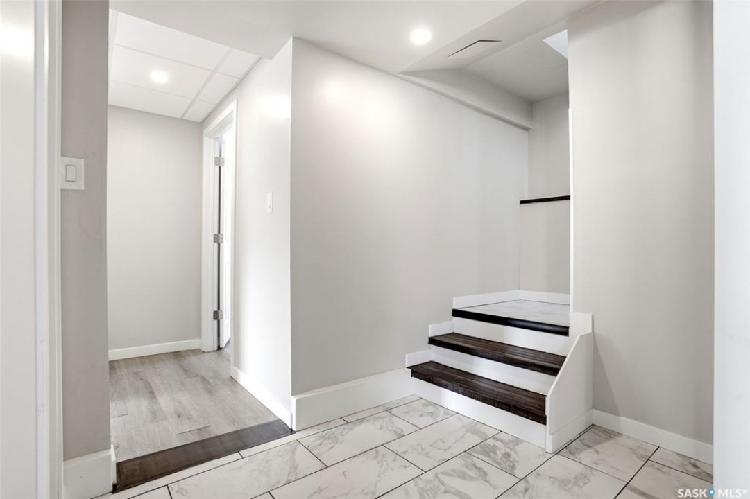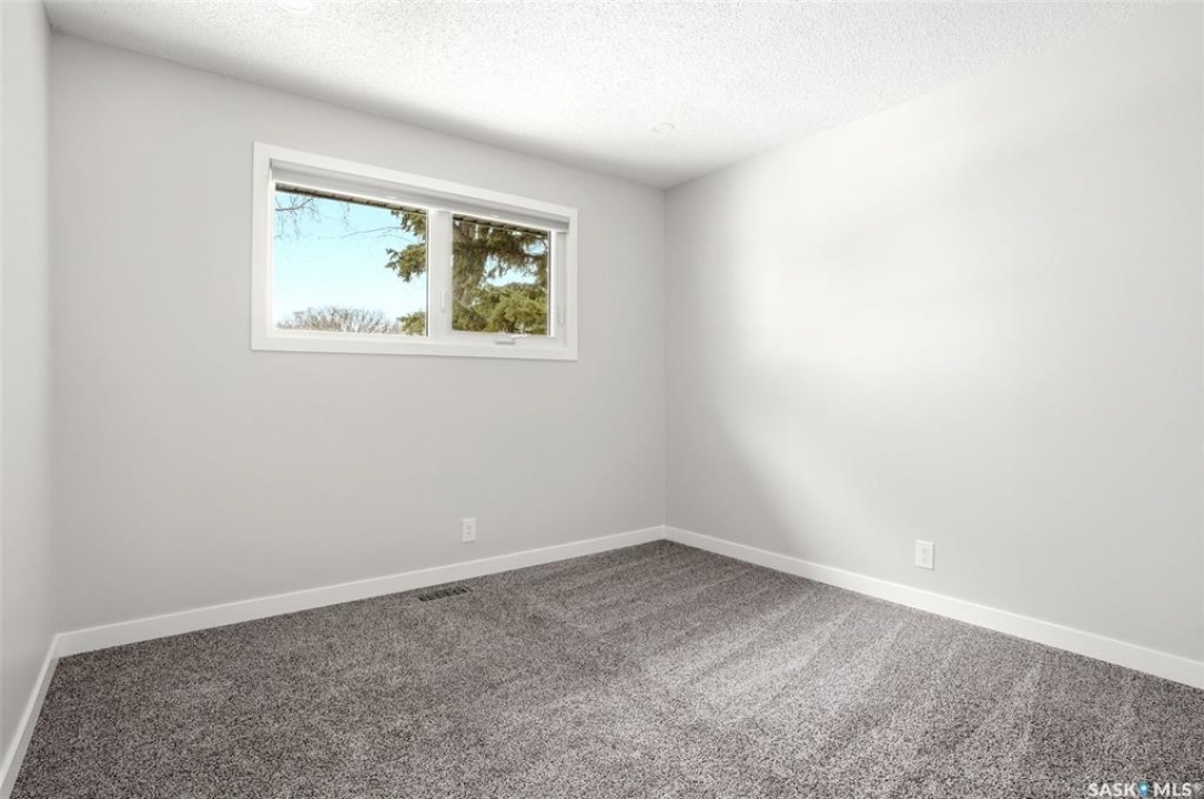 Amazing property located on a quiet bay in the mature neighbourhood of Walsh Acres. This beautifully updated home has been transformed into a modern, open-concept layout filled with natural light. The impressive foyer features dramatic two-storey windows and a striking curved staircase with custom metal railing. The main level has been opened up to create a spacious great room, complete with durable vinyl plank flooring throughout. The kitchen is both stylish and functional, offering white cabinetry, granite countertops, stainless steel appliances, tile backsplash, and a large 4' x 6' island with additional storage and pull-outs. A beverage fridge in the island is also included. Upstairs, you'll find three bedrooms. The primary bedroom includes a convenient two-piece ensuite with a newer countertop. The main bathroom has been refreshed with a granite-topped vanity and vinyl tile flooring. The fully renovated basement offers a bright and inviting space thanks to its large windows. The rec room features a stunning stacked stone feature wall, newer carpeting, and updated lighting. Two additional bedrooms with large windows and a beautifully finished bathroom—complete with a custom tiled shower and glass block accents—make this level ideal for family or guests. A newly added laundry room provides ample counter space, cabinetry, and extra storage. Additional updates include custom blinds (2022), new rubber shingles on the house (2023), new asphalt shingles on the garage (2023), and updated soffits and eaves. The double detached garage is fully insulated and equipped with a newer gas heater and electrical panel. Outside, the mature backyard offers a garden area, fruit trees, a walnut tree, and access to the garage via a paved lane. A newer double concrete driveway adds convenience at the front of the home. Close to schools and North end amenities. This move-in ready home truly has the WOW factor—don't miss your opportunity. Book your showing today!