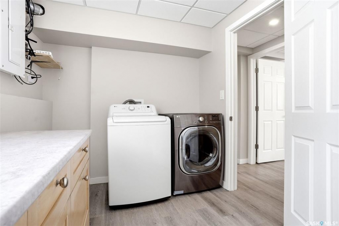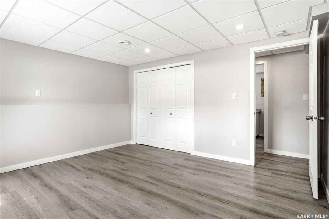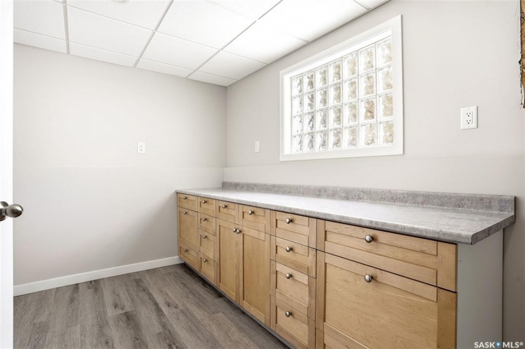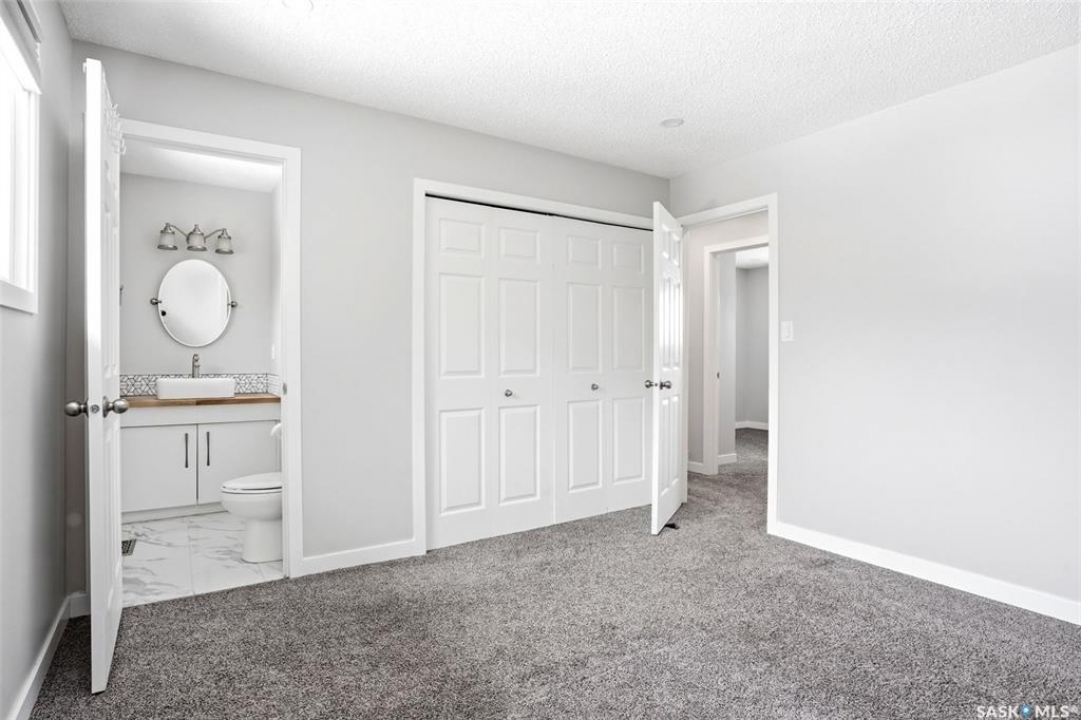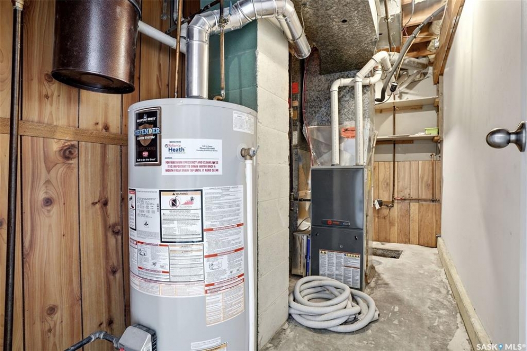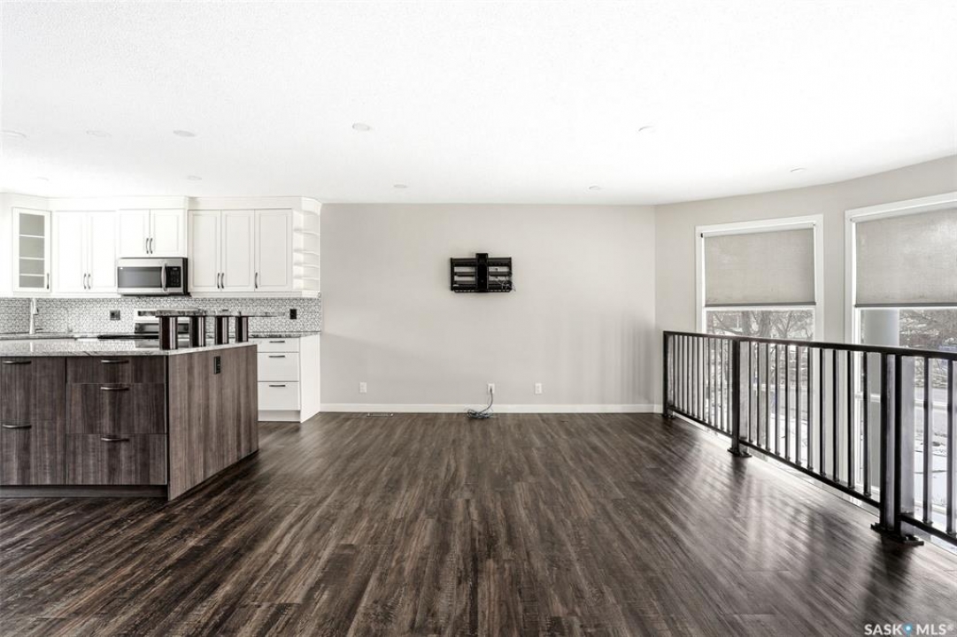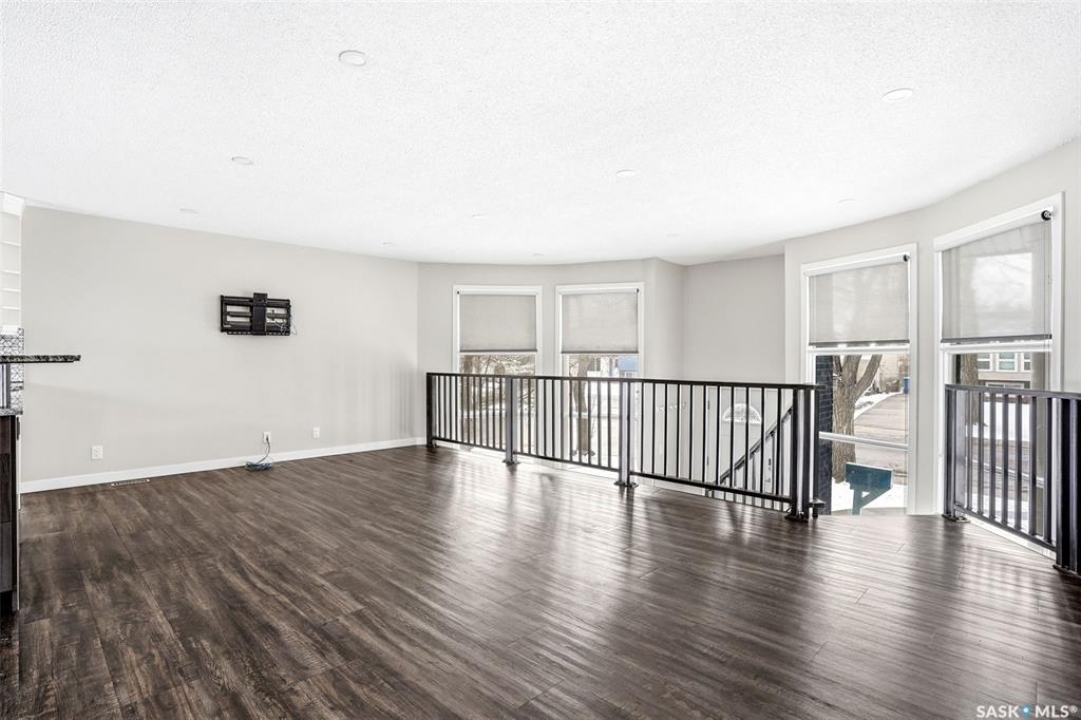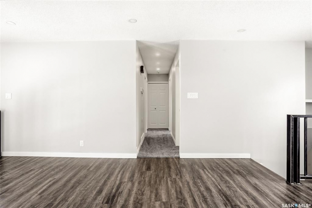 Amazing property located on a quiet bay in the mature neighbourhood of Walsh Acres. This beautifully updated home has been transformed into a modern, open-concept layout filled with natural light. The impressive foyer features dramatic two-storey windows and a striking curved staircase with custom metal railing. The main level has been opened up to create a spacious great room, complete with durable vinyl plank flooring throughout. The kitchen is both stylish and functional, offering white cabinetry, granite countertops, stainless steel appliances, tile backsplash, and a large 4' x 6' island with additional storage and pull-outs. A beverage fridge in the island is also included. Upstairs, you'll find three bedrooms. The primary bedroom includes a convenient two-piece ensuite with a newer countertop. The main bathroom has been refreshed with a granite-topped vanity and vinyl tile flooring. The fully renovated basement offers a bright and inviting space thanks to its large windows. The rec room features a stunning stacked stone feature wall, newer carpeting, and updated lighting. Two additional bedrooms with large windows and a beautifully finished bathroom—complete with a custom tiled shower and glass block accents—make this level ideal for family or guests. A newly added laundry room provides ample counter space, cabinetry, and extra storage. Additional updates include custom blinds (2022), new rubber shingles on the house (2023), new asphalt shingles on the garage (2023), and updated soffits and eaves. The double detached garage is fully insulated and equipped with a newer gas heater and electrical panel. Outside, the mature backyard offers a garden area, fruit trees, a walnut tree, and access to the garage via a paved lane. A newer double concrete driveway adds convenience at the front of the home. Close to schools and North end amenities. This move-in ready home truly has the WOW factor—don't miss your opportunity. Book your showing today!