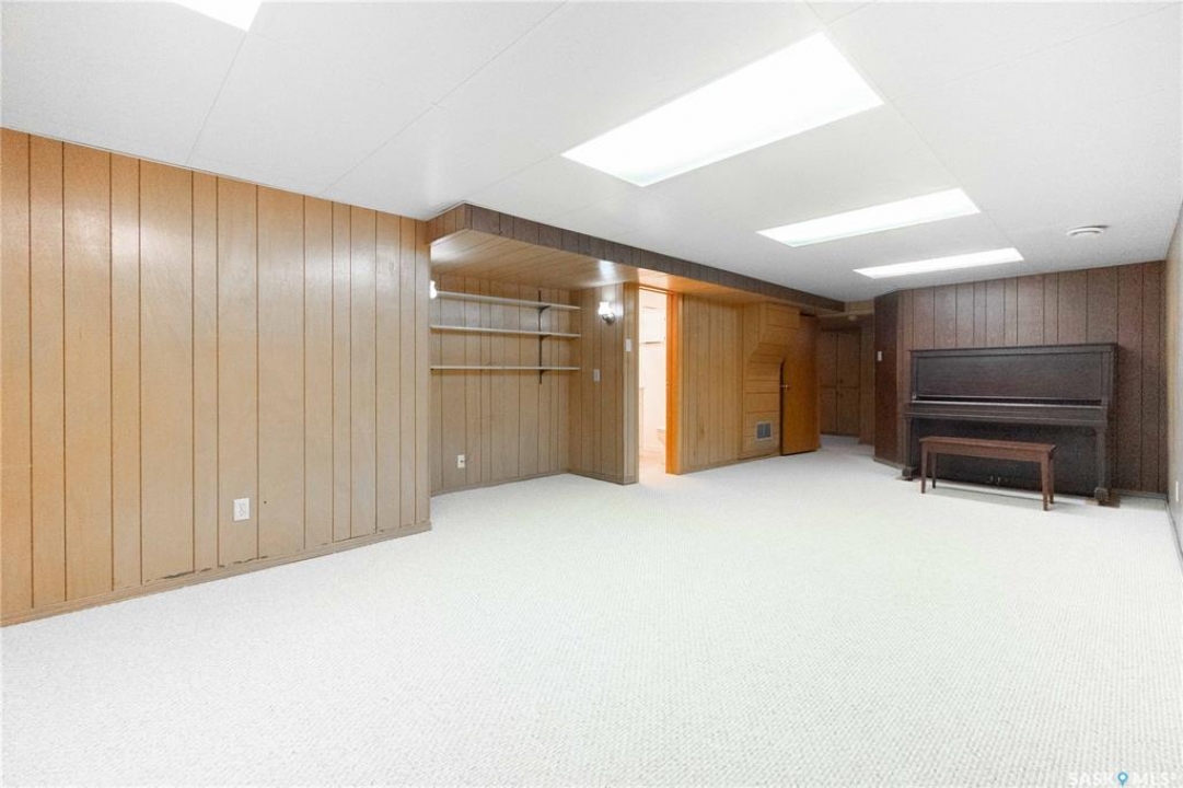 Located in the quiet, established subdivision of Whitmore Park, on a low traffic street. This 1040 sq ft 3 bedroom bungalow will make a great family home. Mirrored front closet doors and a wainscoting feature wall leading to a bright and inviting living room/dining room area. Kitchen features lots of oak cabinets, a sunshine ceiling, built in dishwasher, garburator fridge and stove included. 3 bedrooms up, 4 piece bath, all window treatments included. Large basement rec room or family room, den, playroom and 2 piece bath down. Tons of storage in basement, washer and dryer included. Updated triple glazed windows throughout, sewer replaced in 2023, exposed aggregate driveway, walk ways and front step. Piano in basement stays, storage shed included.