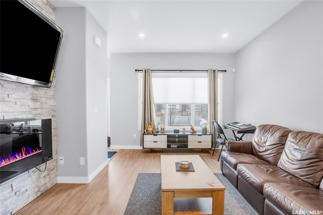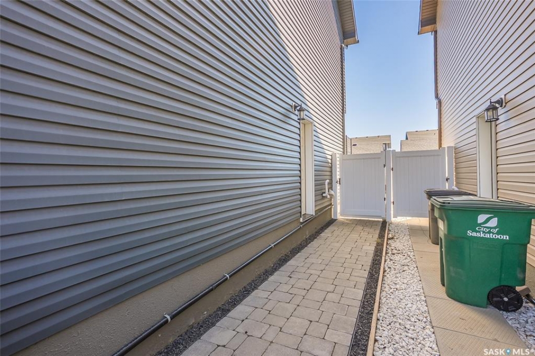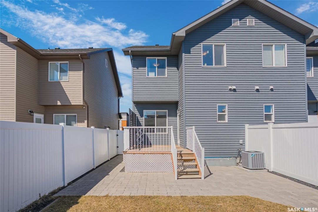 Experience the perfect harmony of style and substance in this impeccably maintained two-storey semi-detached home. Nestled in the heart of Saskatoon's most energetic community, this Brighton gem offers 1,363 square feet of thoughtfully designed living space where every detail feels like home. The main floor is a masterclass in modern open-concept living. Bathed in natural light, the kitchen serves as the ultimate focal point, boasting sleek quartz countertops, custom cabinetry, and premium stainless steel appliances. Whether you're prepping a quick weeknight meal or hosting friends for the weekend, the oversized island provides the perfect stage for gathering and effortless conversations. The upper level is where comfort meets everyday convenience. The spacious primary features a generous walk-in closet and a 4-piece ensuite. On this Floor You also find 2 additional well-appointed bedrooms sharing a stylish 4-piece bathroom, while the dedicated second-floor laundry room makes daily chores feel completely effortless. The living space extends outdoors to a fully landscaped backyard oasis. Imagine summer BBQs on the large deck, lounging on the brick patio, or enjoying the lush green lawn. For those who value storage and workspace, the double detached garage comes fully insulated and drywalled, ready for the Saskatchewan winter. Beyond the property lines, you'll find a lifestyle of unmatched convenience. You are just steps away from school bus stops and public transit, and a short stroll brings you to the vibrant Brighton Marketplace, Timmies, Gas Station, Landmark Cinemas & Much More. This property also offers the option for a legal basement suite with potential eligibility for SECONDARY SUITE INSENTIVE grant—an incredible opportunity to generate additional income. Call Today to Book a Viewing - BEFORE it's SOLD !