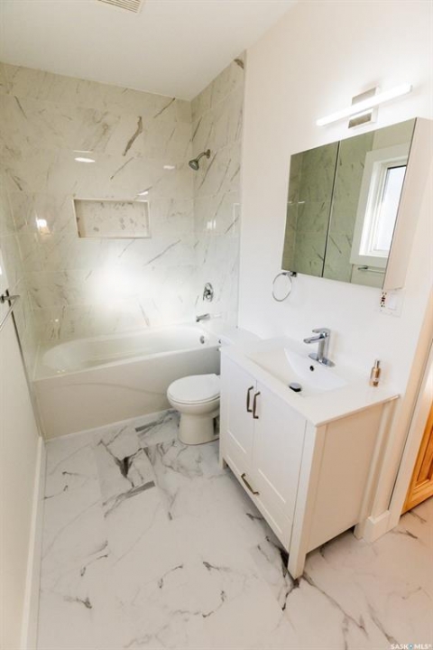Beautifully renovated 3-bedroom home offering a bright and inviting living space with extensive updates. The home features two recently completed bathrooms (approximately $11,000 and $12,000), fresh paint in the living room and bedrooms, and new carpet on the stairs and second-level bedrooms. Additional highlights include main floor laundry, central A/C, and patio doors leading to a gorgeous back deck. The exterior has been significantly enhanced with updated stucco (2024), a newly built back deck (2024), and recently painted garage exterior and the house trim, creating excellent curb appeal and functional outdoor living space. Additional improvements include premium Malarkey shingle roof (2020). The home was relocated onto a new concrete basement in 1997, offering a solid, insulated foundation. The lower level remains open and unfinished, (except for the new 3 pc. bath),providing excellent potential for future development to suit your needs. With over $65,000 in recent upgrades, this property offers comfort, functionality, and strong overall value. See supplements for a list of improvements and dates.