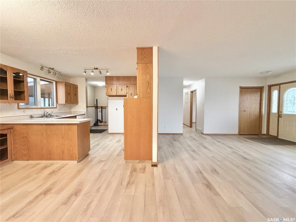 Great location!! This 1,275 sq ft family home is situated on a large 100 ft x 120 ft lot, ideally located close to schools in Outlook, SK. The main floor features fresh paint in the living areas, new laminate flooring throughout, updated receptacle and duct covers, and some new light fixtures, giving the space a clean, refreshed feel. You'll also find main floor laundry hookups and a spacious primary bedroom with a 2-piece ensuite. Mechanical features include a high-efficiency furnace, power vent water heater, central air conditioning, and central vacuum for everyday comfort. Outside, there's plenty of room for family living with a covered, screened-in back deck, chain link fenced yard, and RV parking. The double concrete driveway and extra spacious double attached garage with a small workshop area add even more functionality. Located in Outlook, SK, a welcoming community with schools, parks, and amenities, this property offers great space for a growing family with room to make it your own.