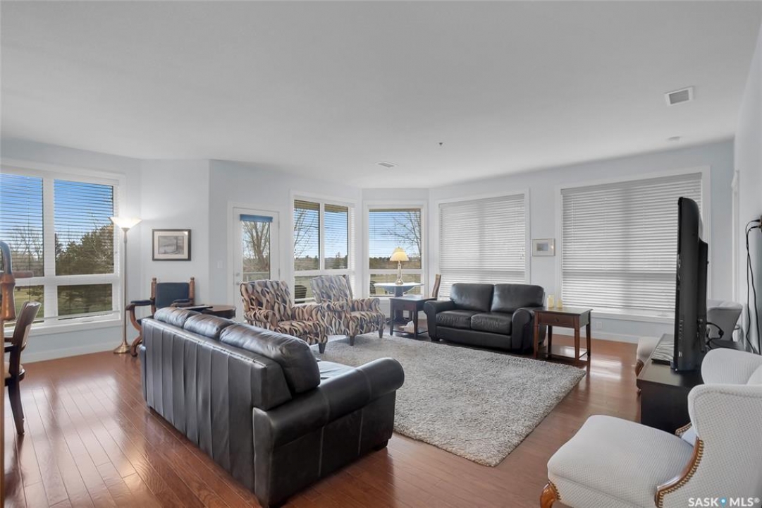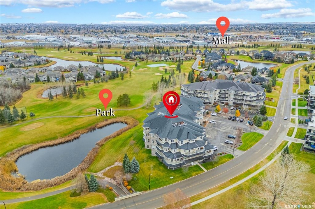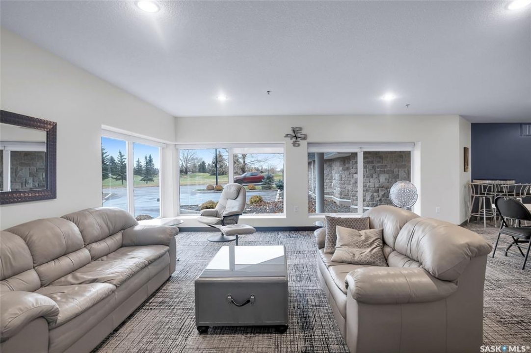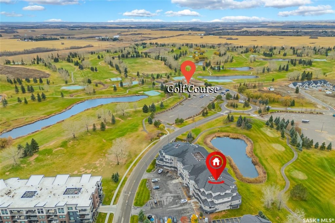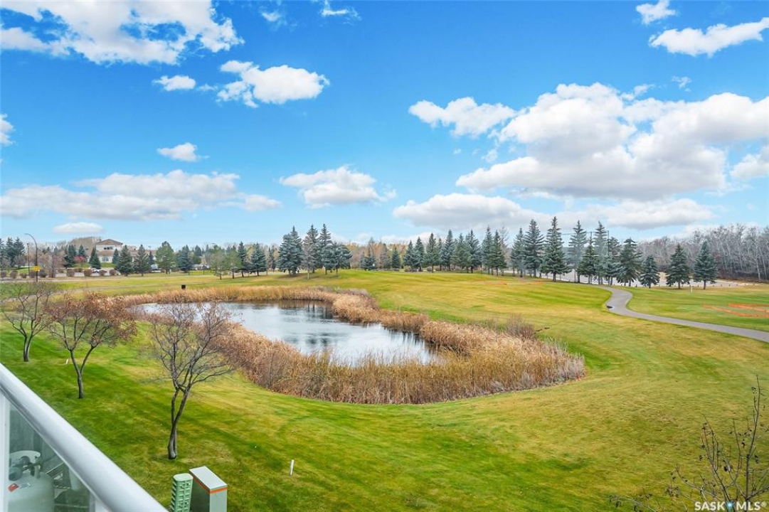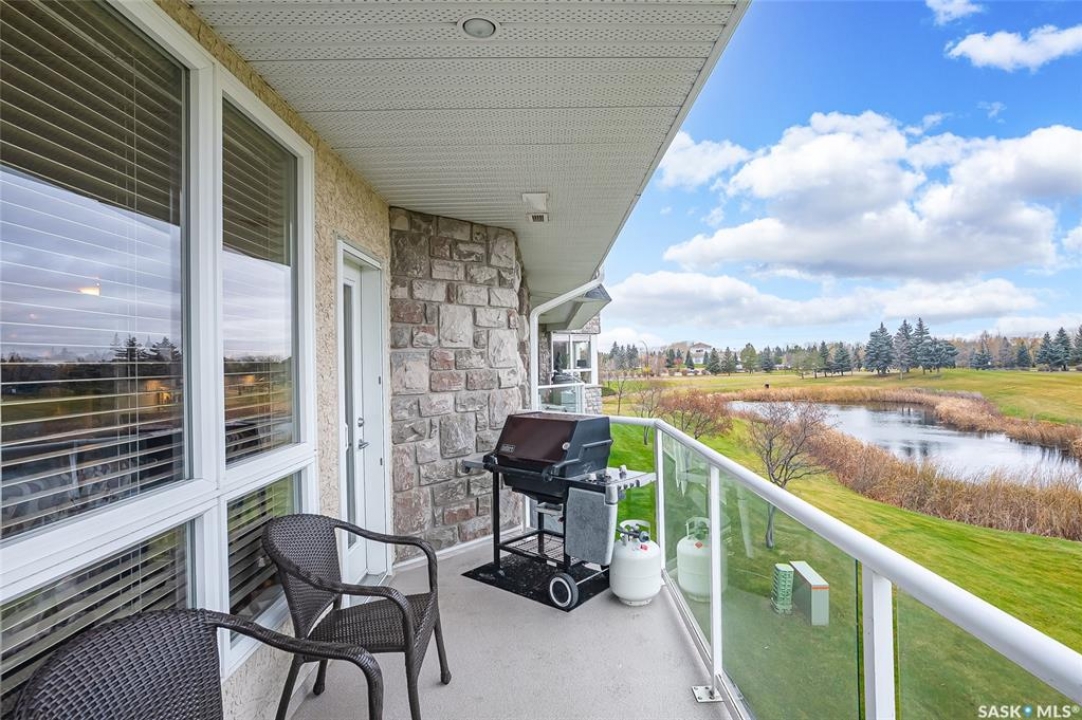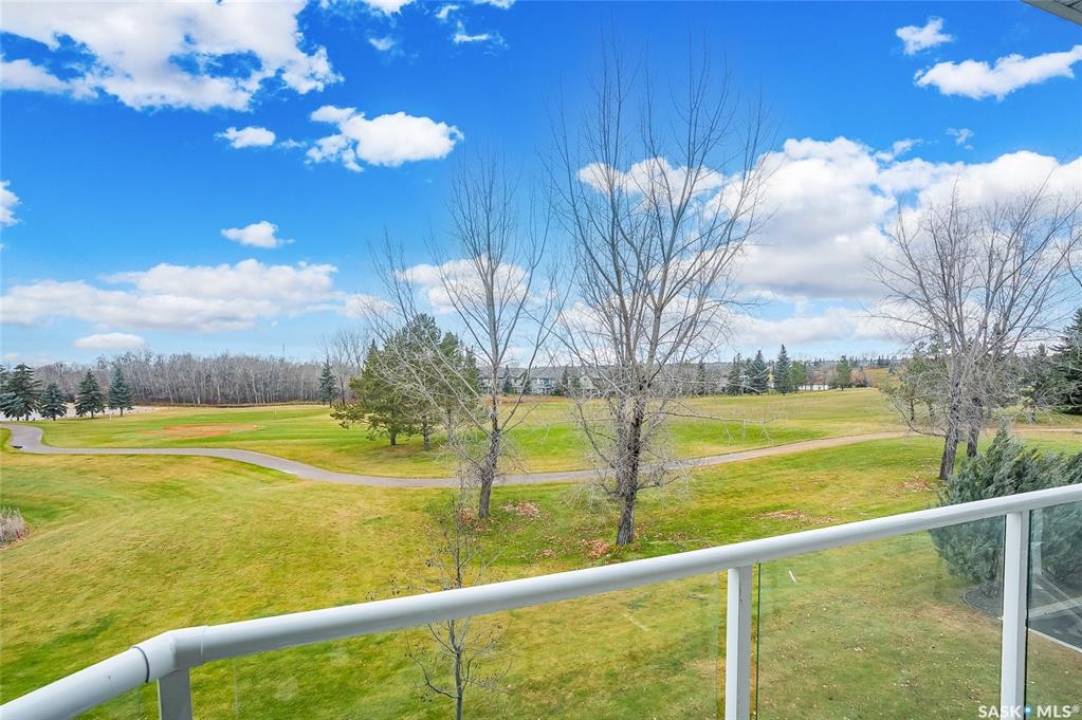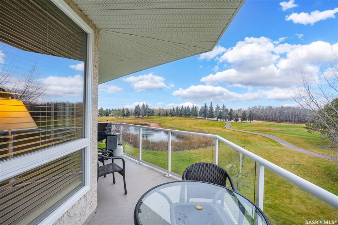 Stunning golf course views await you in this exceptional one owner condo unit. The open floor plan boasts an abundance of natural light pouring in through the numerous windows, showcasing the breathtaking scenery outside. Soaring nine foot ceilings add to the sense of spaciousness, creating an ideal atmosphere for entertaining and relaxation. The gourmet kitchen is equipped with high-quality cabinets, sleek granite countertops, and stainless steel appliances, including a newer refrigerator. The adjacent dining room features custom-designed cabinets, complete with a built-in wine fridge, bar fridge, and sink, perfect for hosting friends and family. Five piece ensuite bath offers his and hers sinks, and a walk-in closet. Step out onto the expansive wrap-around balcony, where you can soak in the panoramic golf course views and enjoy the fresh air. This condo unit also comes with a range of desirable amenities, including an exercise room, amenity room, and a spacious storage locker. Parking is convenient, with one heated underground stall, and one surface stall, as well as a wash bay for washing your vehicle. Visitors will appreciate the abundance of parking options available. Well managed building with recent improvements which include new shingles, eavestroughs, down spouts, and complete interior new paint. Don't miss this incredible opportunity to own a piece of golf course paradise!