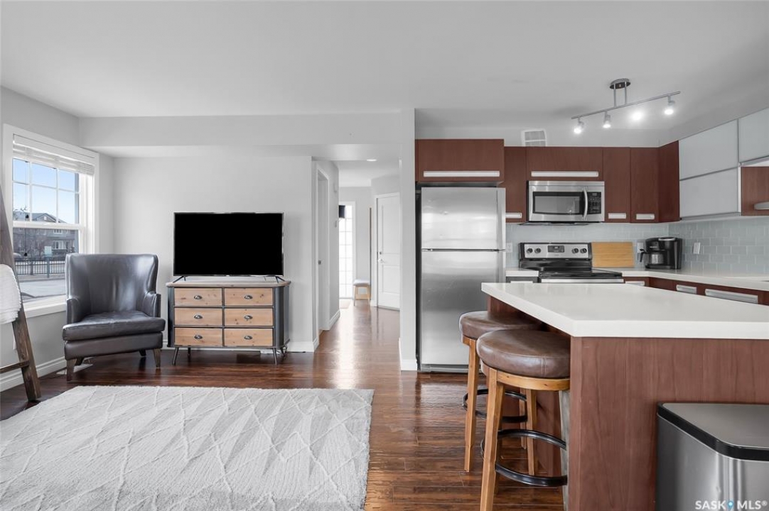 Welcome to this beautifully maintained corner, end-unit townhouse in Stonebridge, ideally positioned in a quiet, desirable spot within the complex. With south-facing exposure and extra windows throughout, this home is filled with natural light and feels bright and inviting from the moment you walk in. The main floor offers a functional open-concept layout with a modern kitchen featuring quartz countertops, an island, and plenty of cabinetry, flowing seamlessly into the dining and living areas—perfect for everyday living or hosting. Upstairs, you'll find three spacious bedrooms, including a primary bedroom with a walk-in closet and convenient access to the main bathroom. The layout is practical and family-friendly, with great space for growing families or guests. The fully developed basement adds even more versatility, complete with a beautiful walk-in shower and a Murphy bed that will remain, making it an ideal setup for guests, a home office, or a multi-use space. Additional features include central air conditioning, an attached single garage with direct entry, and visitor parking conveniently located just steps from the unit. Located close to parks, walking paths, schools, and all the amenities Stonebridge has to offer, this is a fantastic opportunity to own a well-cared-for home in a prime location. Presentation of offers: Thursday, April 30 at 4:00 PM.