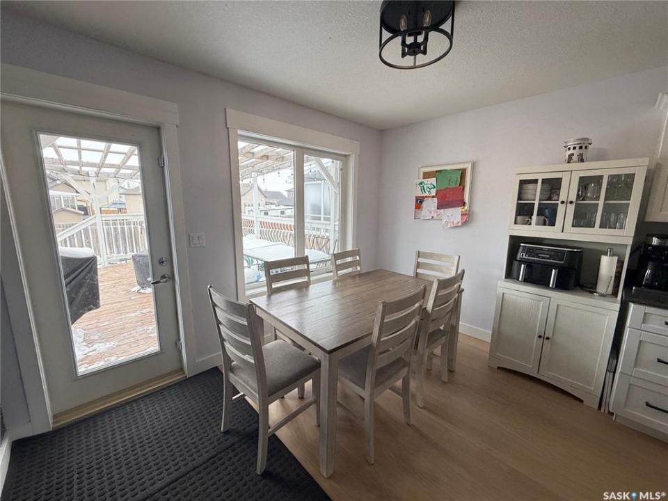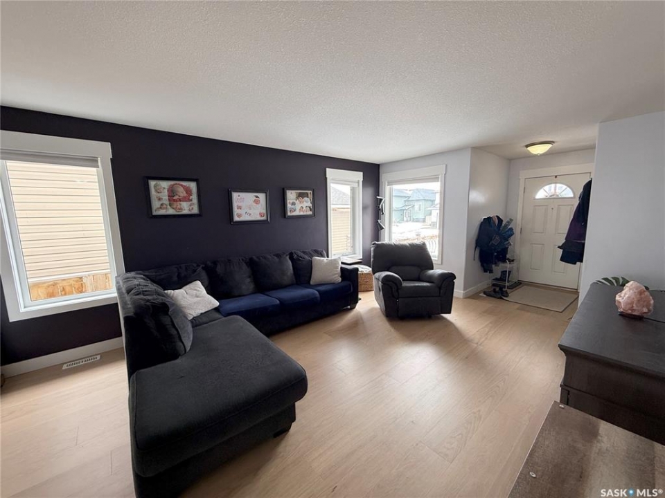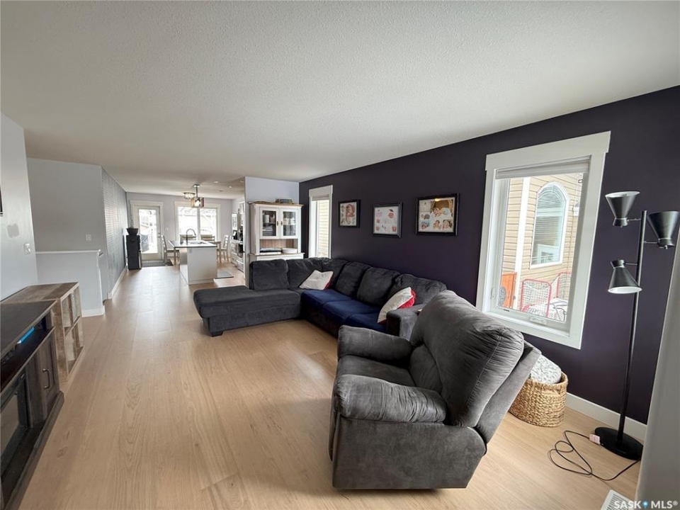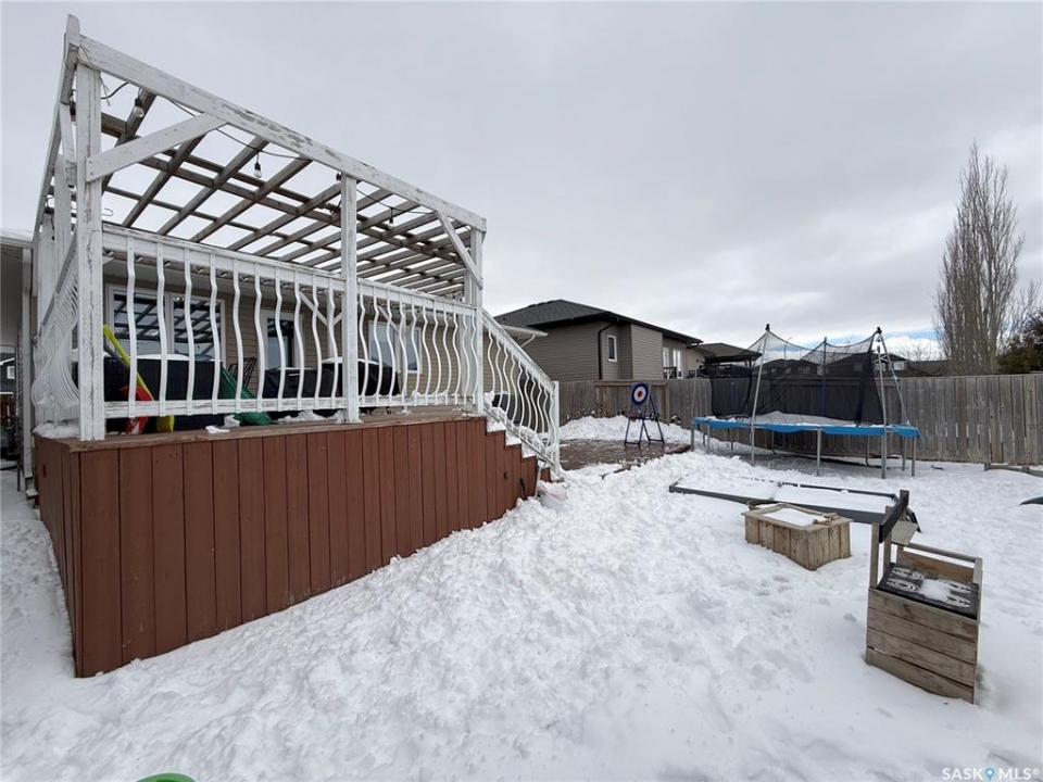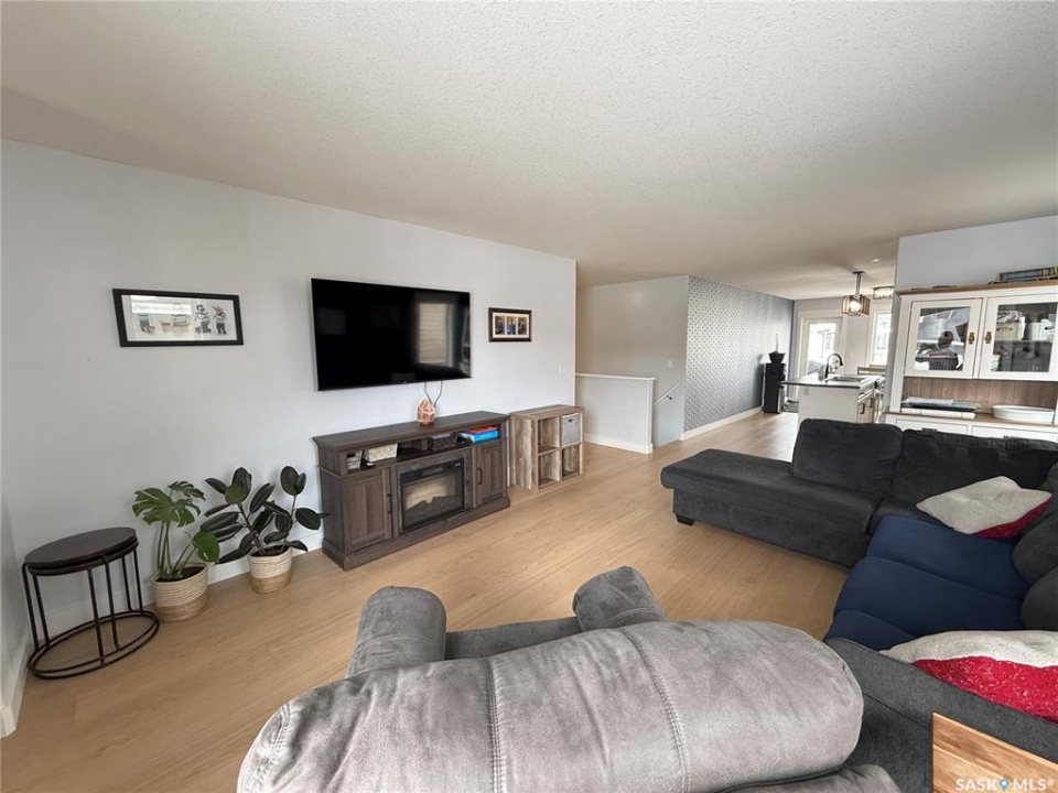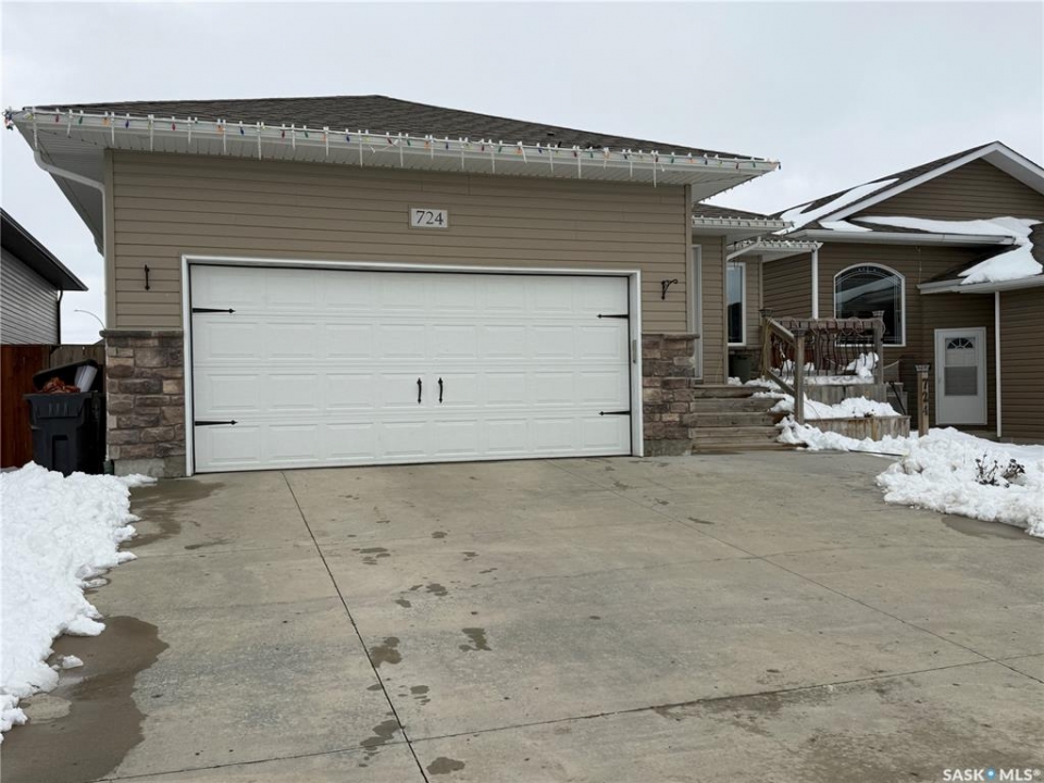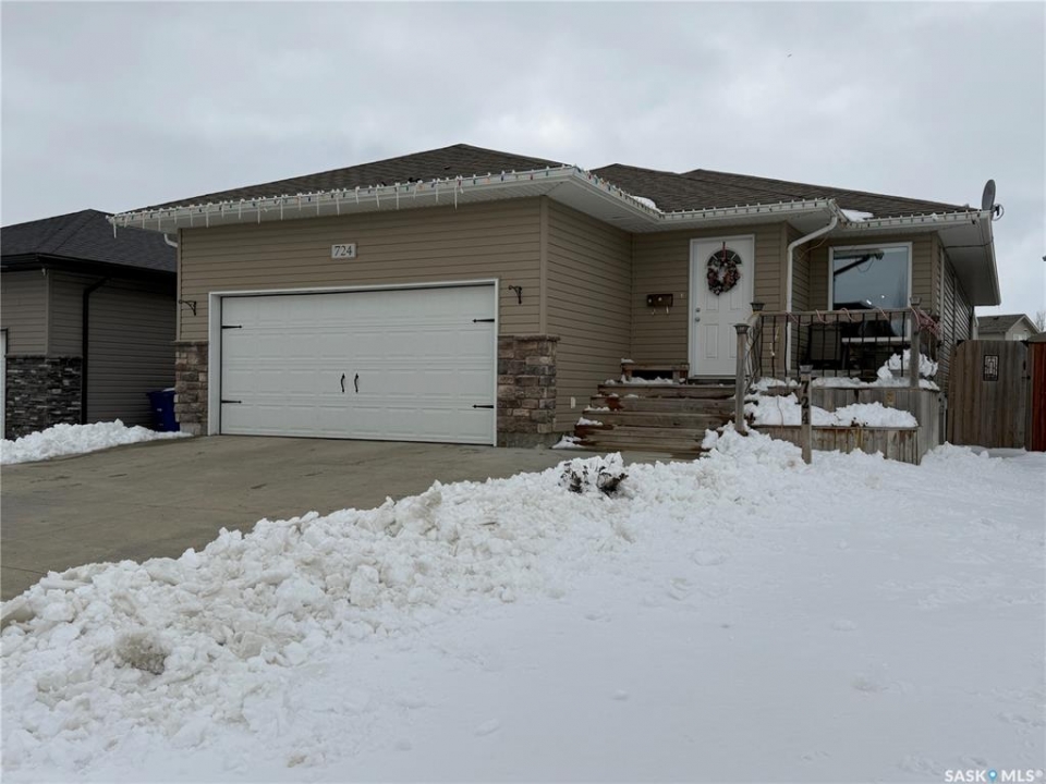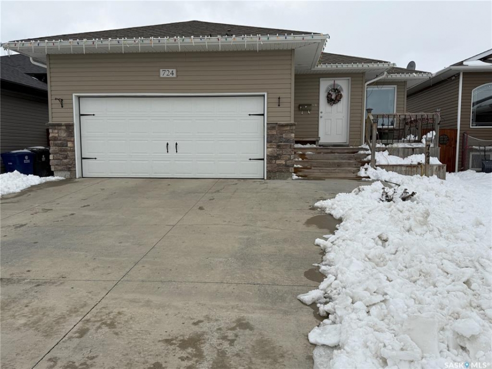 Welcome to 724 Quessy Drive! Excellent family home close to schools in Martensville. 1282 sq ft bungalow completely finished from top to bottom. East facing front deck welcomes you home. Once inside, you will find a spacious living room at the front of the house with lots of natural light from 3 windows. Engineered hardwood floors run from the living room right through into the kitchen and dining room. The dining room overlooks the back yard that has a 2 tiered deck, fire pit area, storage shed and large yard. 3 good sized bedrooms, the primary having a walk in closet and 4 piece en suite. An additional 4 piece bath and main floor laundry complete the main floor. Basement is finished with a large family room, 2 additional bedrooms, 3 piece bath and large mechanical room. Upgrades in 2025 include flooring and water tank. Double attached garage with direct entry. Triple driveway plus alley access! Offers presented Thursday April 30 at 5PM
