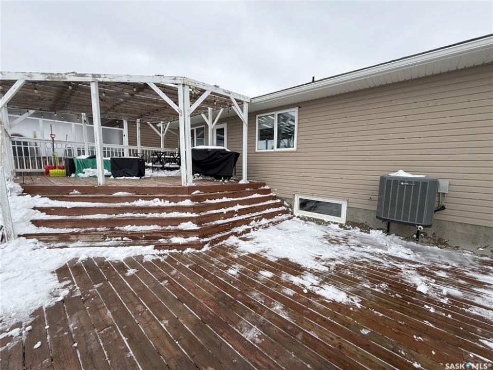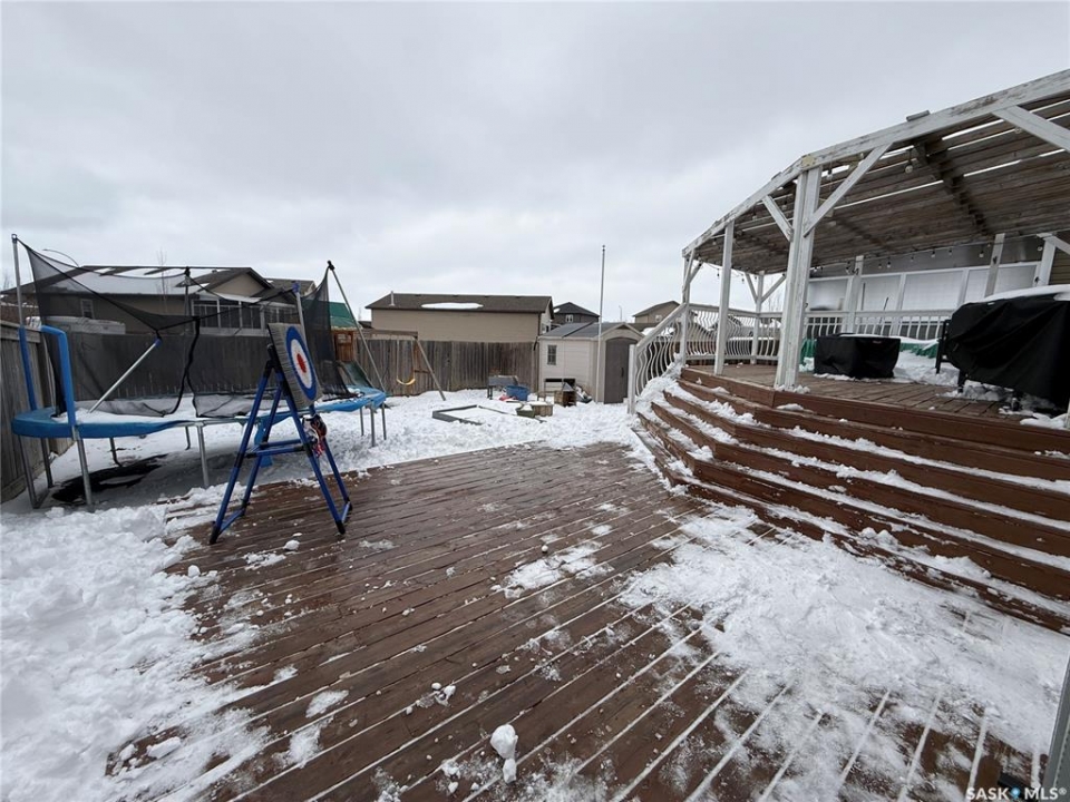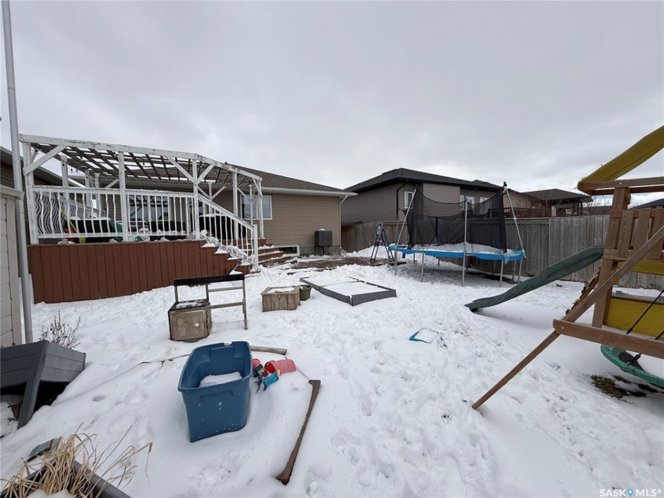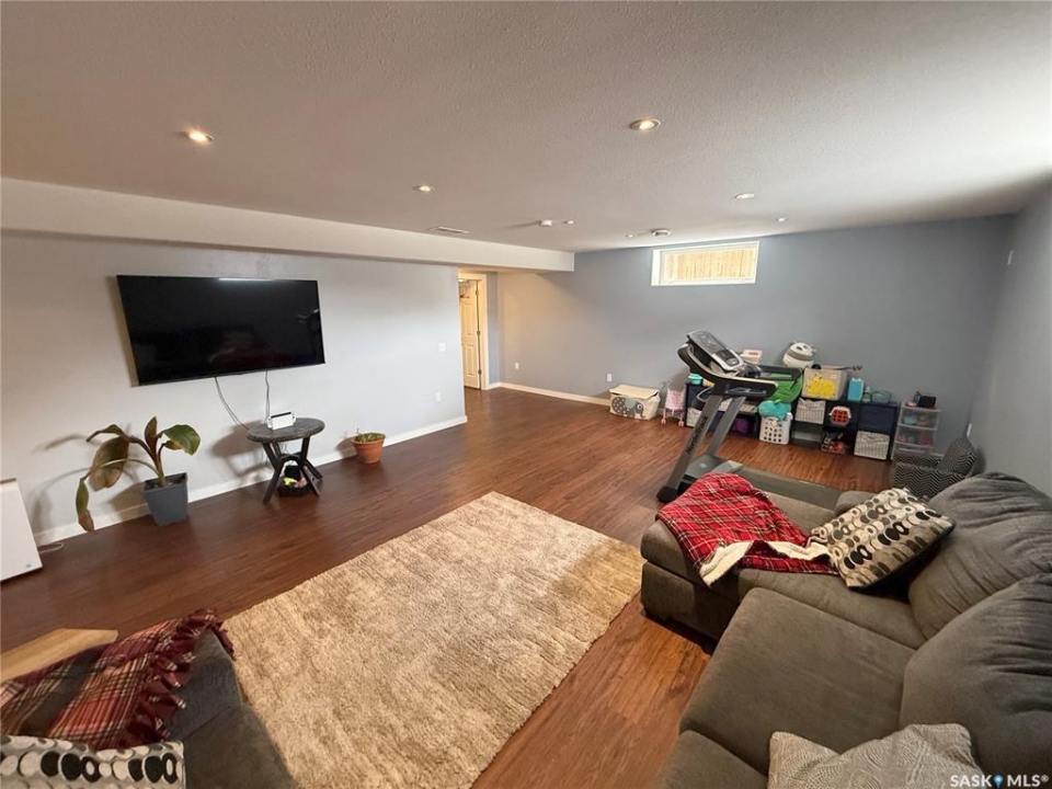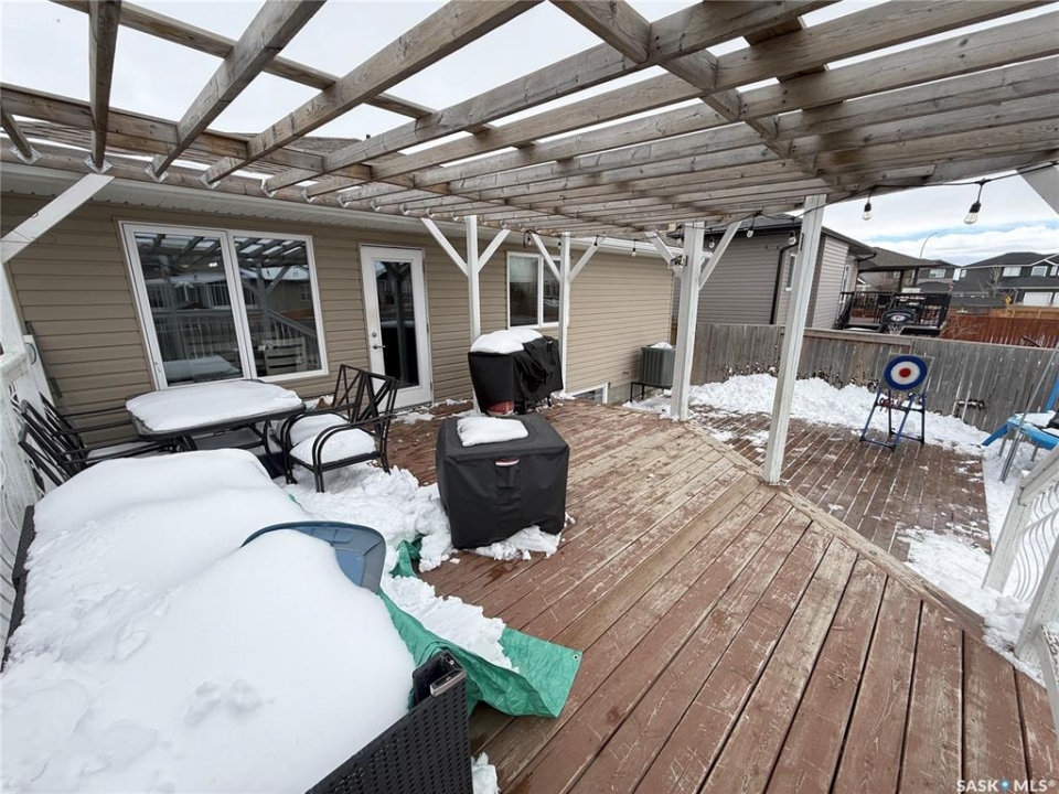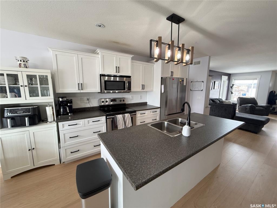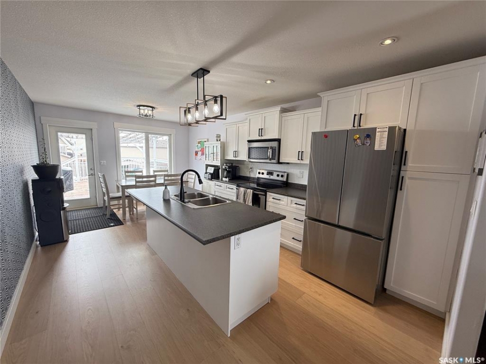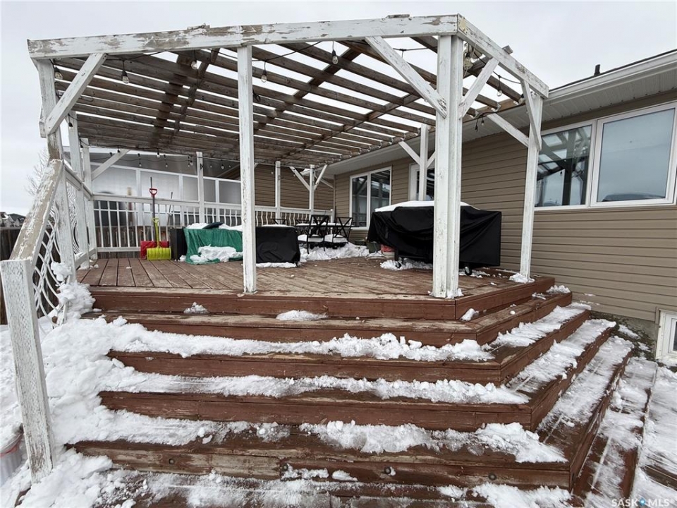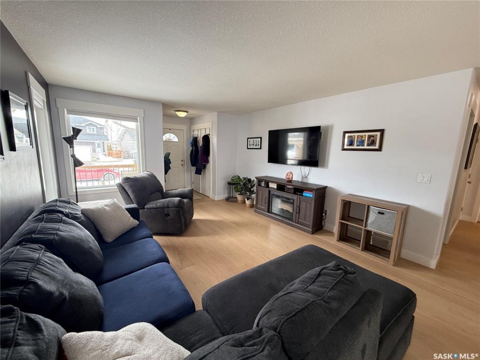 Welcome to 724 Quessy Drive! Excellent family home close to schools in Martensville. 1282 sq ft bungalow completely finished from top to bottom. East facing front deck welcomes you home. Once inside, you will find a spacious living room at the front of the house with lots of natural light from 3 windows. Engineered hardwood floors run from the living room right through into the kitchen and dining room. The dining room overlooks the back yard that has a 2 tiered deck, fire pit area, storage shed and large yard. 3 good sized bedrooms, the primary having a walk in closet and 4 piece en suite. An additional 4 piece bath and main floor laundry complete the main floor. Basement is finished with a large family room, 2 additional bedrooms, 3 piece bath and large mechanical room. Upgrades in 2025 include flooring and water tank. Double attached garage with direct entry. Triple driveway plus alley access! Offers presented Thursday April 30 at 5PM