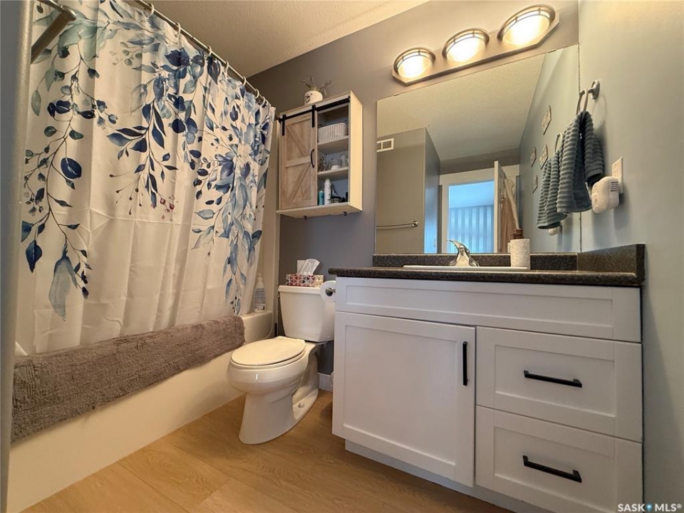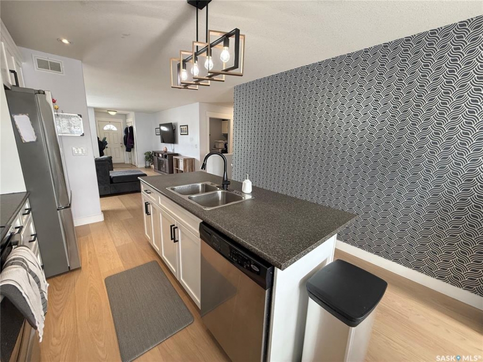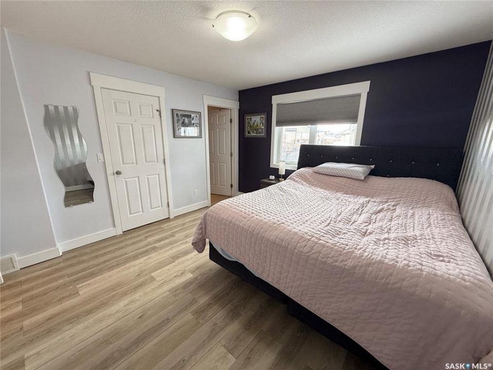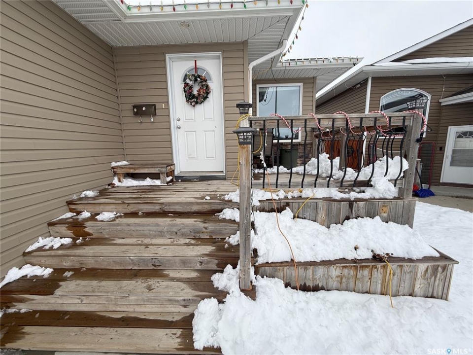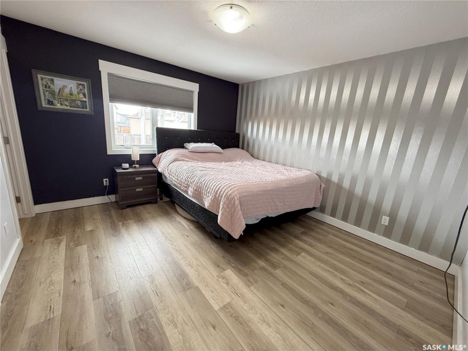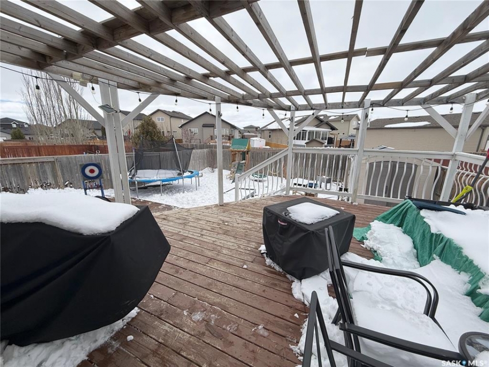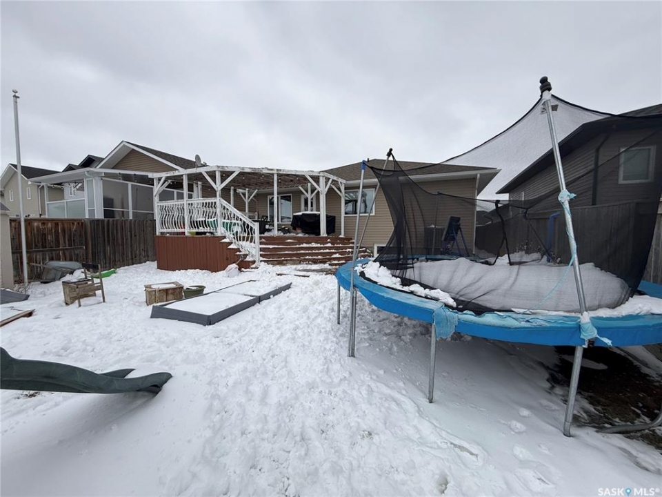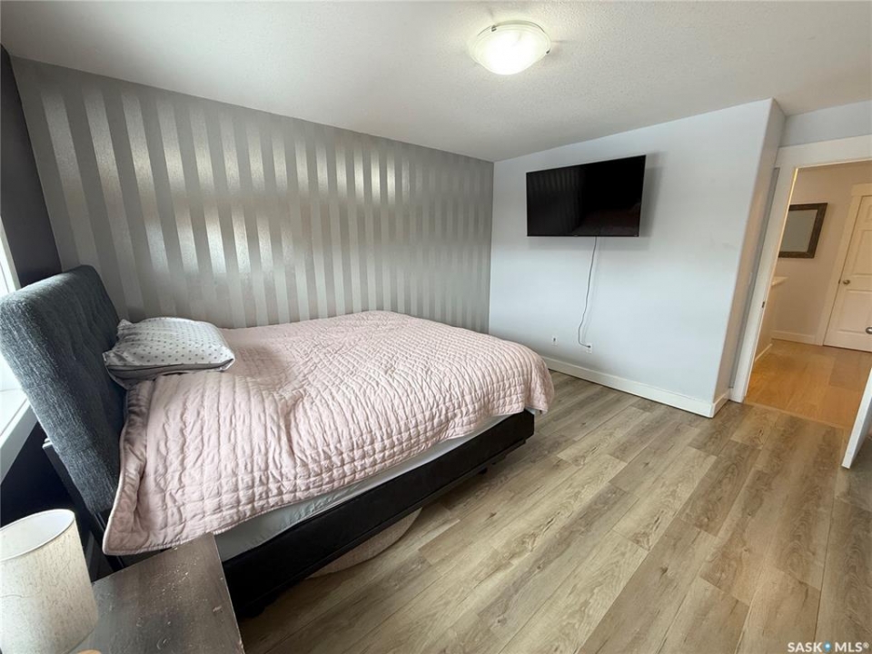 Welcome to 724 Quessy Drive! Excellent family home close to schools in Martensville. 1282 sq ft bungalow completely finished from top to bottom. East facing front deck welcomes you home. Once inside, you will find a spacious living room at the front of the house with lots of natural light from 3 windows. Engineered hardwood floors run from the living room right through into the kitchen and dining room. The dining room overlooks the back yard that has a 2 tiered deck, fire pit area, storage shed and large yard. 3 good sized bedrooms, the primary having a walk in closet and 4 piece en suite. An additional 4 piece bath and main floor laundry complete the main floor. Basement is finished with a large family room, 2 additional bedrooms, 3 piece bath and large mechanical room. Upgrades in 2025 include flooring and water tank. Double attached garage with direct entry. Triple driveway plus alley access! Offers presented Thursday April 30 at 5PM