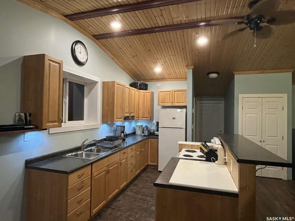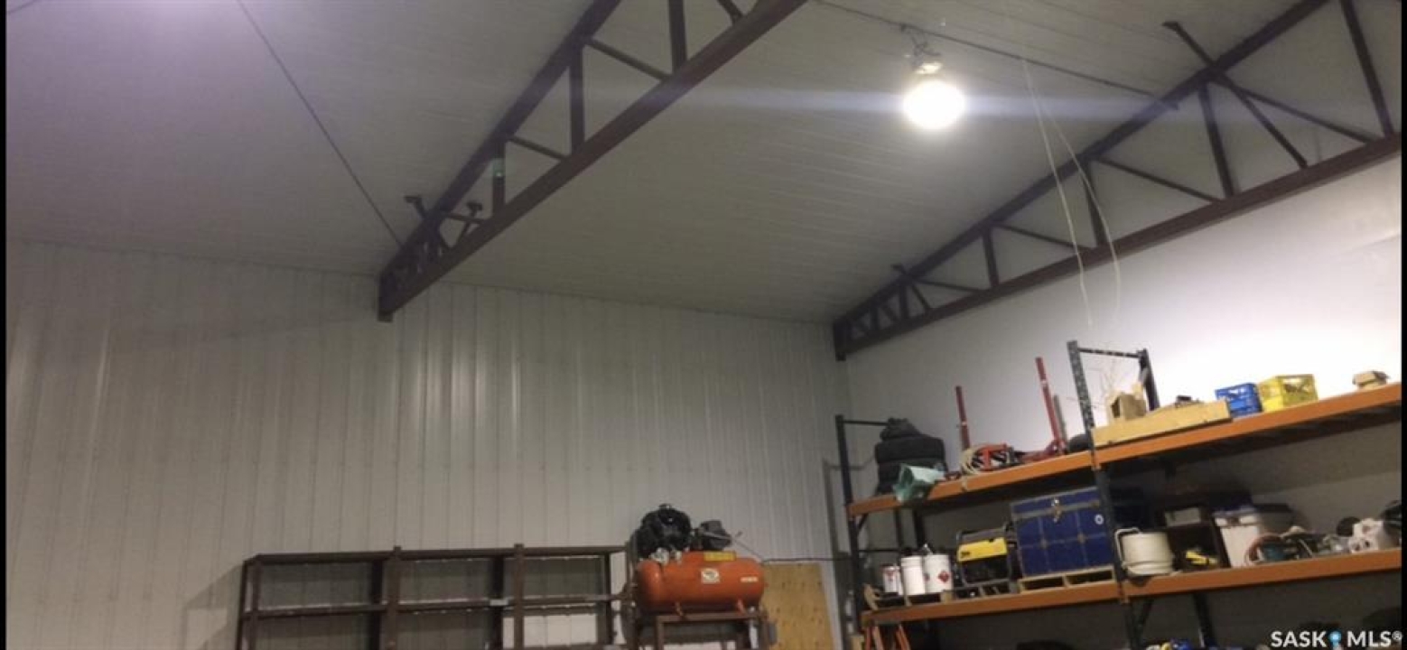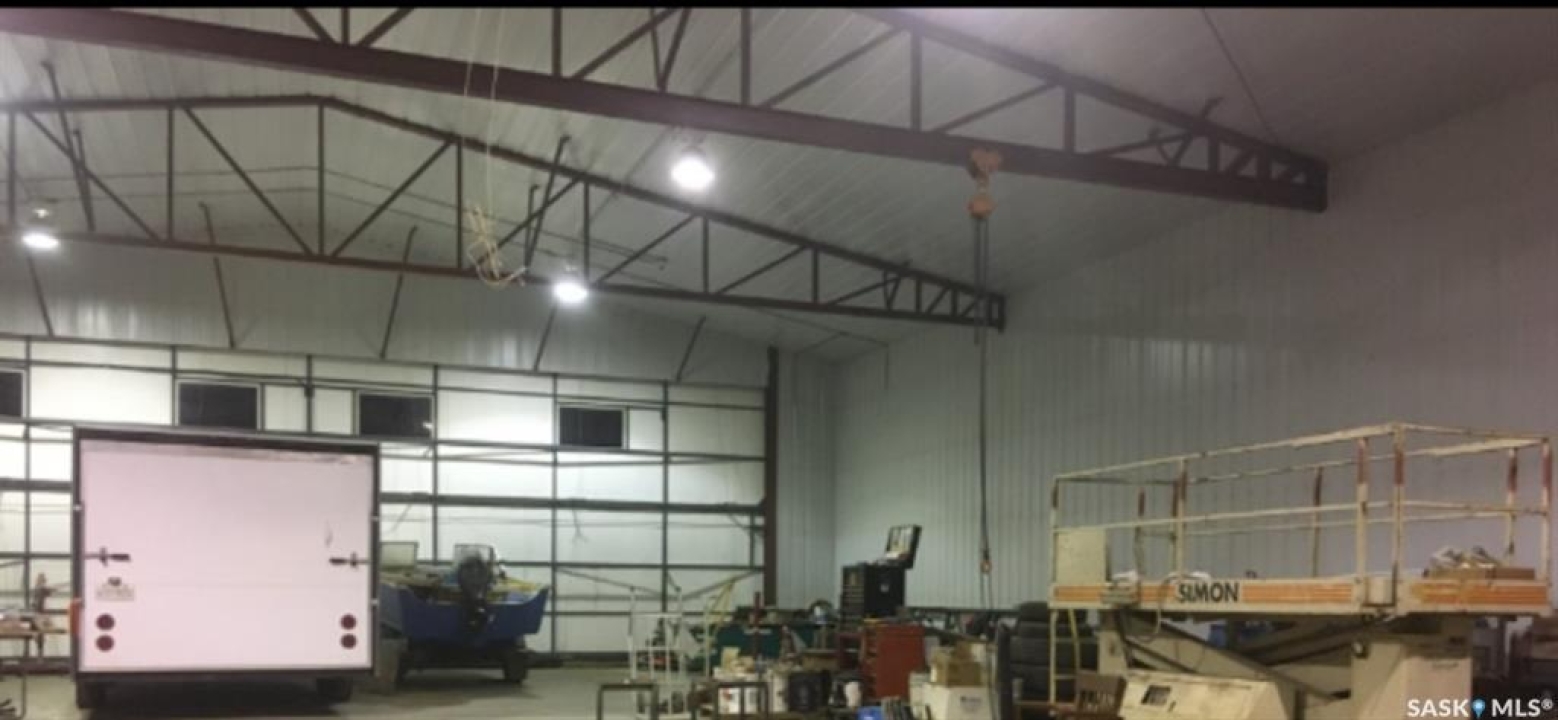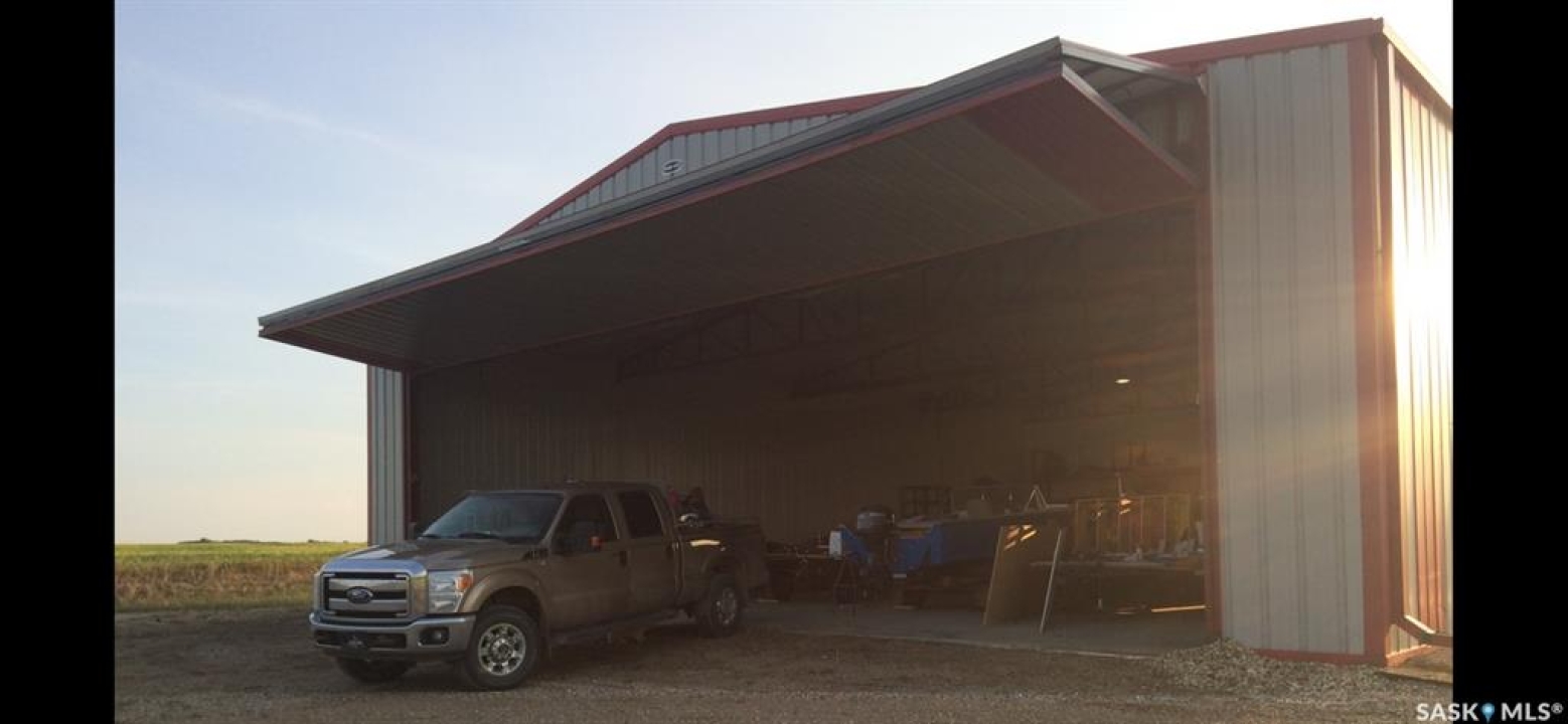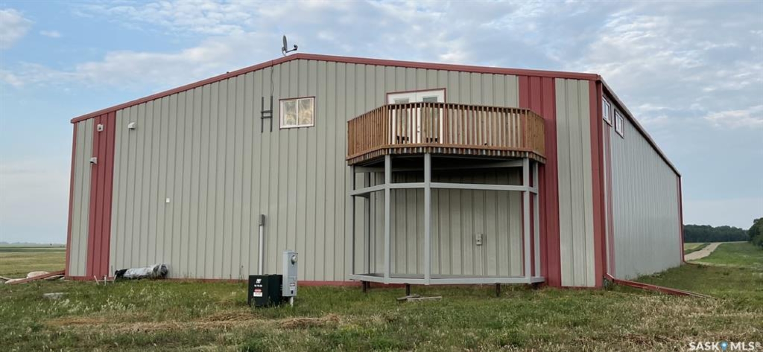 For more information, please click the "More Information" button. Discover an exceptional 80-acre parcel blending industrial capability with comfortable living, 35 mins from Circle Drive in Saskatoon. Nestled near the South Saskatchewan River, this versatile site is 10 miles north, 1 mile east and 1 mile north of Aberdeen, just 2 km from the Hague ferry crossing. — Shop highlights 6000 sqft engineered steel structure (100' X 60') with tin cladding inside and out. 4800 sqft of clear span shop area with 18' walls on 6” concrete slab (35 MPa) thickened edges over heavy screw piles. includes 60' overhead two ton crane. Geothermal heat pump in-floor heating on both levels for efficient even warmth. 14' X 16' overhead door and 50' X 17' bi-folding diamond door plus two steel man doors. — Residence Features 2300 sqft open-concept home (apx 1150 sqft on each level) is seamlessly integrated into the shop. Shop and house are divided by a 2 hr fire rated and sound proofed wall. No well to maintain, on city water Ground level has 10' walls, three mechanical rooms, 1/2 bathroom roughed for full bath, stair case with under stairs storage. Remaining 650 sqft. ground level area finished and painted, ready for possible bedrooms. Upper level has 11' pine vaulted ceiling, kitchen with island, dining and living area all open concept. Full bathroom, laundry, three bedrooms, walk in closet off primary suite. Garden doors lead off the living room onto a 12' X 16' elevated deck. — Land details Legal: S1/2 SE 1/4 31 40 2 W3 totalling 80 acres with two 40 acre titles. Topography is near level with gentle slope towards river, minimal stones. soil: Black sandy loam with 57 acres currently cultivated. Gravels found at 8' depth while digging the 11' deep trenches for Geothermal ground loops. — Year round gravel roads provide reliable access, school bus route K-12.