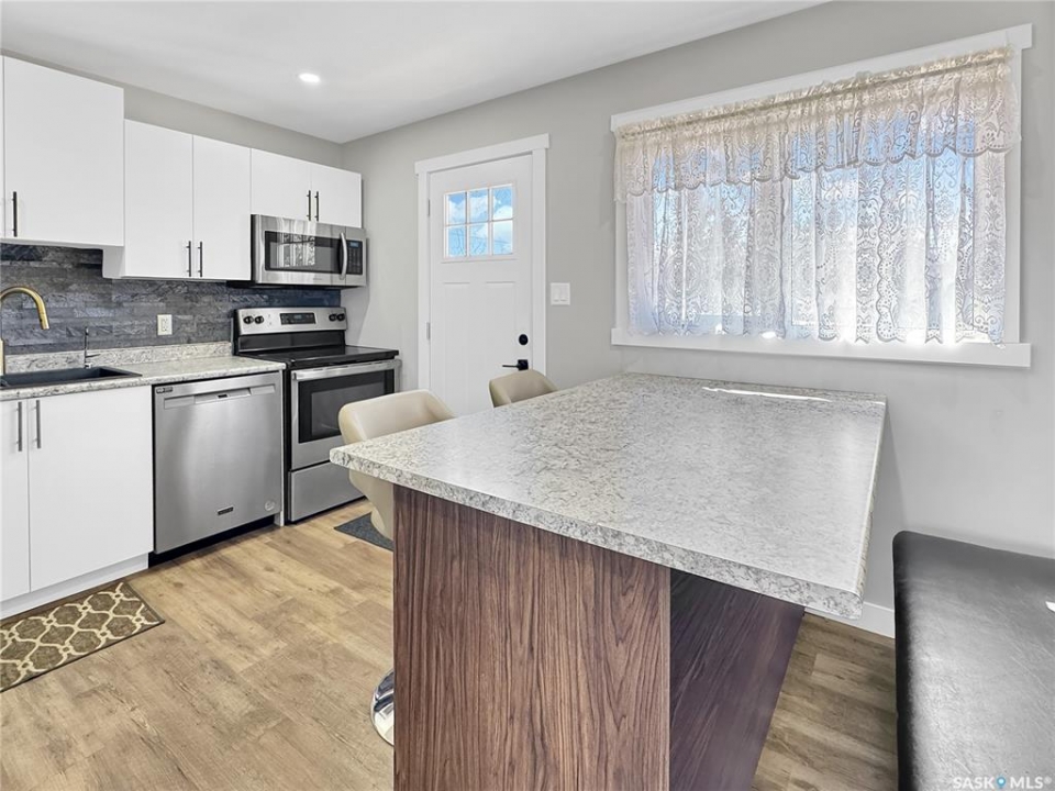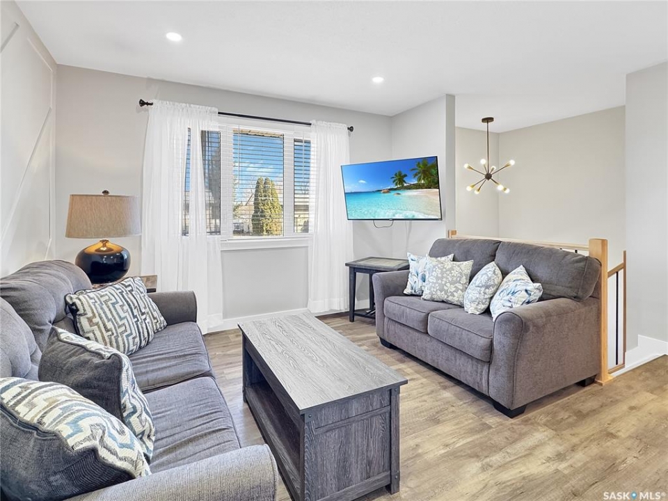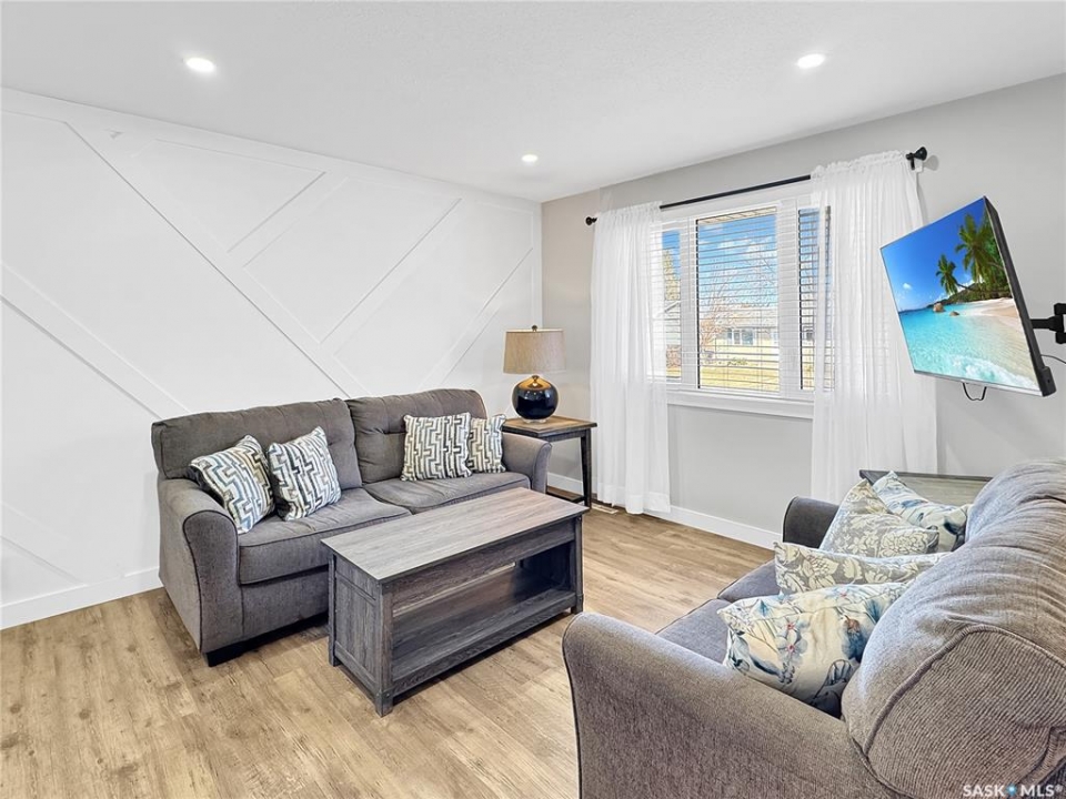 This renovated 3-bedroom, 2-bathroom bi-level home in Battleford offers a bright and welcoming layout from the moment you walk in. The main floor features a spacious living room filled with natural light, along with a well-designed kitchen and dining area complete with newer appliances and plenty of cabinet space. There are two comfortable bedrooms on the main level and a refreshed 4-piece bathroom. Step out from the kitchen onto the large back deck, ideal for relaxing or entertaining, overlooking the backyard. Downstairs, you'll find even more living space with a generous family room, a large third bedroom, and a 3-piece bathroom, perfect for guests or a growing family. Outside, the property includes a single detached garage, a partially fenced yard, and the added comfort of central air conditioning. Recent upgrades throughout the home include shingles, soffit, fascia, eaves, siding, appliances, cabinets, flooring, paint, doors, baseboards, updated windows and updated bathrooms, giving you peace of mind for years to come. This is a great opportunity to step into homeownership with a property that truly needs nothing. Call today to book your private showing!
