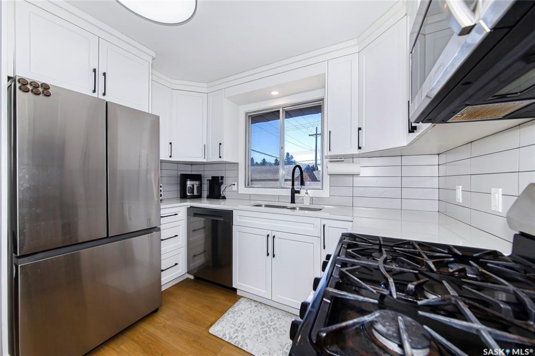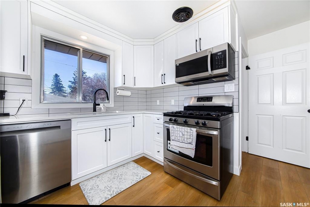 Gorgeous home with prime location in Hudson Bay Park! This Fully Renovated Bungalow features 5 bedrooms, 2 bathroom .1066 Sqft on Main Floor and over 2100 Sqft on both floors.2 bedroom un-authorize suite with separate entrance ., Fully fenced with large gate which access for both RV or Boat , high end appliances Some key features included are on demand water heater, high eff. furnace, central air conditioning, all Stainless Steel appliances, new shingles on home, nat.gas stove, jetted tub and tiled shower in main bathroom, all new lighting and plumbing, new 100amp electrical panel, fresh paint / flooring / doors / trim, new white kitchen with quartz and tiled backsplash, accented walls throughout, new white siding on house / garage / shed with cedar accents, newer garage overhead door and openers ,Maintenance free LVP throughout the main floor and basement. laundry in utility and double detached car garage. Immediate possession available. This one won't last long call your favorite Realtor to book a private viewing today! Don't miss out on the opportunity to view this exceptional home.