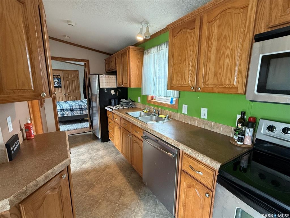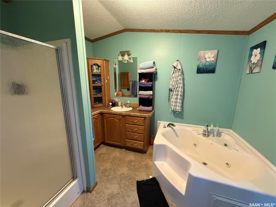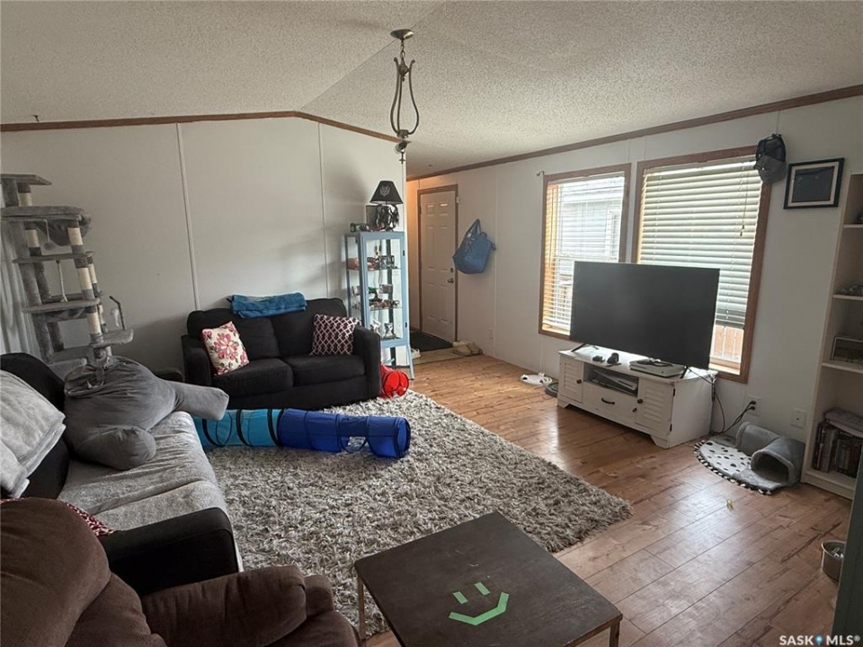 Welcome to this inviting 3-bedroom mobile home on a rented lot, offering a comfortable layout with no carpet throughout. The spacious primary bedroom is tucked at the back of the home and features a walk-in closet plus a private ensuite with a relaxing garden tub and separate shower. The open-concept living, dining, and kitchen area provides great flow, with plenty of counter space for everyday living and entertaining. Outside, enjoy the deck, fully fenced yard, and handy storage shed. A great option for affordable, low-maintenance living!