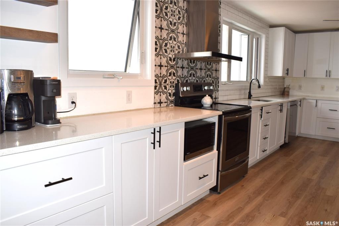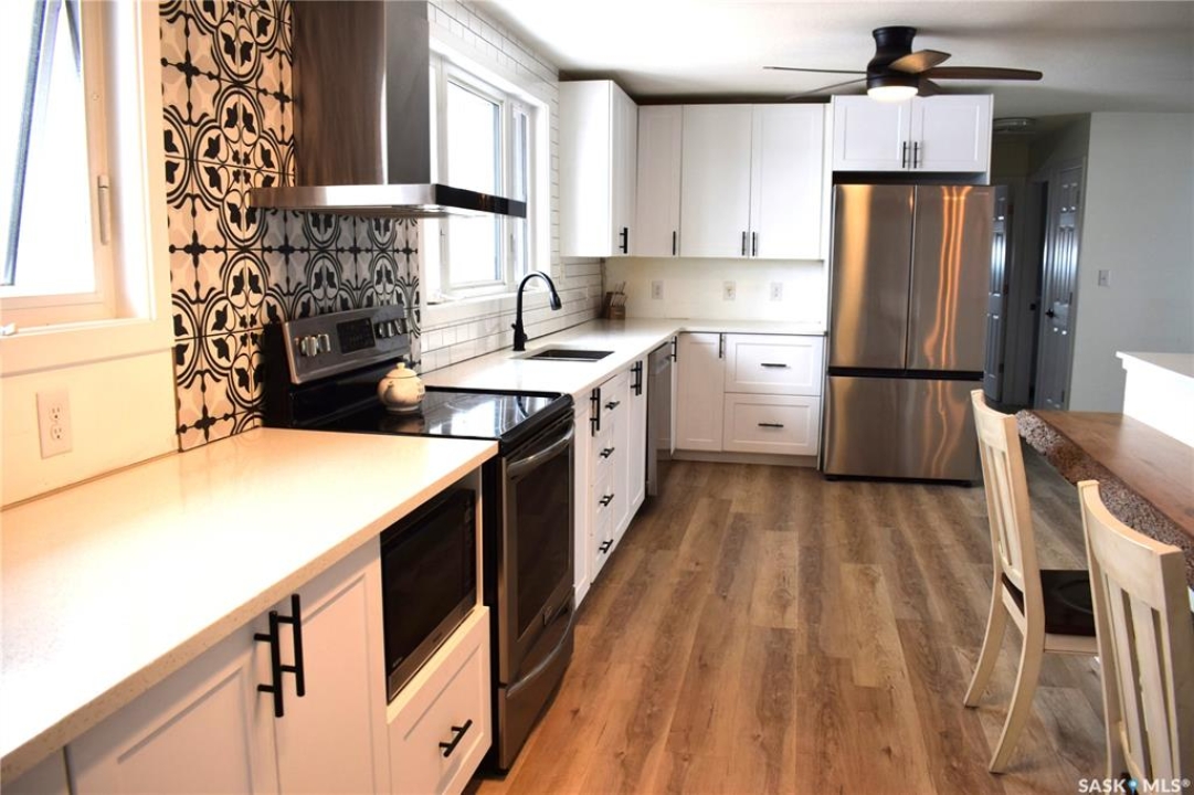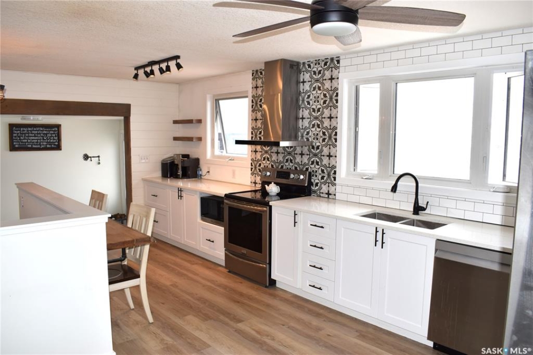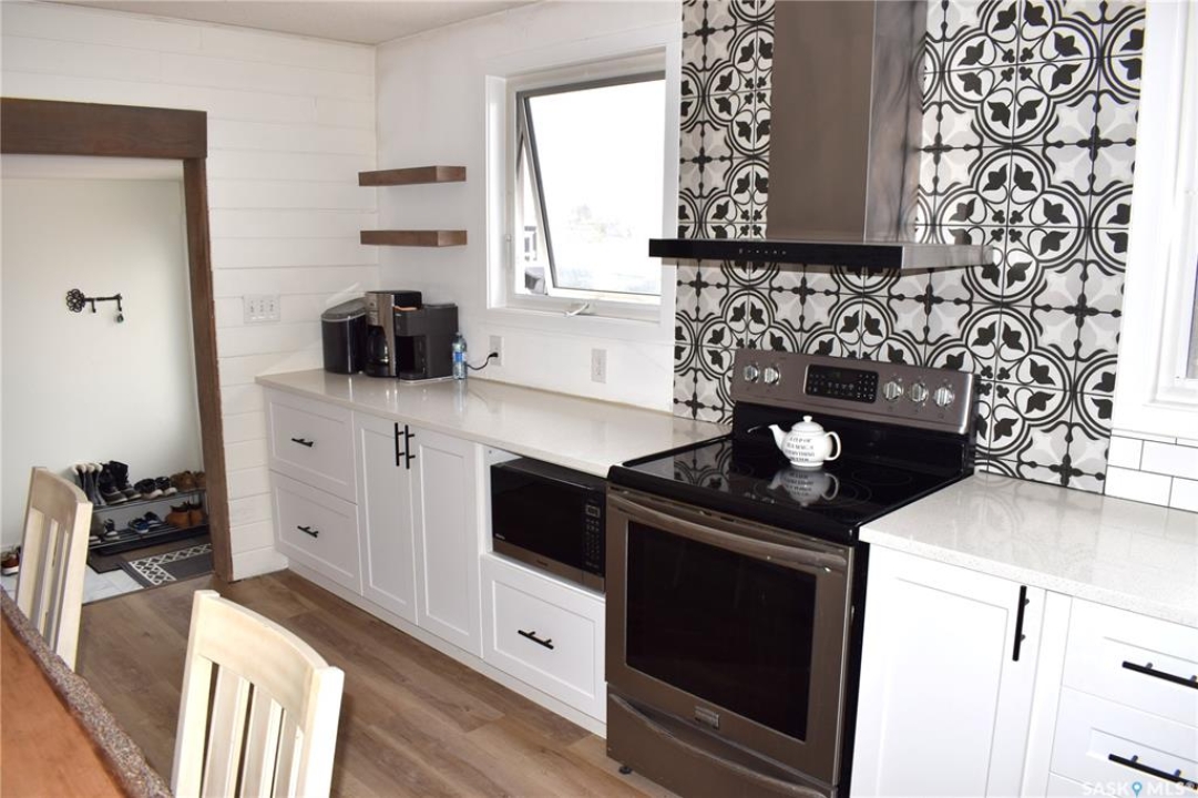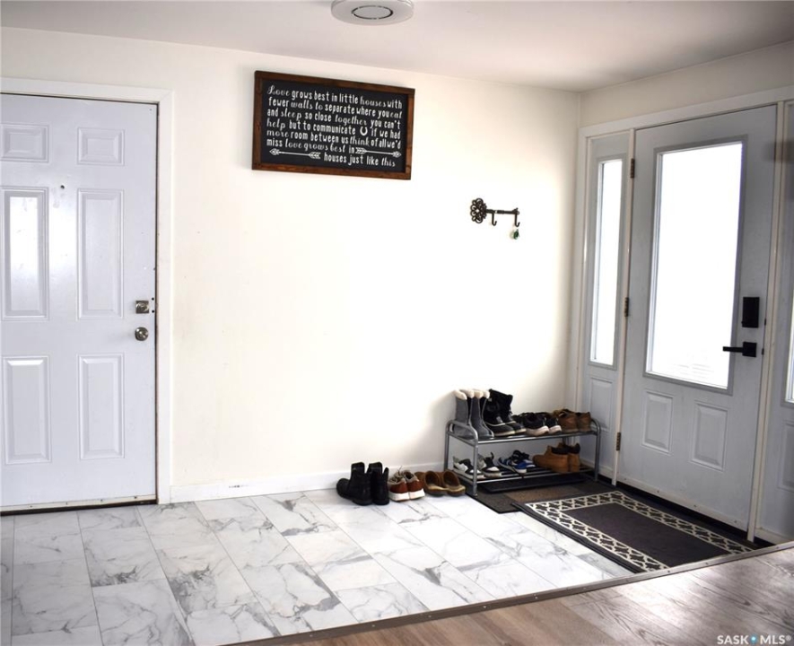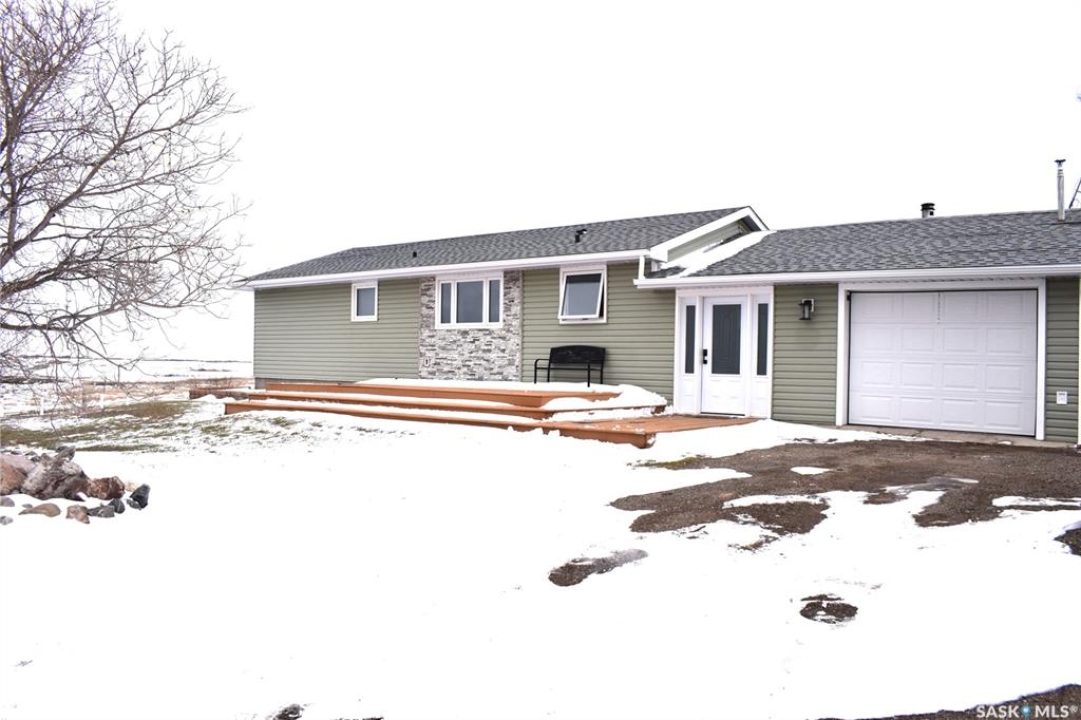 Utter privacy, endless sky—no neighbours in sight, just quiet living with school bus pickup to Bulyea. This 4-bedroom home plus den and 2 bathrooms has been quietly, thoughtfully reimagined from top to bottom. Step inside and you'll notice the details right away: all new interior doors, baseboards, and modern door hardware (2024) create a clean, cohesive feel that carries throughout the space. The main living areas flow effortlessly into a beautifully refreshed kitchen, where new cabinetry, quartz countertops, and a stylish backsplash (2024) come together with brand-new appliances to create a space that's both functional and striking. Upstairs, the bathroom has been fully upgraded with a Bathfitter tub, new vanity, and tile (2022), offering a polished, move-in-ready retreat. Downstairs continues the theme with upgraded flooring and a refreshed bathroom featuring a new tub, surround, and vanity (2022)—perfect for guests or additional living space. Beyond aesthetics, the home has seen substantial mechanical and structural improvements. Triple-pane windows (2024), upgraded vinyl siding with added insulation, new soffit, fascia, and eaves (2024), plus baseboard heaters (2022) all contribute to comfort and efficiency year-round. The exterior tells its own story. A front deck (2022) welcomes you in, while the reclaimed driveway and established shelter belt (2022) add both practicality and privacy. The attached garage adds everyday convenience and stands out with a wood stove and chimney (2021), making it a versatile space no matter the season. Equally impressive are the essentials: a 26' shallow well with 36” cribbing that has never run dry feeds a 1200-gallon cistern, alongside a 650-gallon septic system—providing reliable, efficient rural living with an equalized power cost of under $400/month, no gas bill, and no water bill. Every upgrade here has already been done—thoughtfully, recently, and with purpose—so you can simply move in and enjoy.