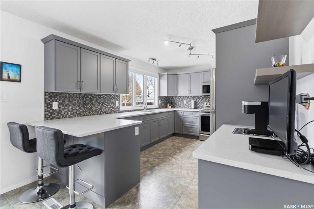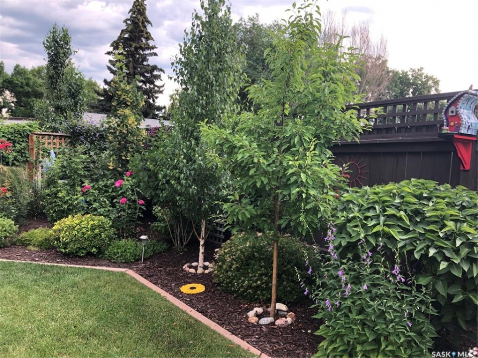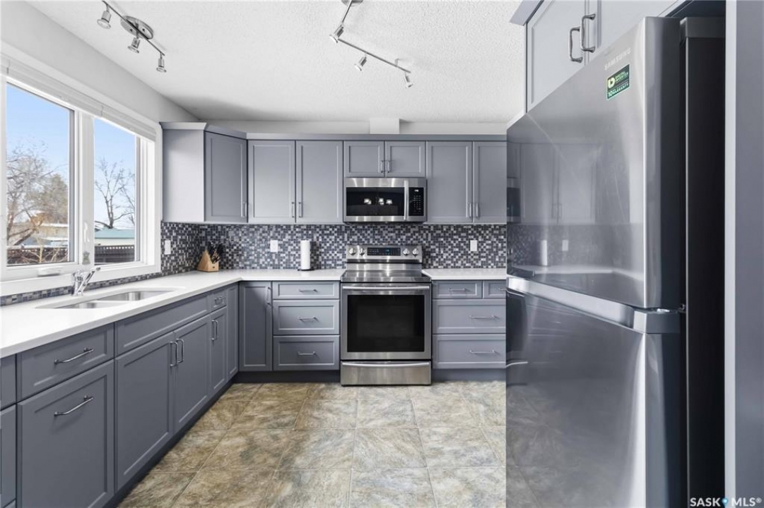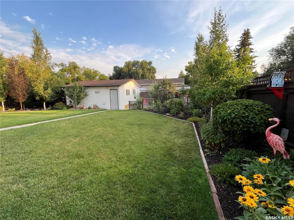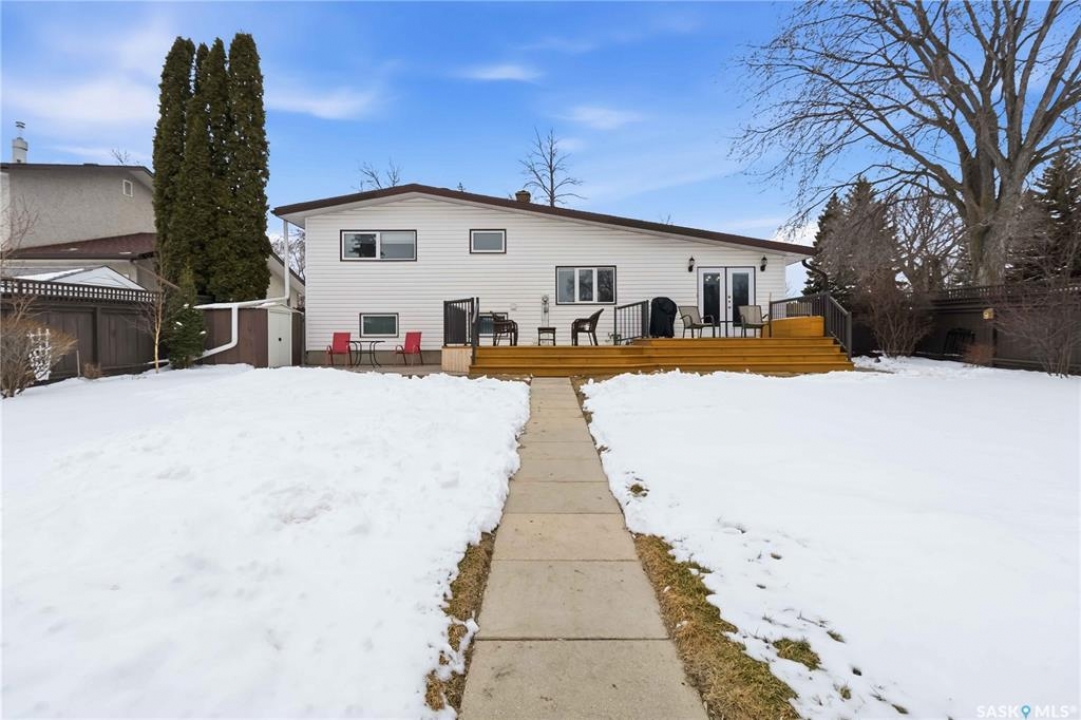 Situated on a prime corner lot in the established Eastview neighborhood, this 1,204 sq/ft 4-level split features extensive updates throughout. Upon arrival, the care for detail will be obvious with the amazing curb appeal this home has. As you enter, the main floor features a spacious living room centered by large, south-facing windows that flood the space with natural light. The kitchen was completely renovated in 2020, featuring new cabinets and backsplash, and including matching 2020 appliances (fridge, stove, dishwasher) plus a new 2026 microwave range hood. The adjacent dining area has patio doors opening onto a large tiered deck. Moving to the upper level, you will find three bedrooms with newer carpets (2018) and closet organizers, along with updated bathrooms featuring new vanities and toilets. The lower level (3rd) offers a large, bright family room with new flooring installed in 2024. The massive lowest level (4th) provides ample space for laundry, utilities, and extra storage. Mechanical features include central air conditioning, central vacuum, and a new 50-gallon hot water tank (2023). The backyard is a private oasis, beautifully landscaped with perennials and including a patio (2025), a full sprinkler system, and a cute shed that could be a playhouse, complete with updated siding, windows, and electrical (lights/plugs). The 20x22 detached double garage is fully finished with a newer floor, insulation, paint, shingles, and door opener. This is complete with a concrete driveway (2020) and a walkway from the back deck. The home is located just around the corner from James Anderson Park and is close to John Dolan and Pope John Paul II schools. This home is move-in ready and shows a 10/10. Ask your agent for the complete list of improvements. Call your agent today to book your showing.