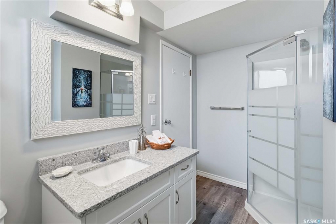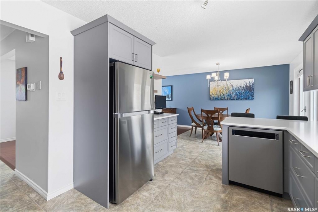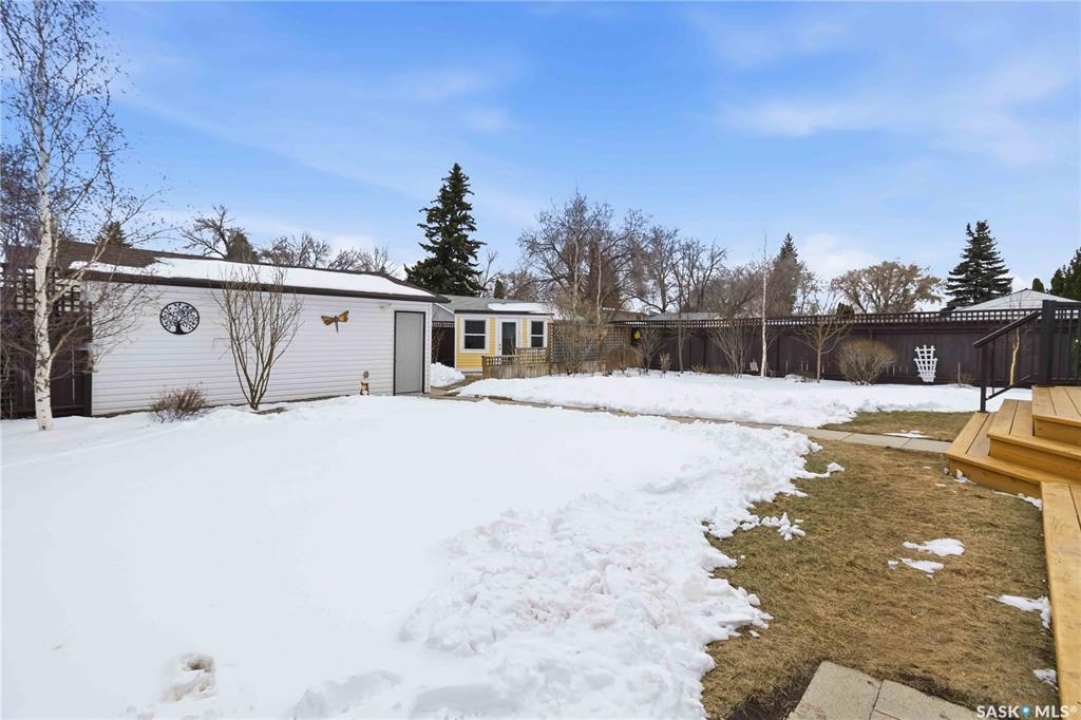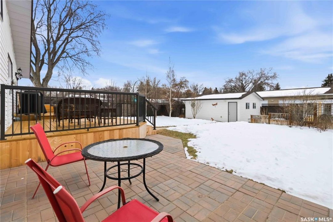 Situated on a prime corner lot in the established Eastview neighborhood, this 1,204 sq/ft 4-level split features extensive updates throughout. Upon arrival, the care for detail will be obvious with the amazing curb appeal this home has. As you enter, the main floor features a spacious living room centered by large, south-facing windows that flood the space with natural light. The kitchen was completely renovated in 2020, featuring new cabinets and backsplash, and including matching 2020 appliances (fridge, stove, dishwasher) plus a new 2026 microwave range hood. The adjacent dining area has patio doors opening onto a large tiered deck. Moving to the upper level, you will find three bedrooms with newer carpets (2018) and closet organizers, along with updated bathrooms featuring new vanities and toilets. The lower level (3rd) offers a large, bright family room with new flooring installed in 2024. The massive lowest level (4th) provides ample space for laundry, utilities, and extra storage. Mechanical features include central air conditioning, central vacuum, and a new 50-gallon hot water tank (2023). The backyard is a private oasis, beautifully landscaped with perennials and including a patio (2025), a full sprinkler system, and a cute shed that could be a playhouse, complete with updated siding, windows, and electrical (lights/plugs). The 20x22 detached double garage is fully finished with a newer floor, insulation, paint, shingles, and door opener. This is complete with a concrete driveway (2020) and a walkway from the back deck. The home is located just around the corner from James Anderson Park and is close to John Dolan and Pope John Paul II schools. This home is move-in ready and shows a 10/10. Ask your agent for the complete list of improvements. Call your agent today to book your showing.